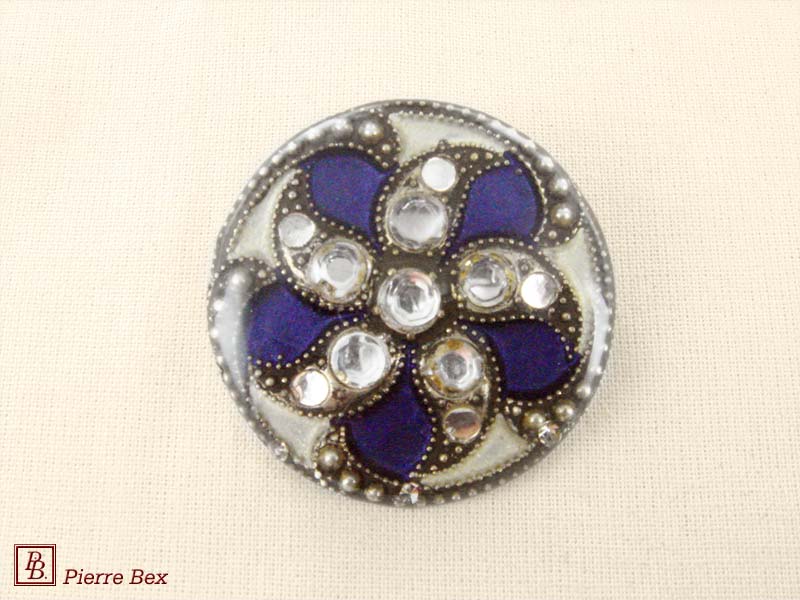 Made by Pierre-Bex from silverplated copper, rhinestones and enamel,