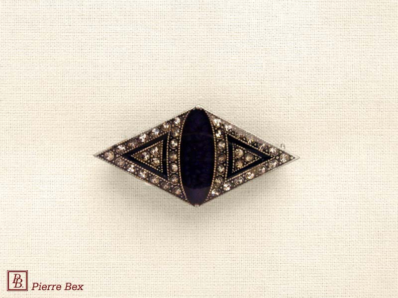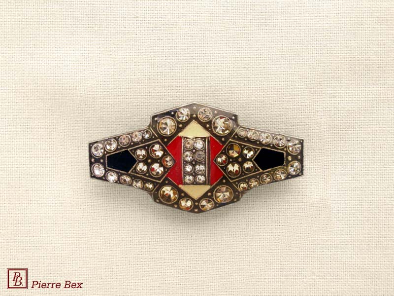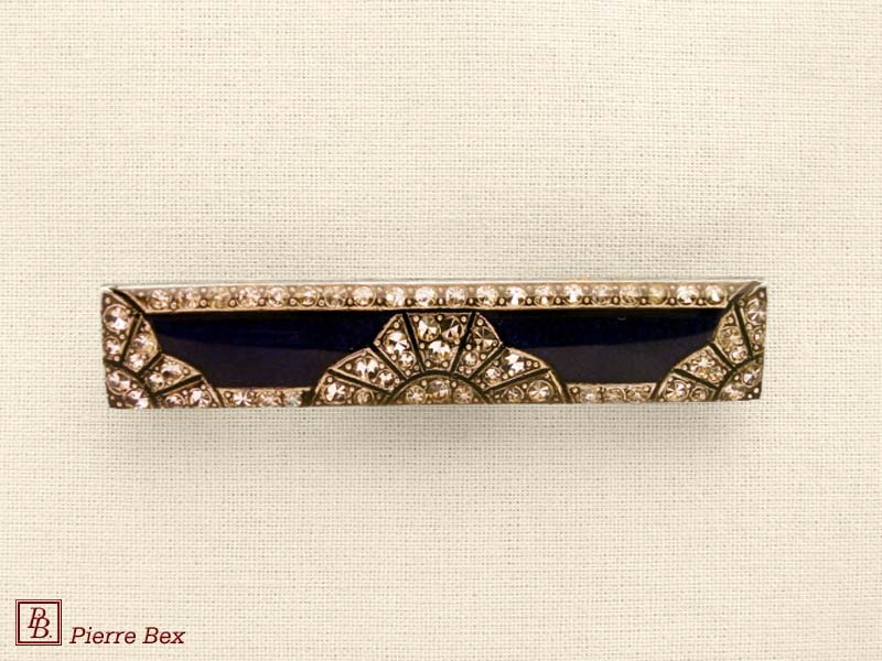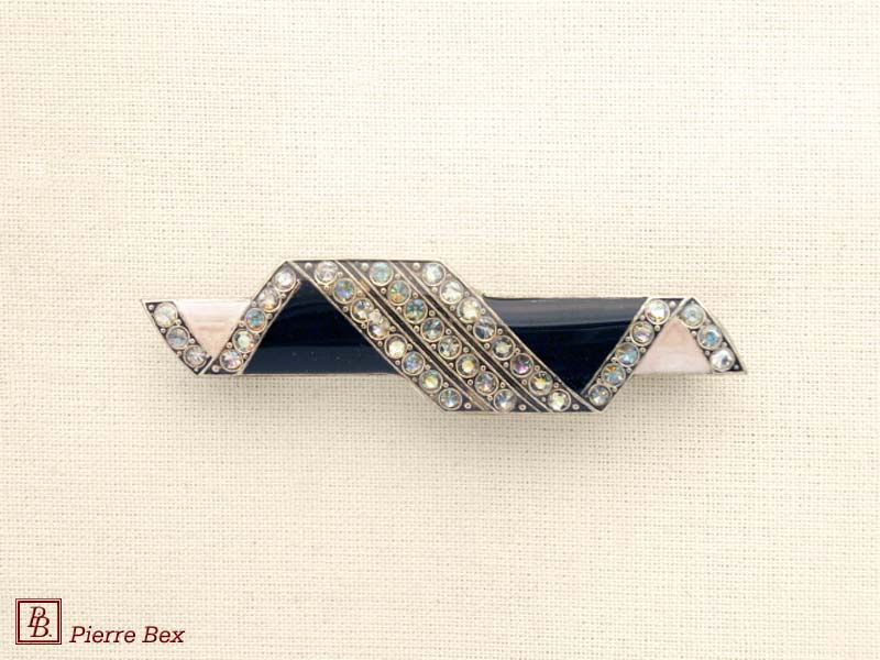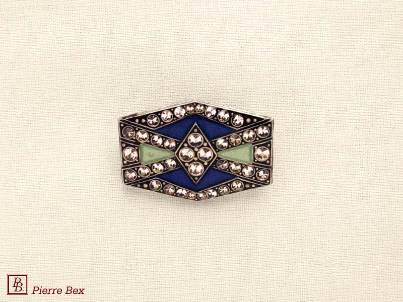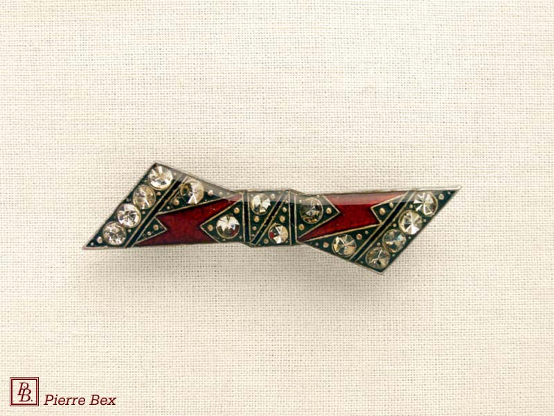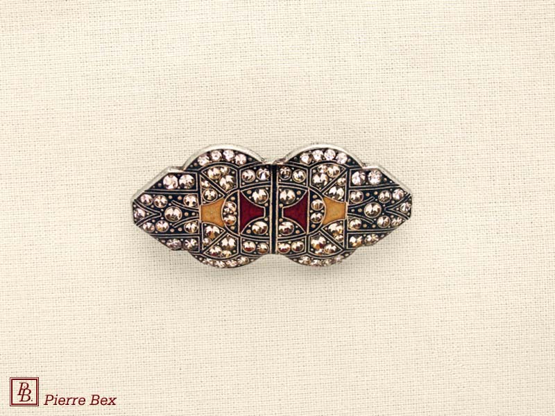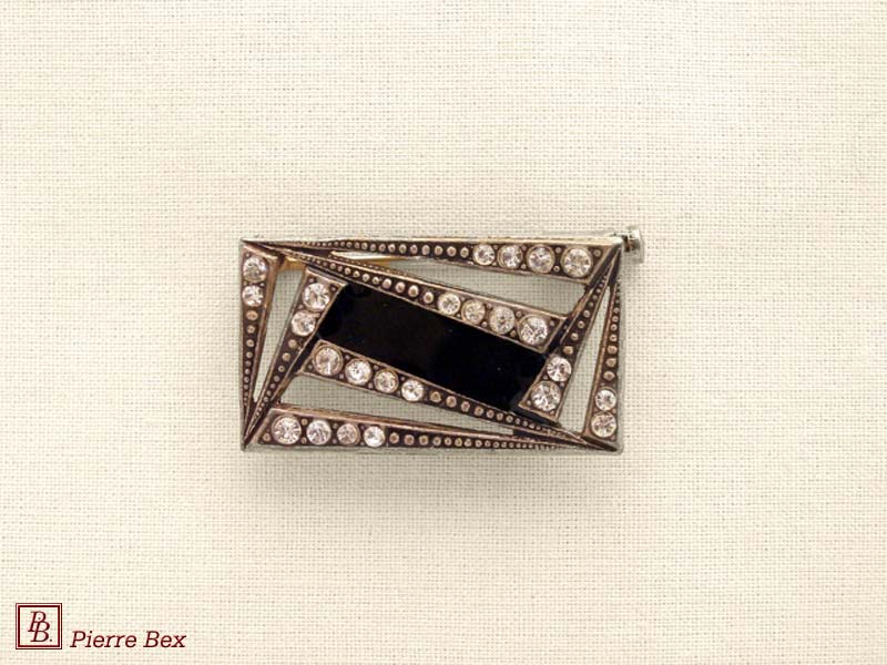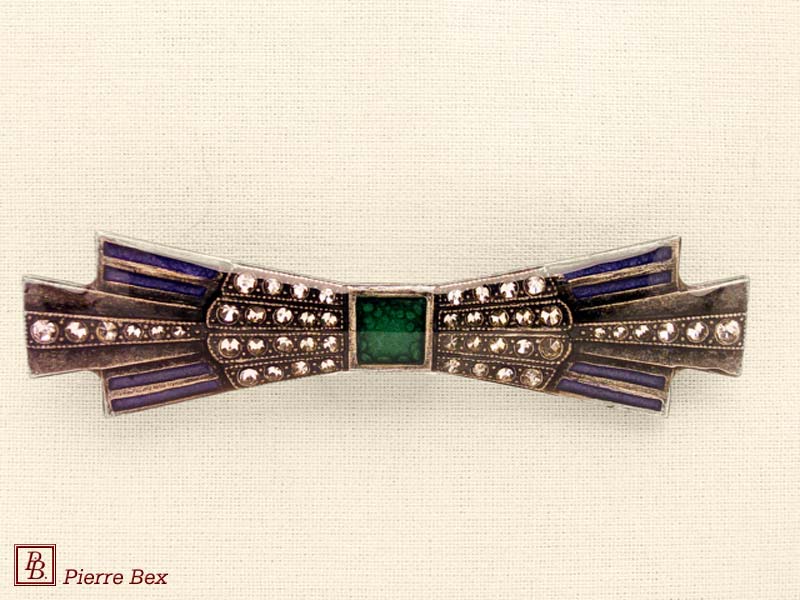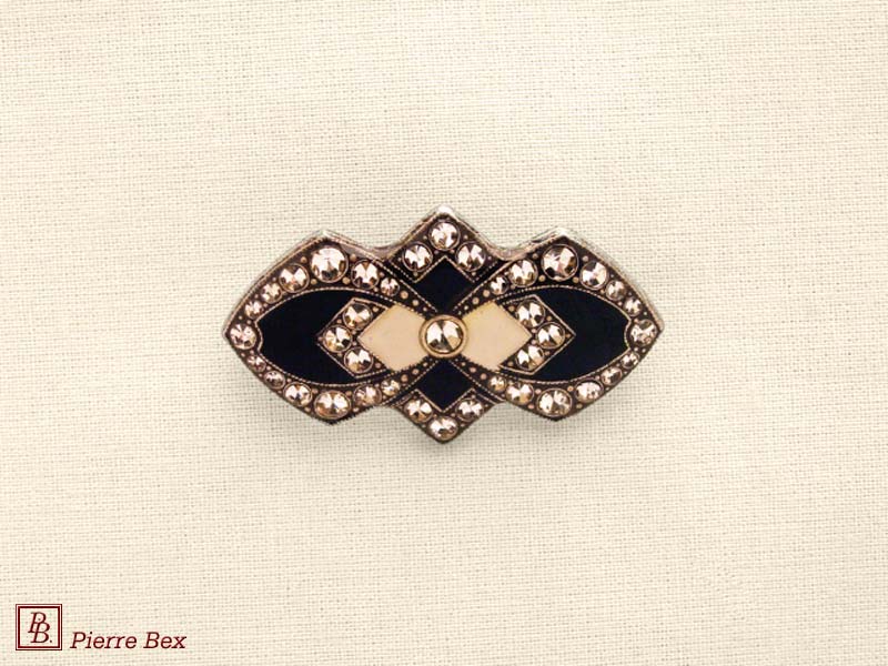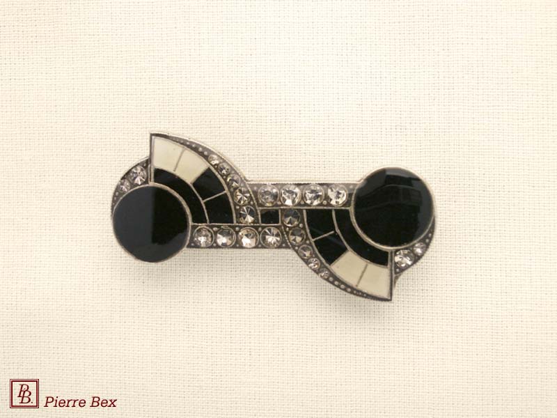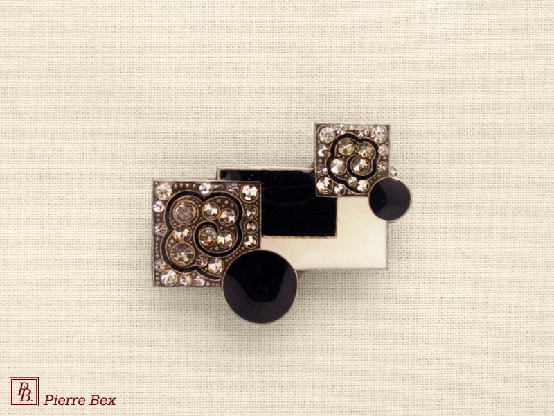 ![]() Art-Deco brooch 49506-03Sold OutMade by Pierre-Bex from silverplated copper, rhinestones and enamel, this brooch is 4 cm ( 1-½ inch ) width. Sold Out |