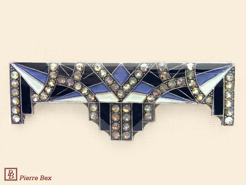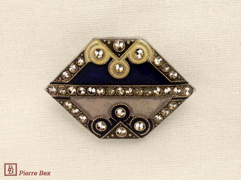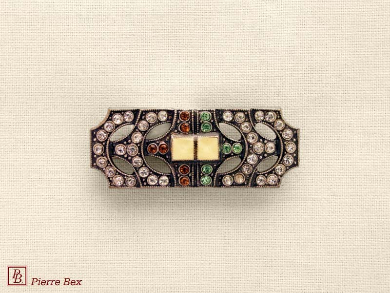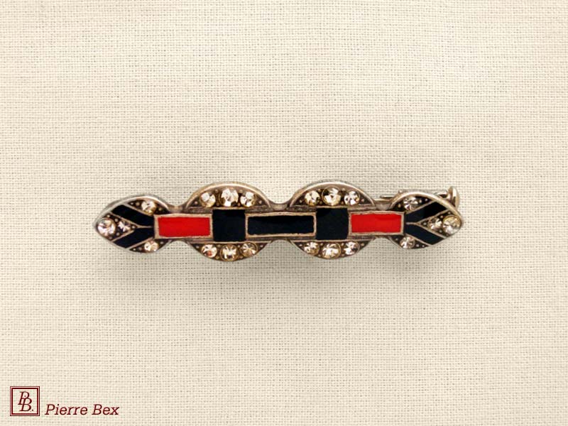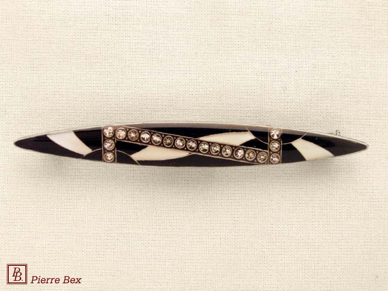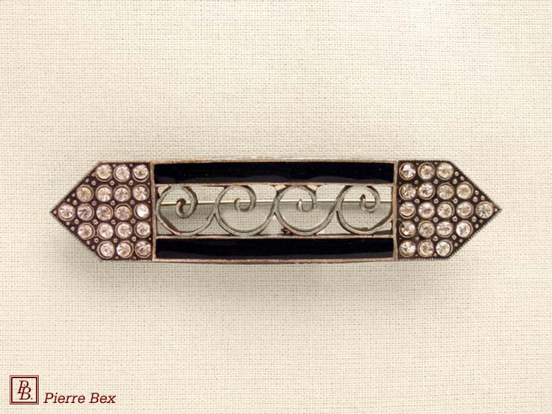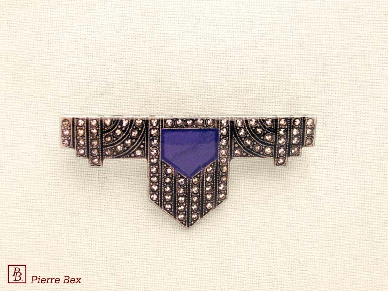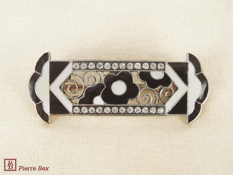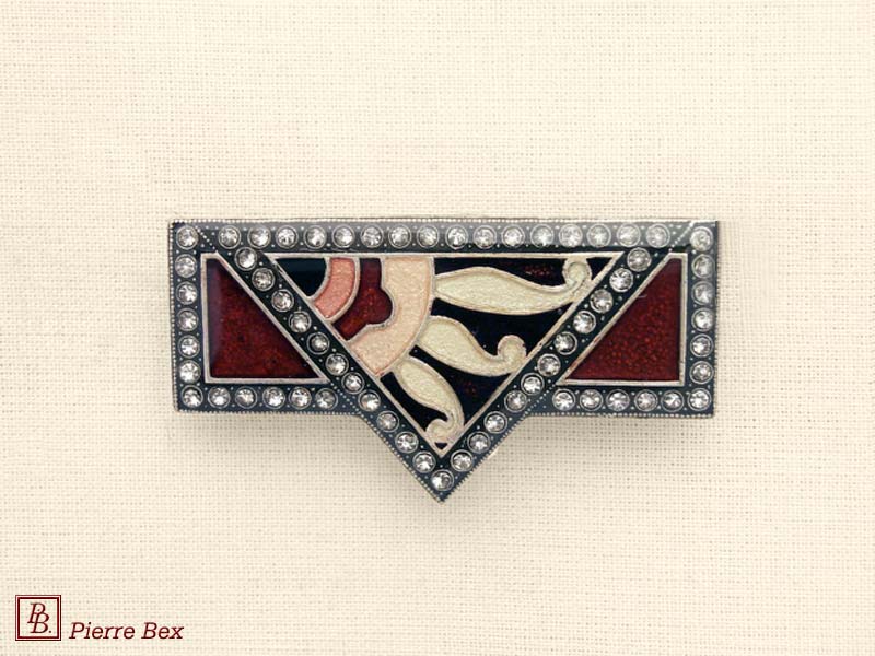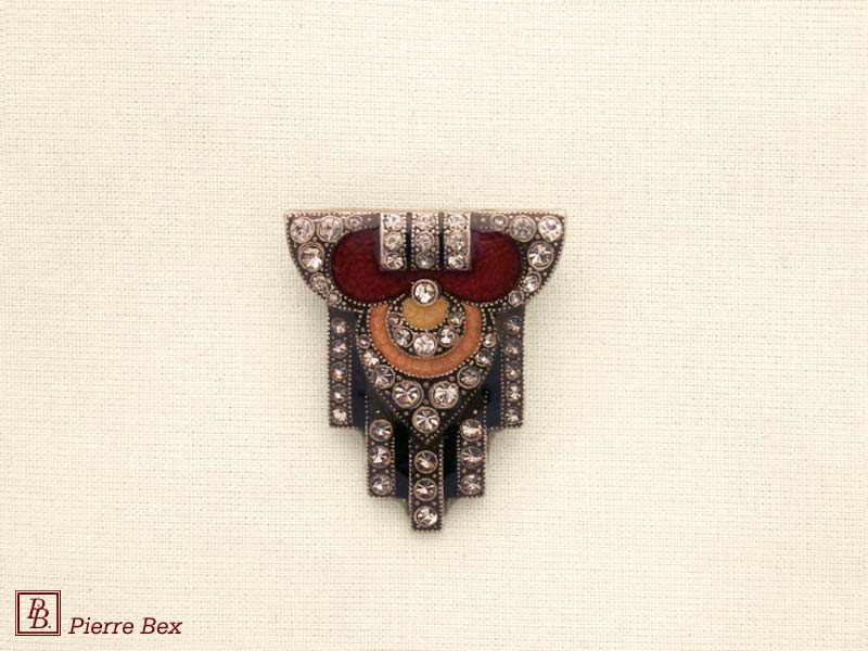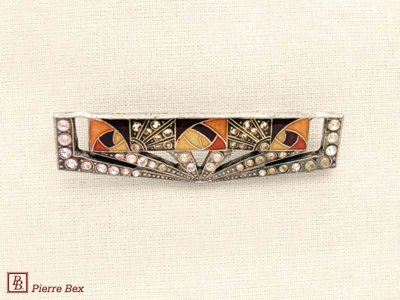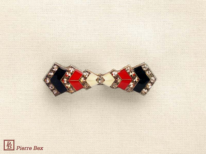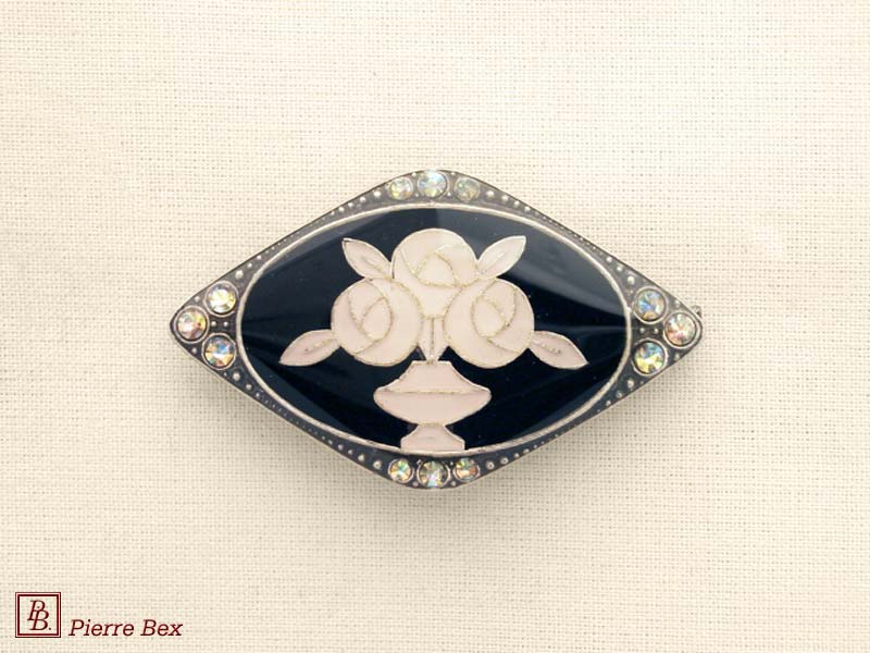 ![]() Art-Deco brooch 49506-03Sold OutMade by Pierre-Bex from silverplated copper, rhinestones and enamel, this brooch is 4 cm ( 1-½ inch ) width. Sold Out |
