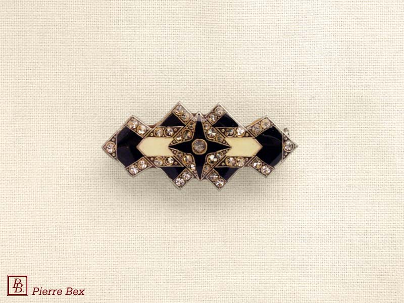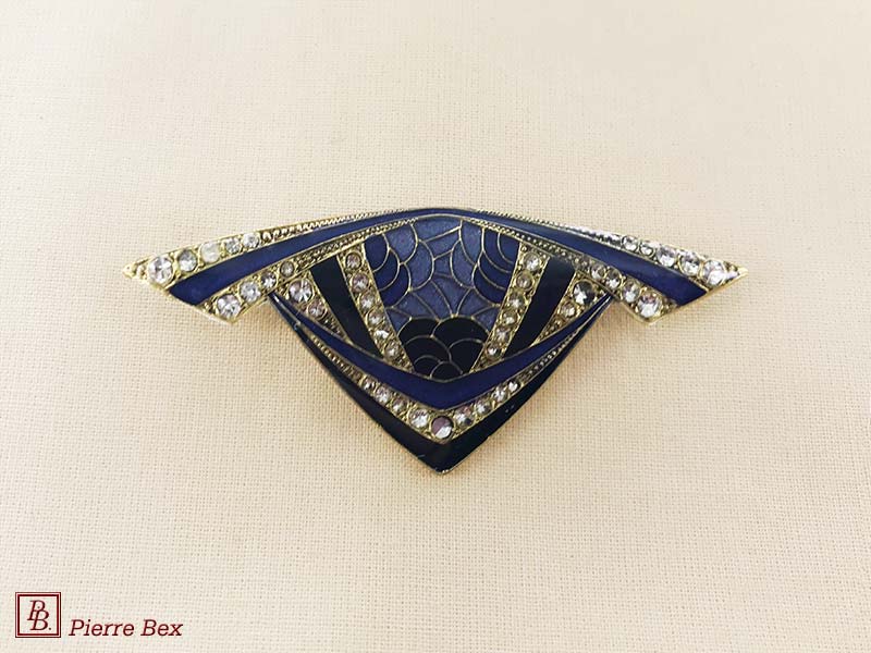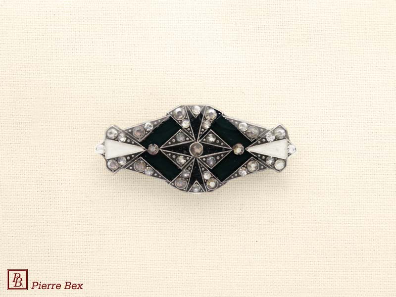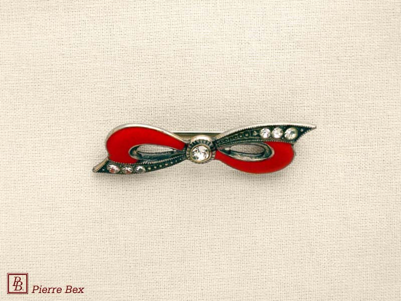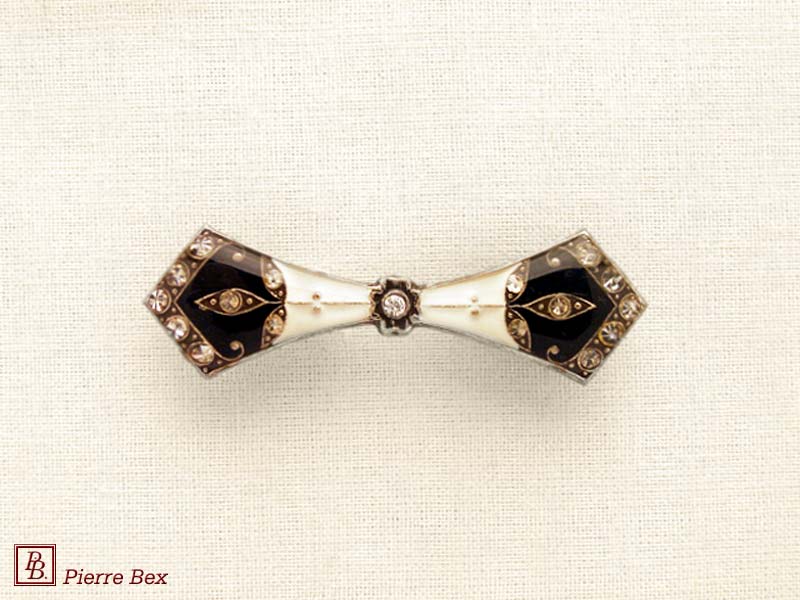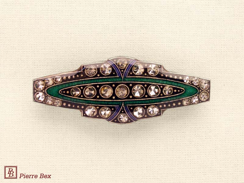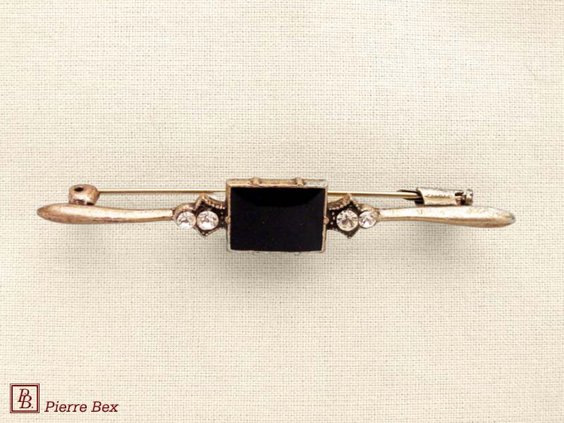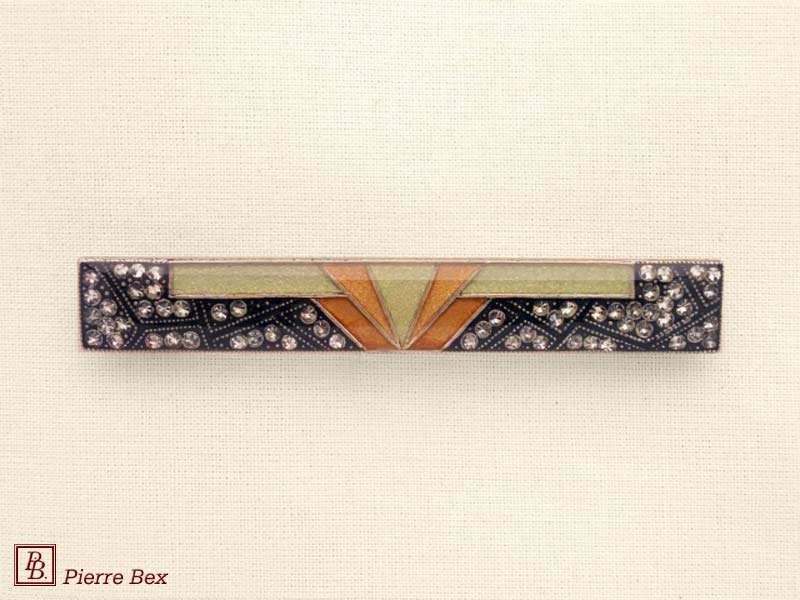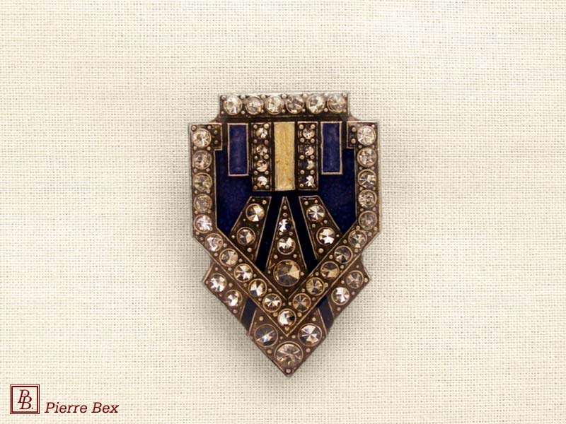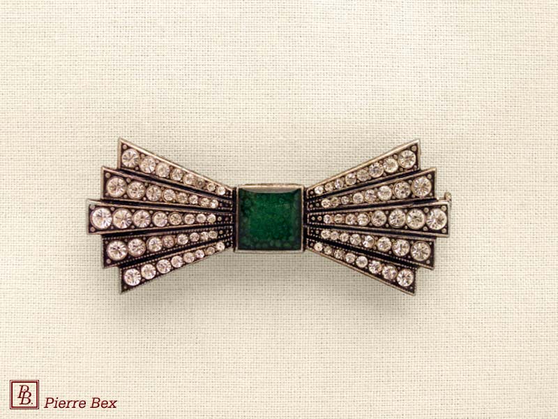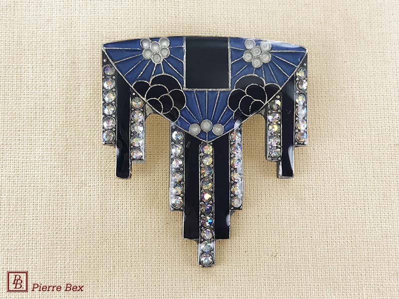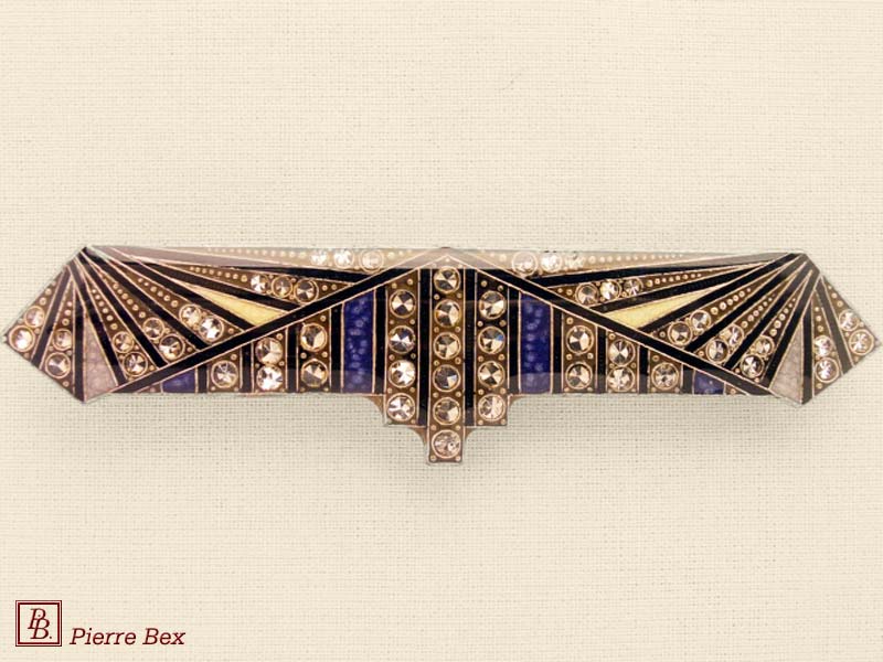 ![]() Art-Deco brooch 49506-03Sold OutMade by Pierre-Bex from silverplated copper, rhinestones and enamel, this brooch is 4 cm ( 1-½ inch ) width. Sold Out |