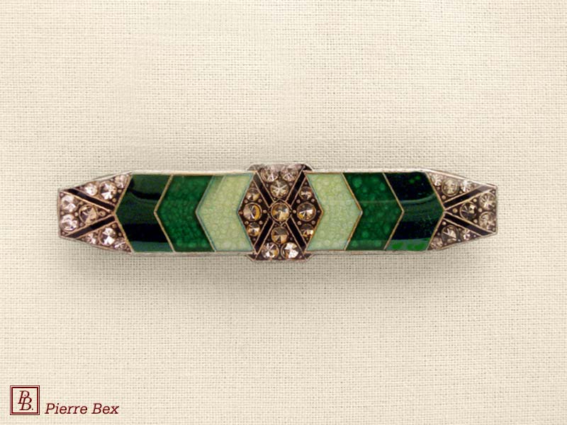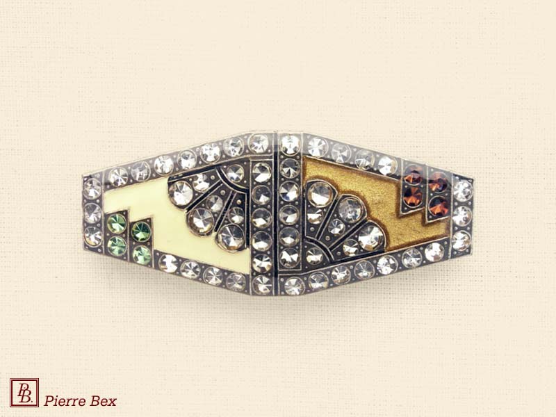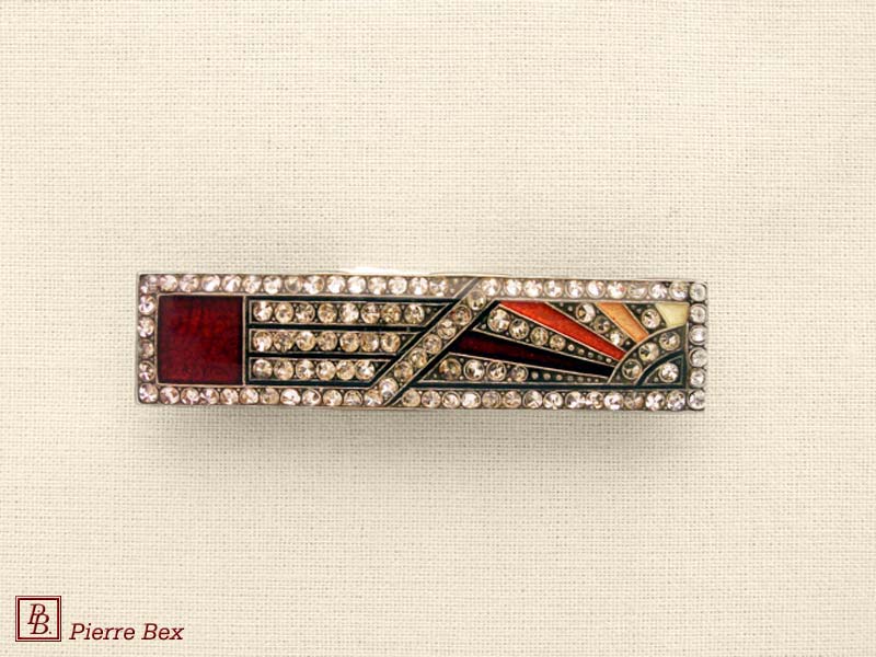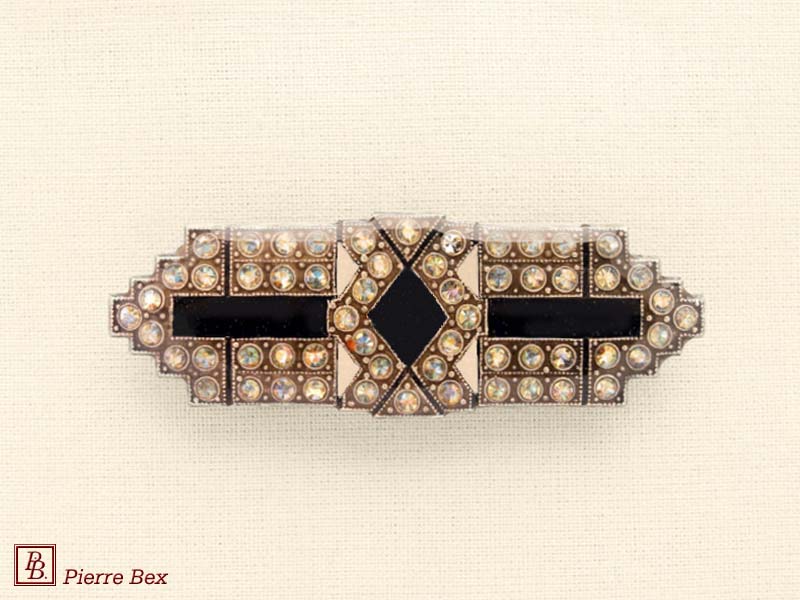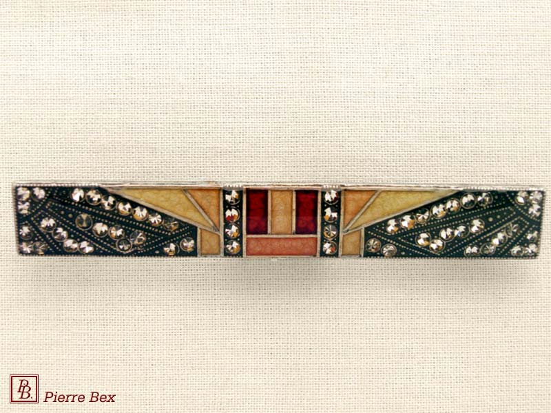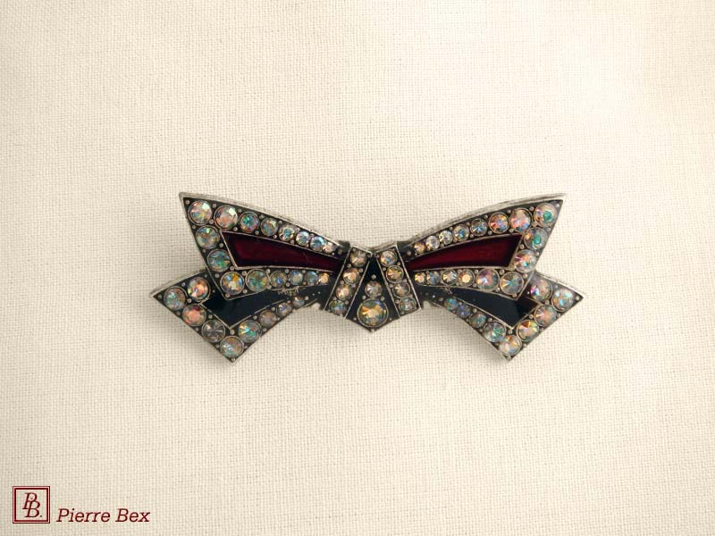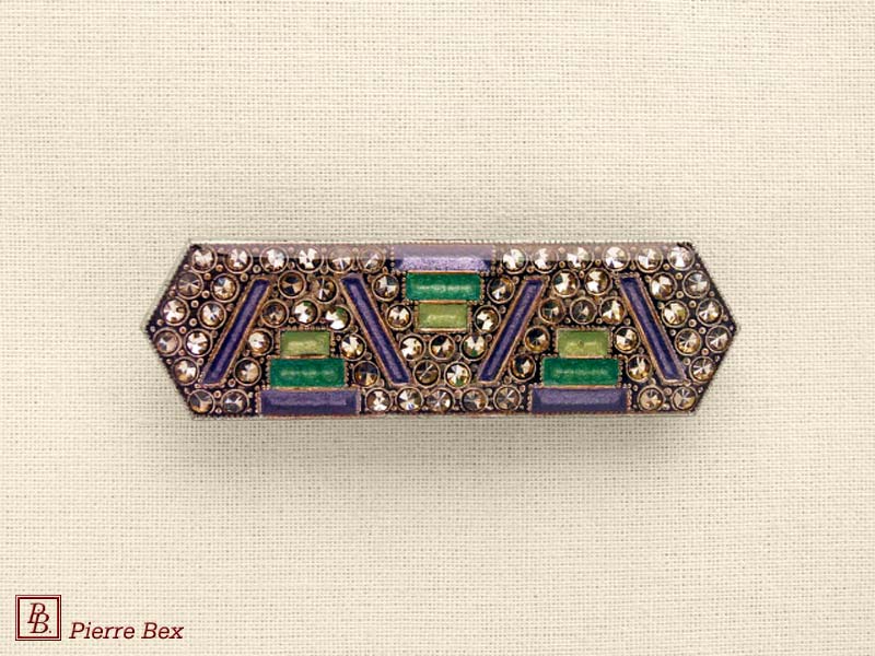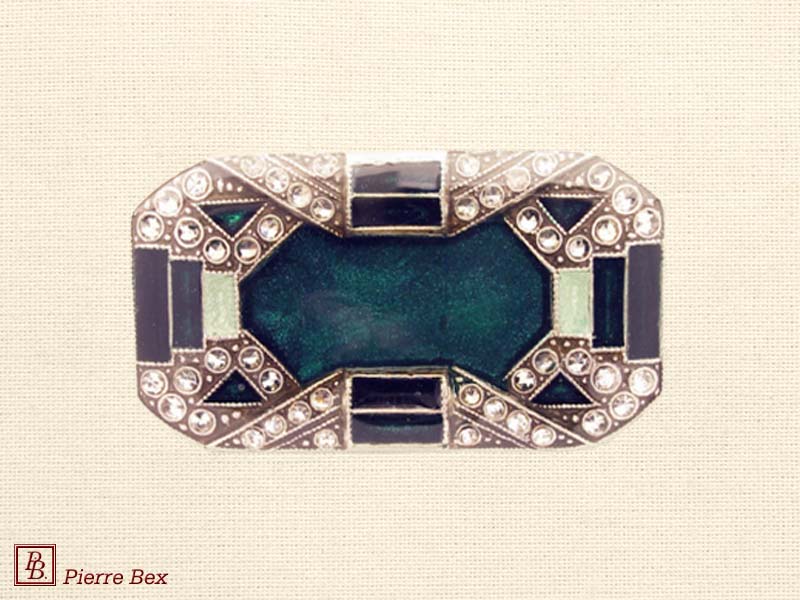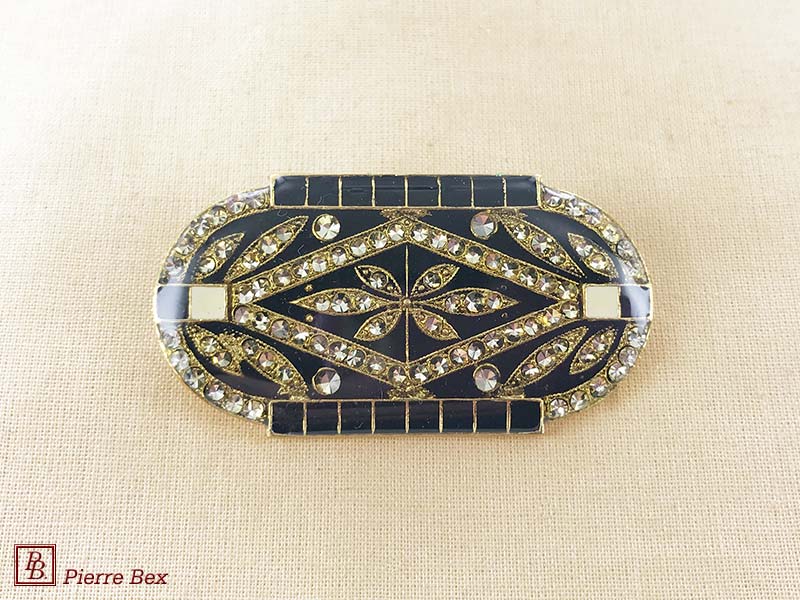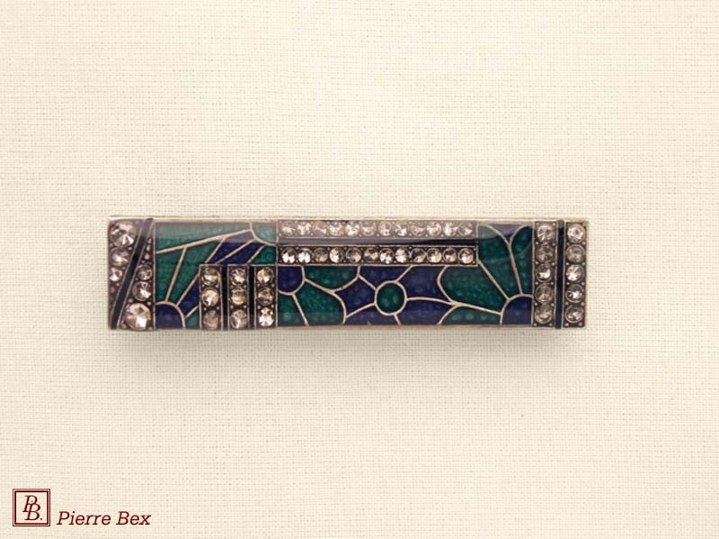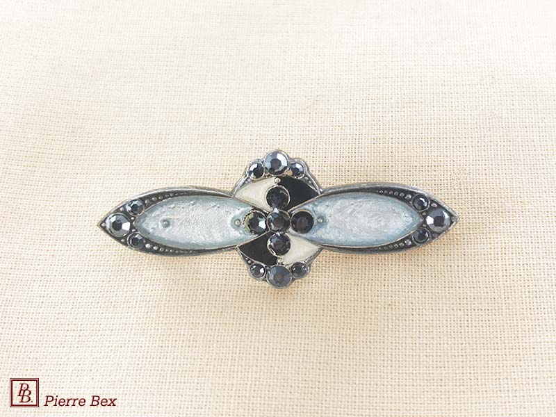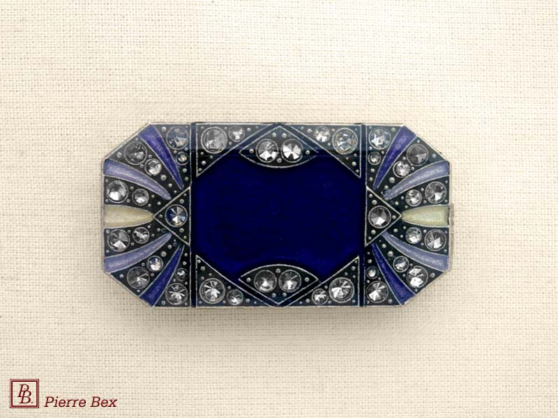 ![]() Art-Deco brooch 49506-03Sold OutMade by Pierre-Bex from silverplated copper, rhinestones and enamel, this brooch is 4 cm ( 1-½ inch ) width. Sold Out |