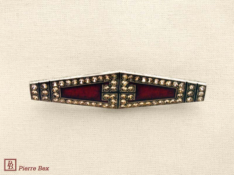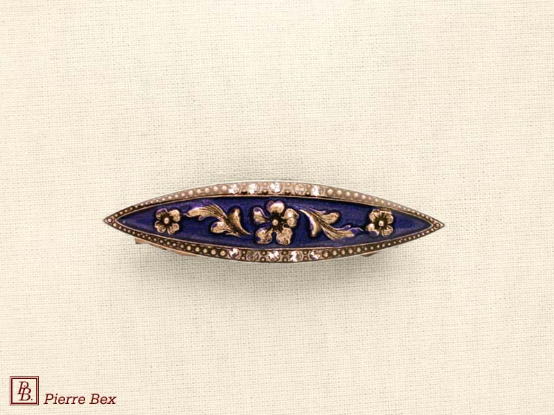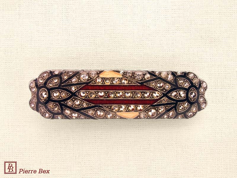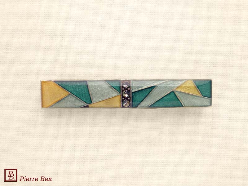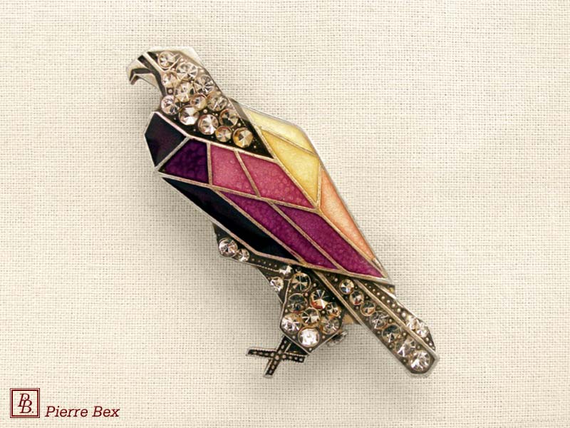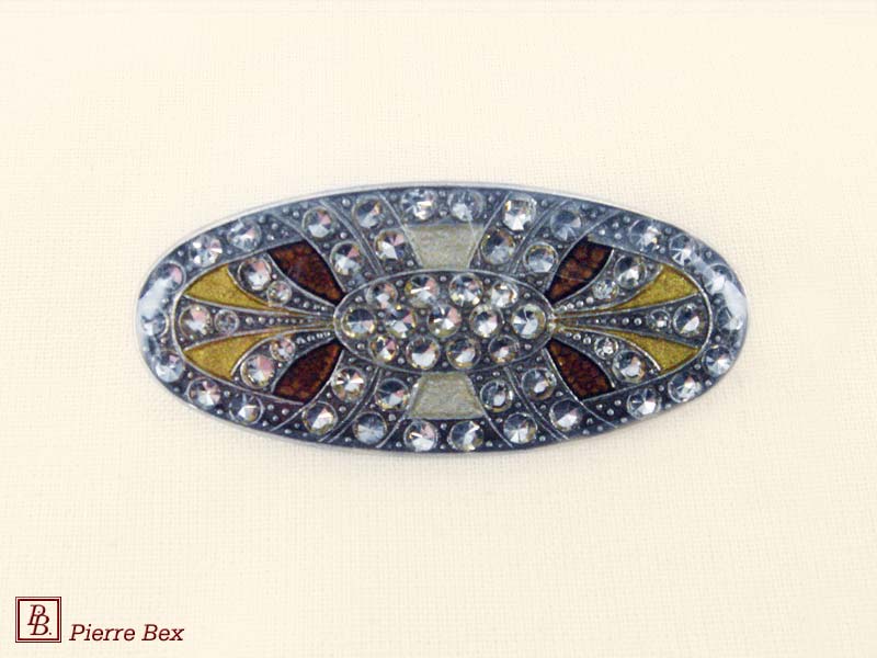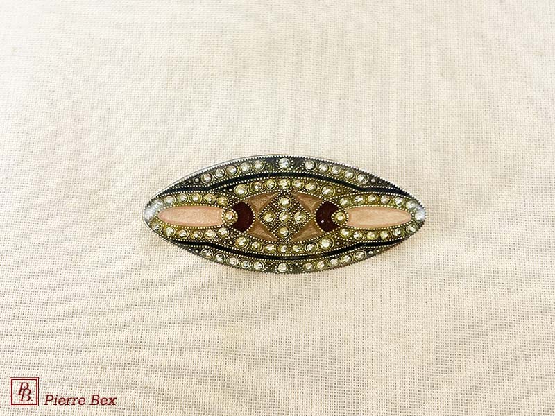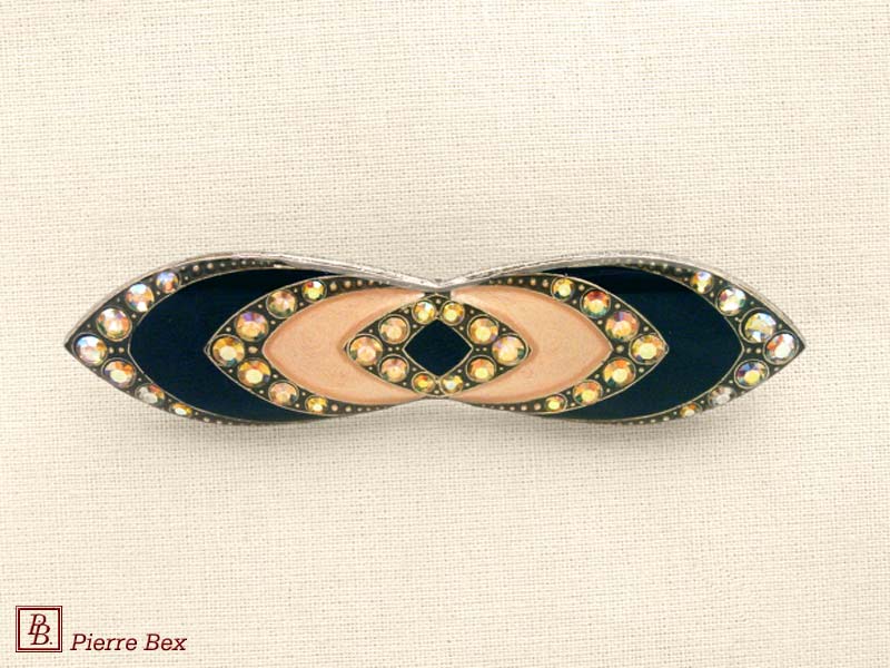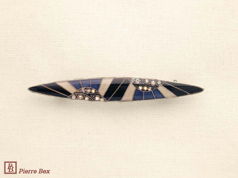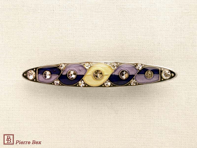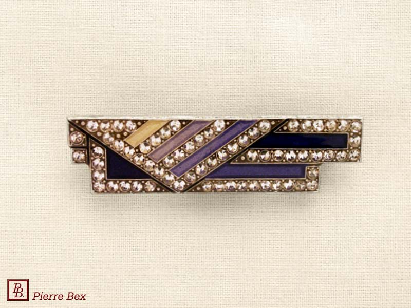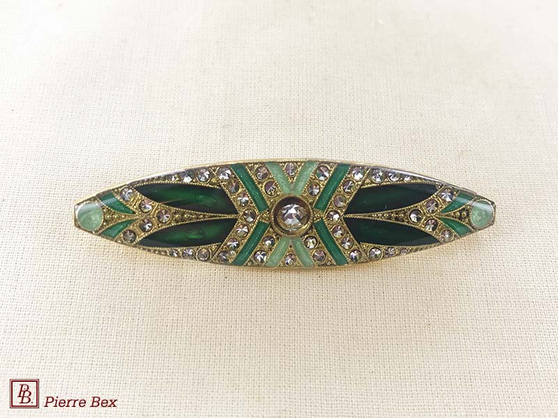 ![]() Art-Deco brooch 49506-03Sold OutMade by Pierre-Bex from silverplated copper, rhinestones and enamel, this brooch is 4 cm ( 1-½ inch ) width. Sold Out |