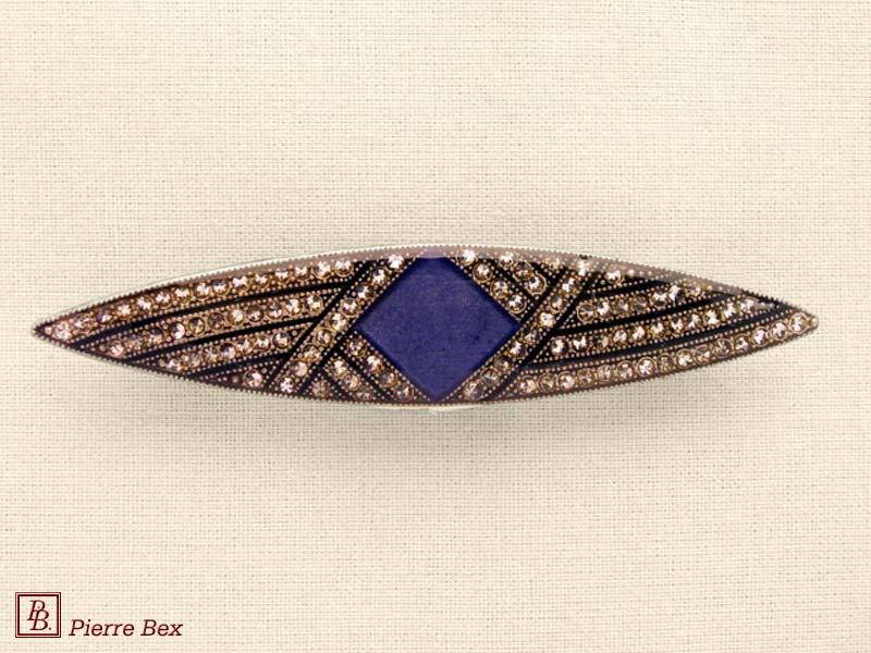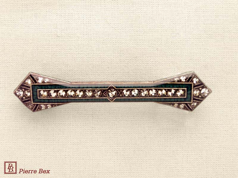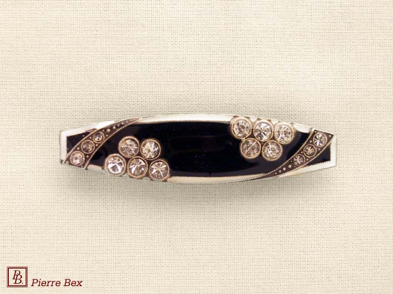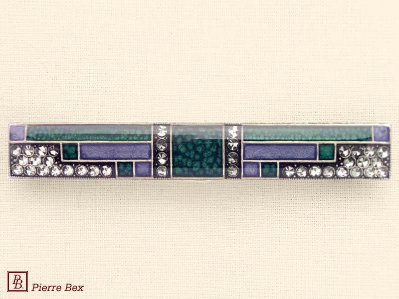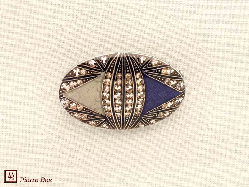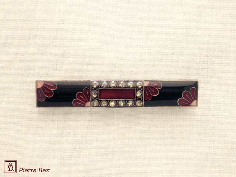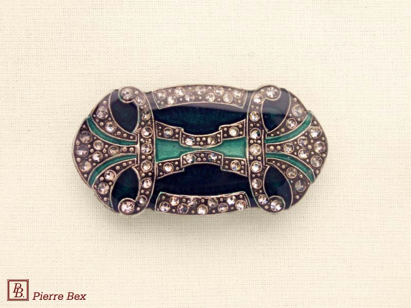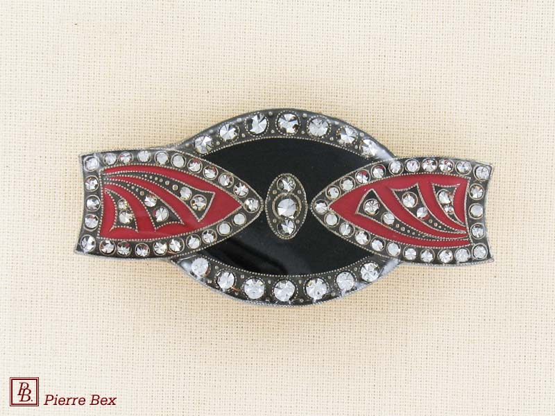 ![]() Art-Deco brooch 49506-148Sold OutMade by Pierre-Bex from silverplated copper, rhinestones and enamel, this brooch is 4 cm ( 1-½ inch ) width. Sold Out |