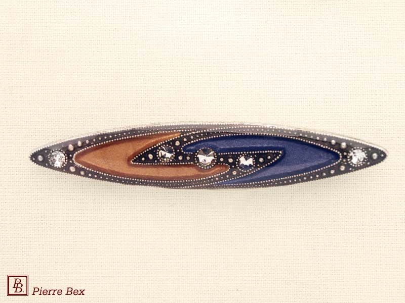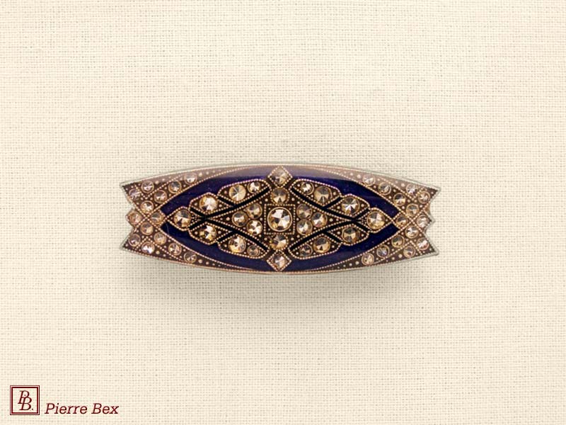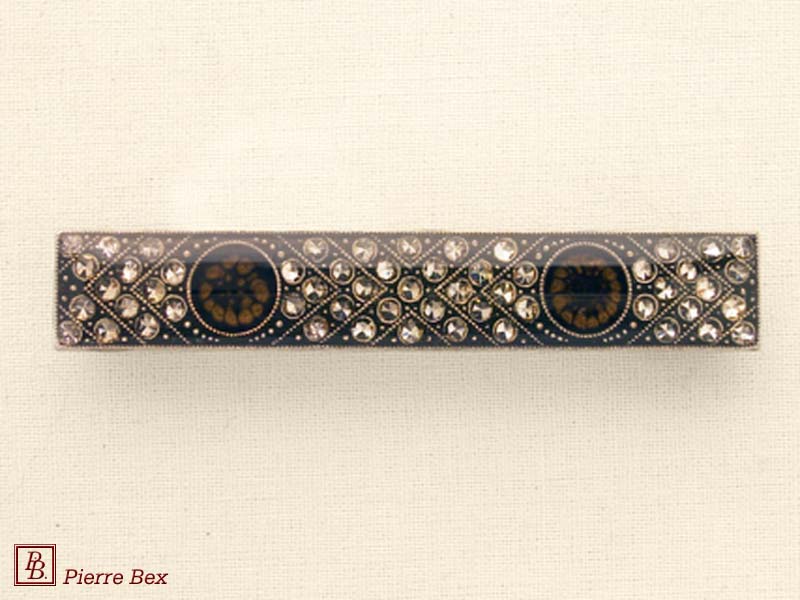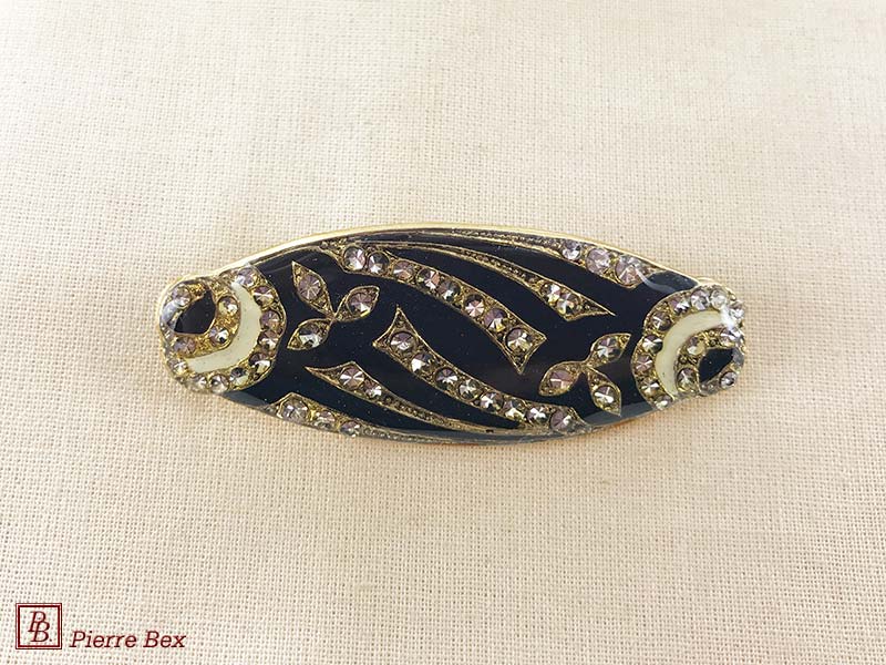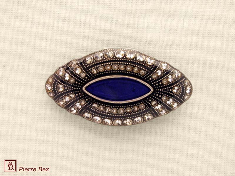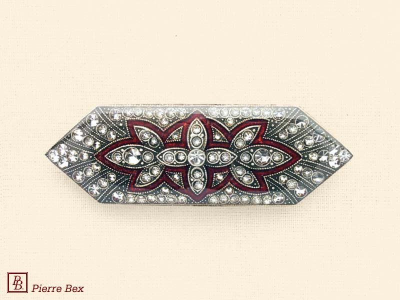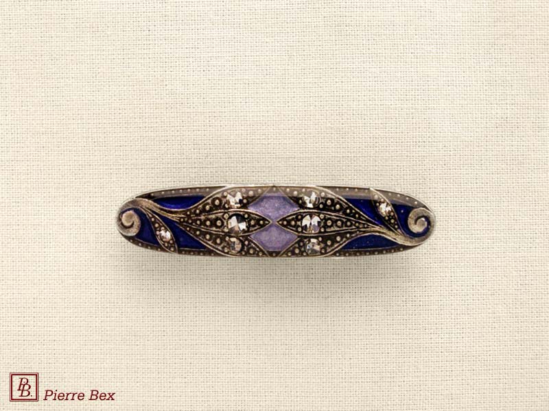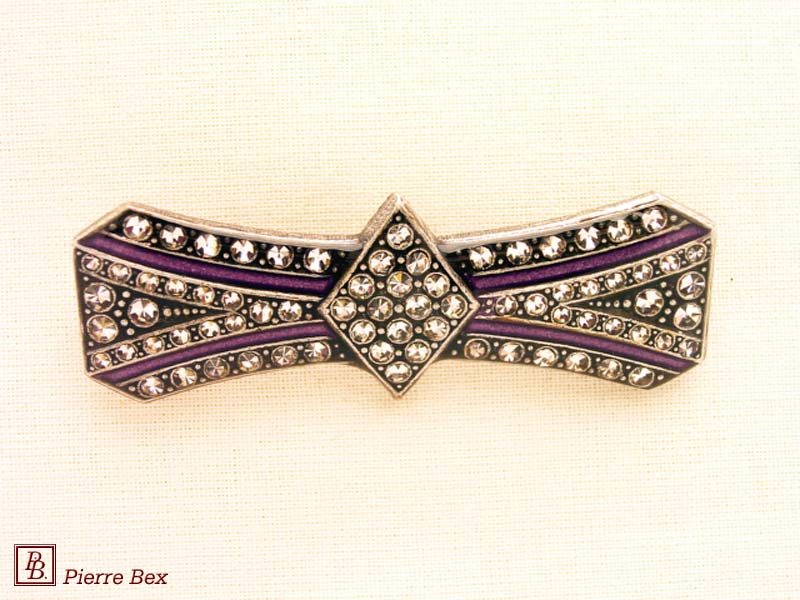 ![]() Art-Deco brooch 49506-148Sold OutMade by Pierre-Bex from silverplated copper, rhinestones and enamel, this brooch is 4 cm ( 1-½ inch ) width. Sold Out |