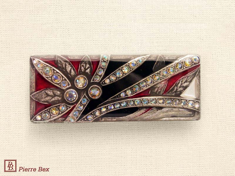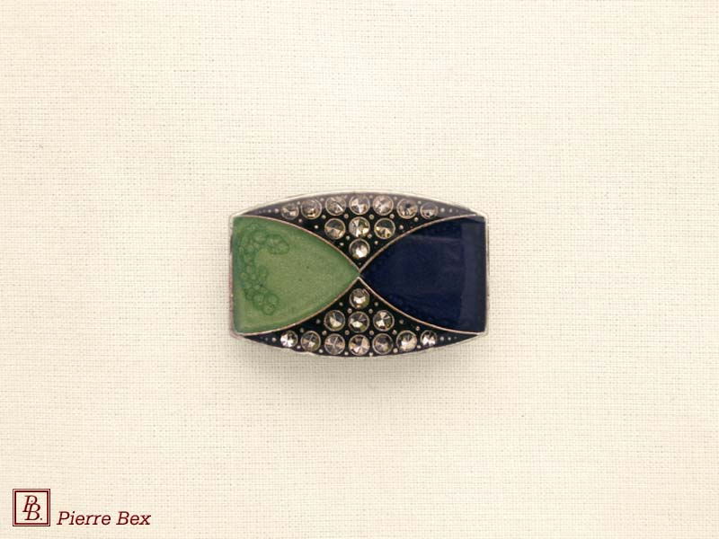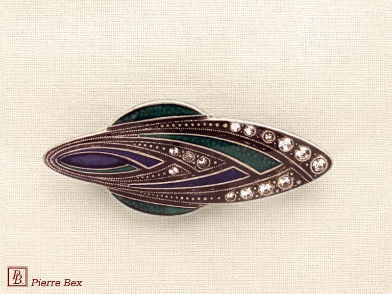 ![]() Art-Deco brooch 49506-154Sold OutMade by Pierre-Bex from silverplated copper, rhinestones and enamel, this brooch is 5.5 cm ( 2 inches ) width. Sold Out |