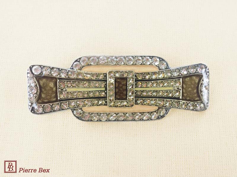 ![]() Art-Deco brooch 49506-85Sold OutMade by Pierre-Bex from silverplated copper, rhinestones and enamel, this brooch is 7 cm ( 2-½ inches ) width. Sold Out |