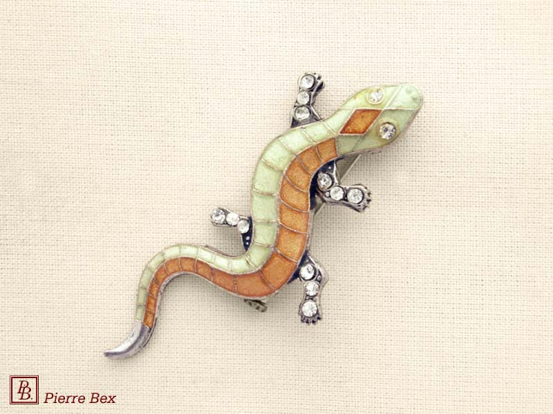 ![]() Art-Deco brooch lizard 49506-56USD 25.00![]() Made by Pierre-Bex from silverplated copper, rhinestones and enamel, this brooch is 5 cm ( 2 inches ) width. USD 25.00 |