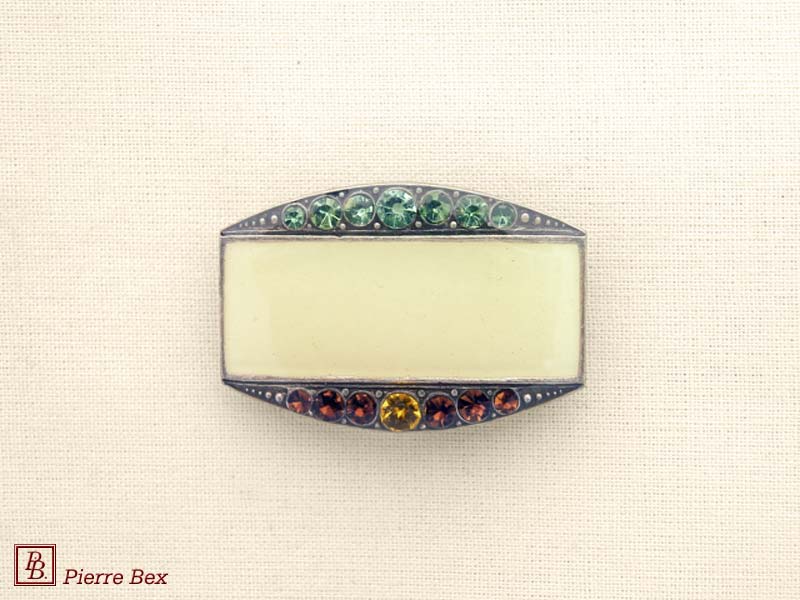 ![]() Art-Deco brooch 49506-149Sold OutMade by Pierre-Bex from silverplated copper, rhinestones and enamel, this brooch is 4 cm ( 1-½ inch ) width. Sold Out |