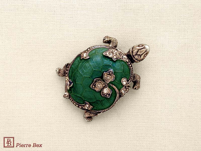 ![]() Art-Deco brooch turtle 49506-110USD 30.00![]() Made by Pierre-Bex from silverplated copper, rhinestones and enamel, this brooch is 3.5 cm ( 1-½ inch ) width. USD 30.00 |