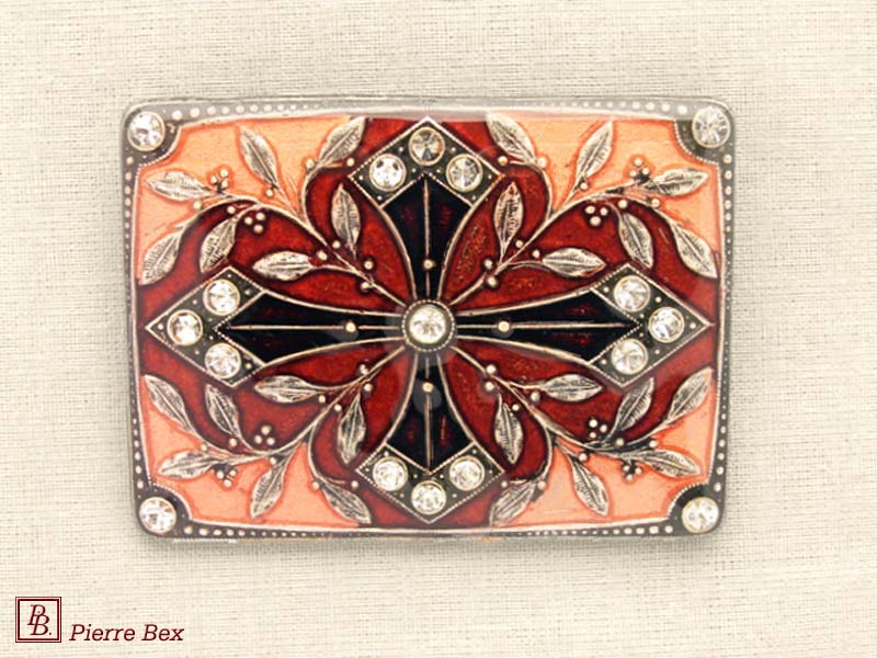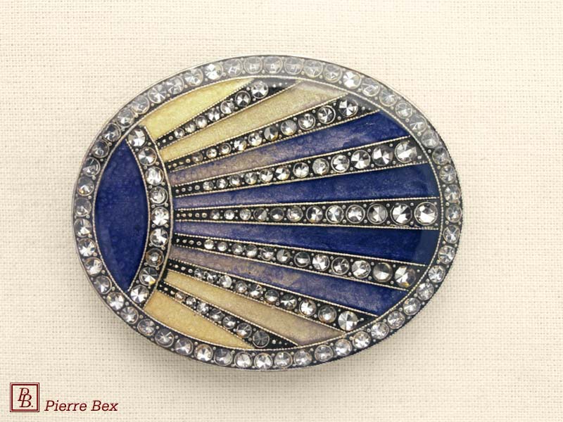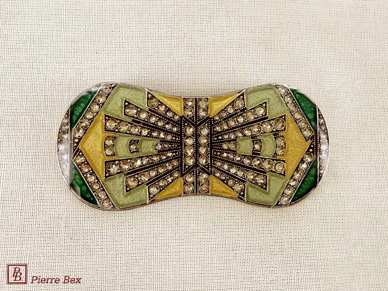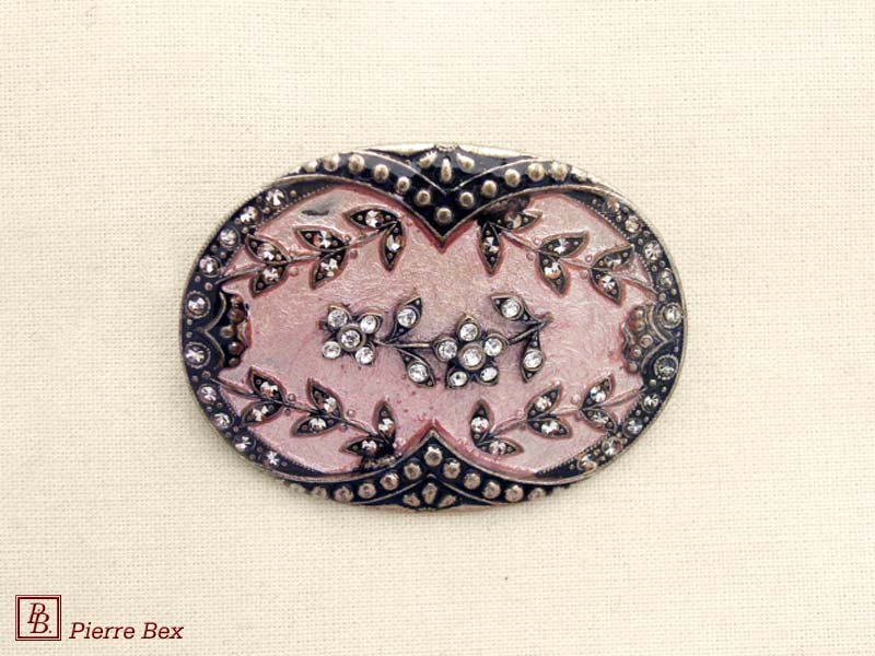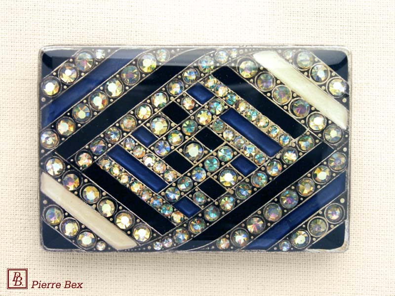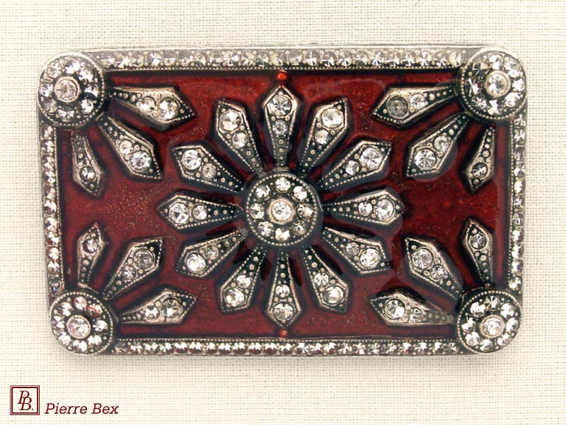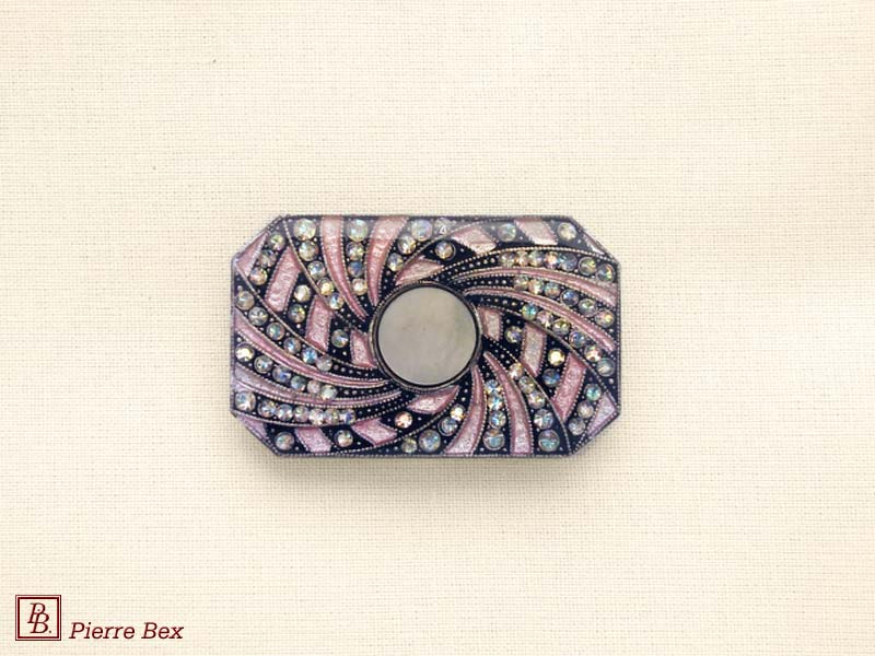 ![]() Art-Deco brooch 46686-02Sold OutMade by Pierre-Bex from silverplated copper, rhinestones and enamel, this brooch is 4.5 cm ( 1-½ inch ) width. Sold Out |