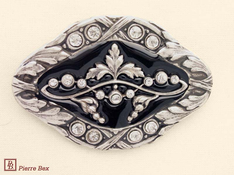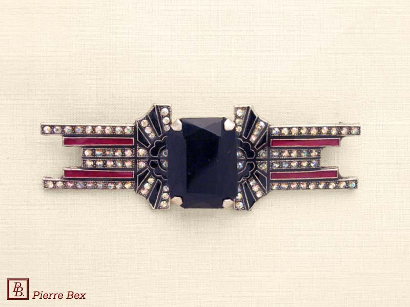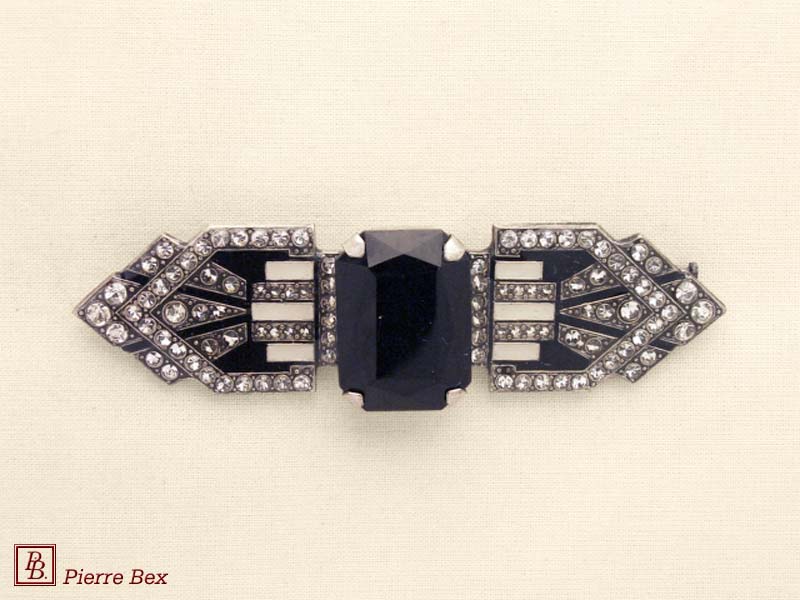 ![]() Art-Deco large brooch 49686-01Sold OutMade by Pierre-Bex from silverplated copper, rhinestones and enamel, this brooch is 8 cm ( 3 inches ) width. Sold Out |