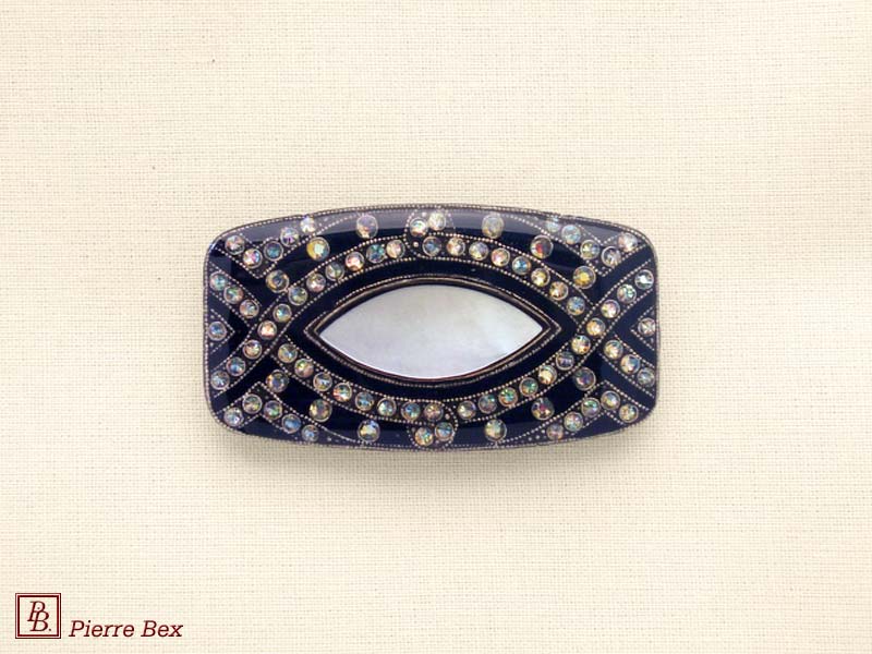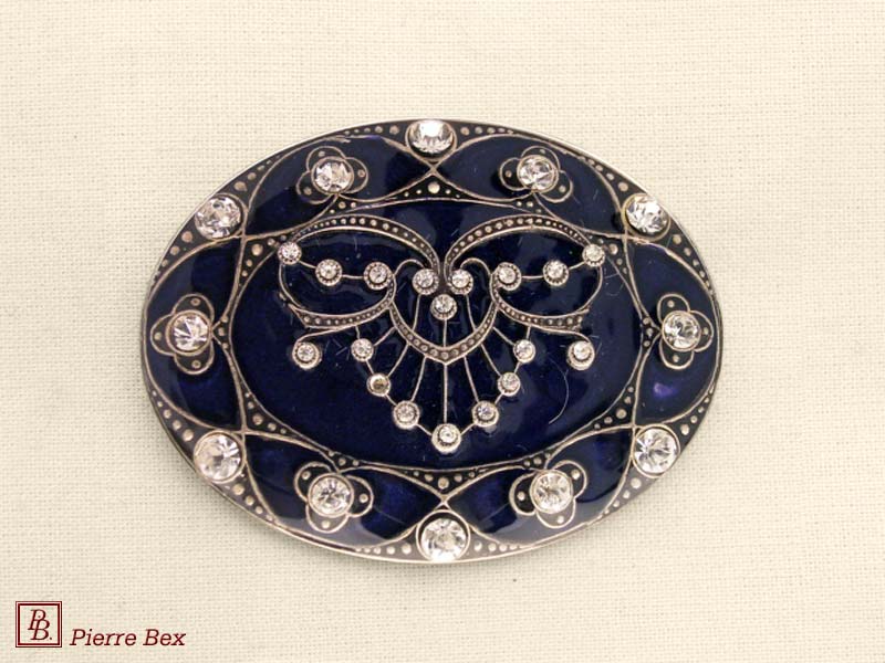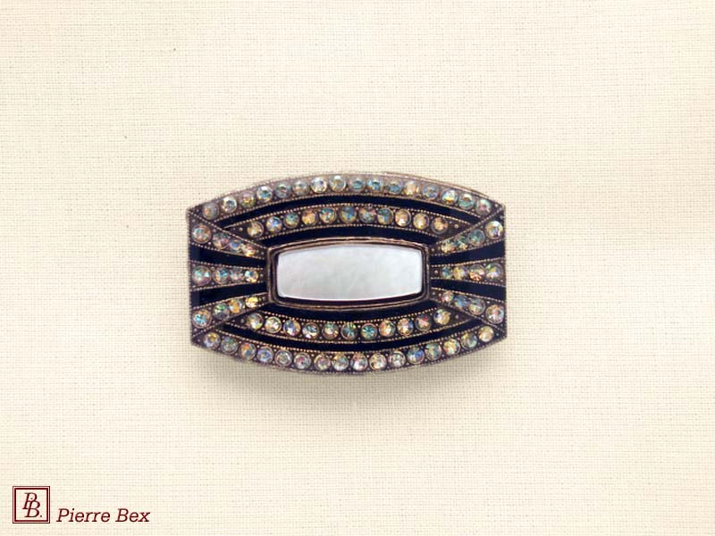![]() Art-Deco large brooch 49566-16Sold OutMade by Pierre-Bex from silverplated copper, rhinestones and enamel, this brooch is 6 cm ( 2-½ inches ) width. Sold Out |