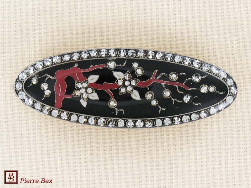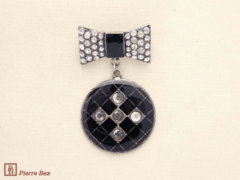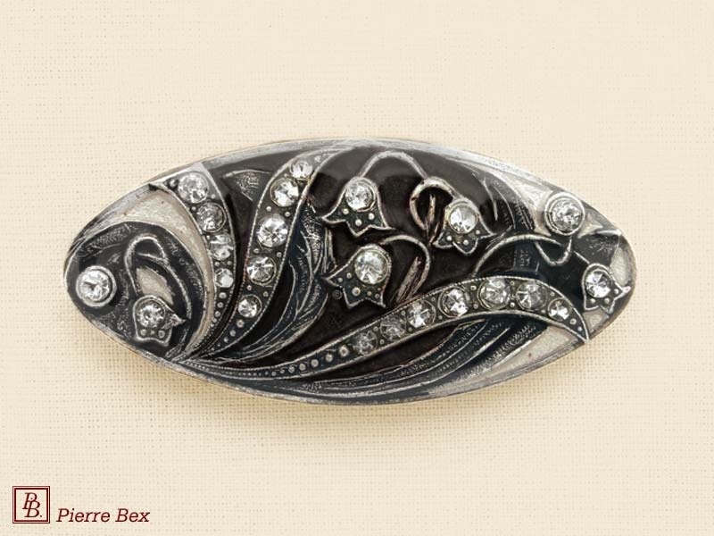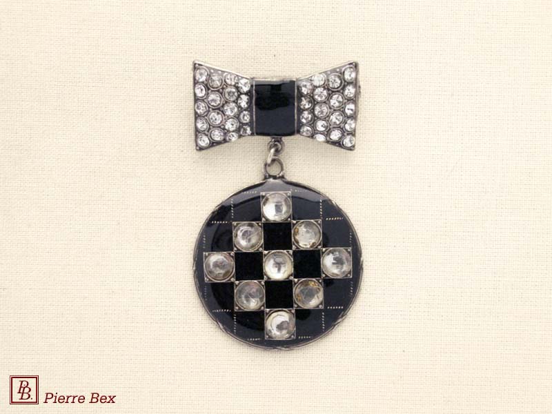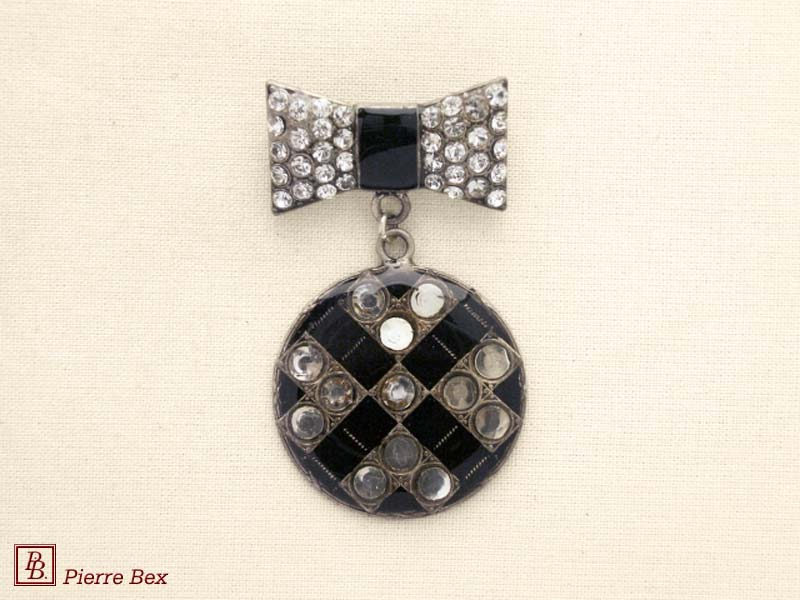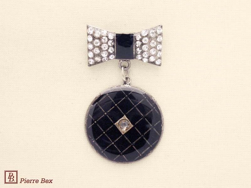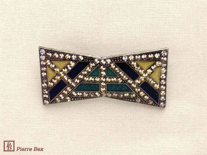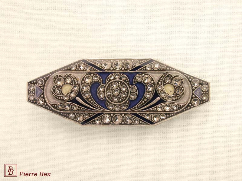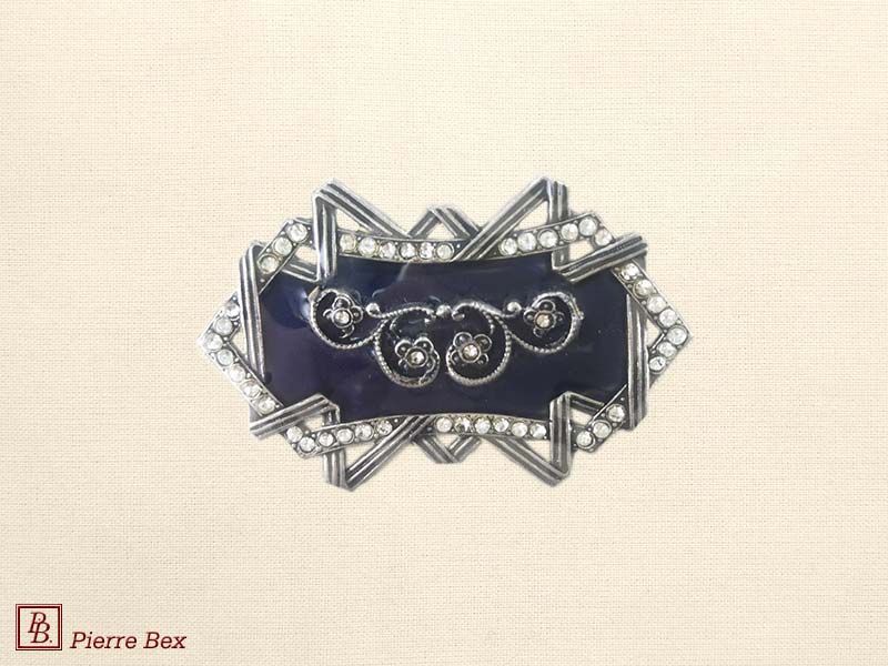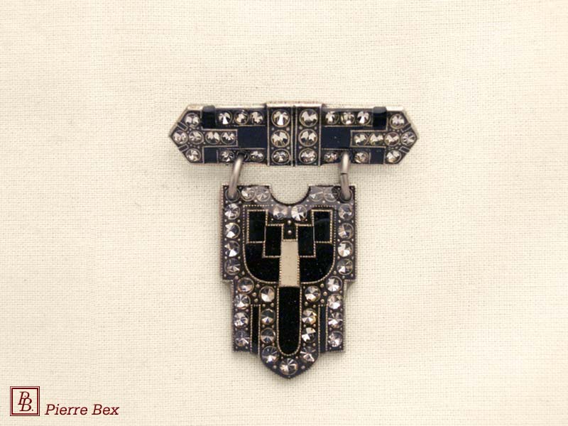 ![]() Art-Deco brooch 46696-06Sold OutMade by Pierre-Bex from silverplated copper, rhinestones and enamel, this brooch is 4 cm ( 1-½ inch ) width. Sold Out |