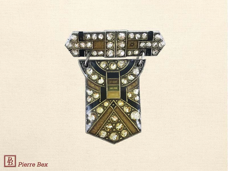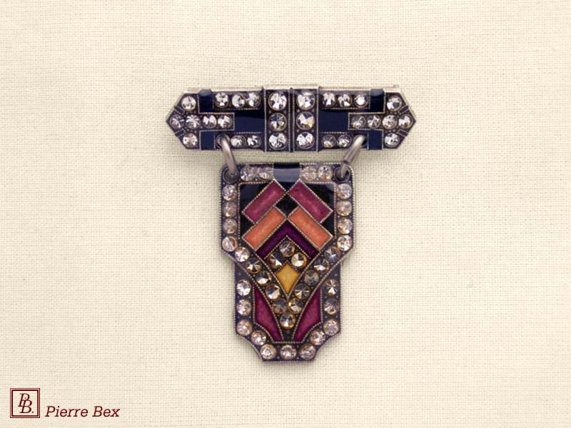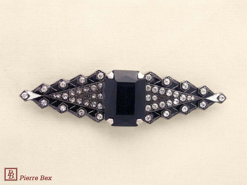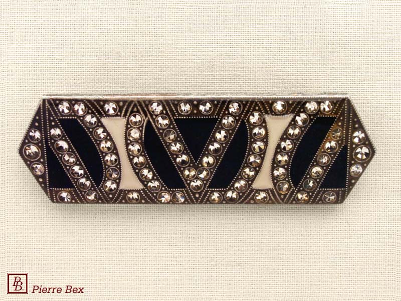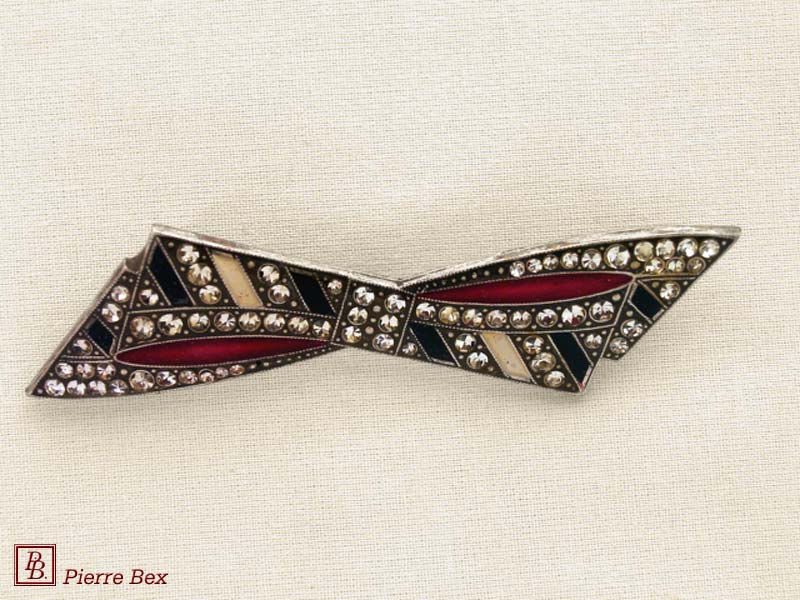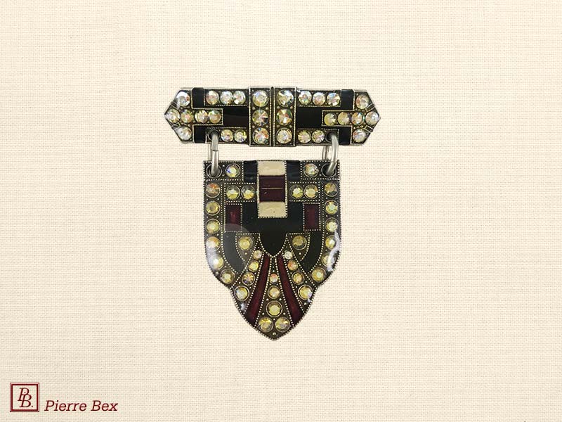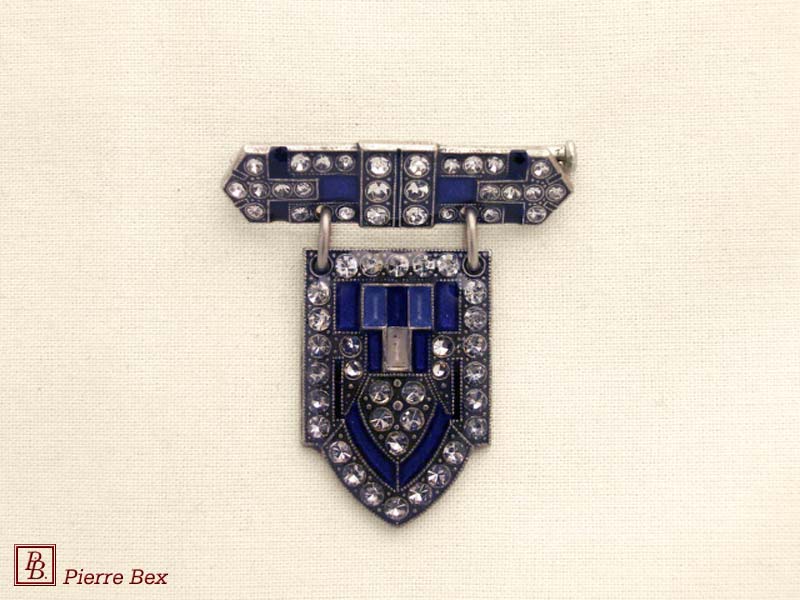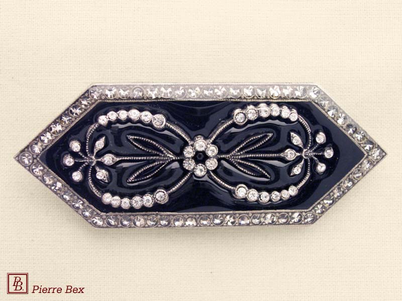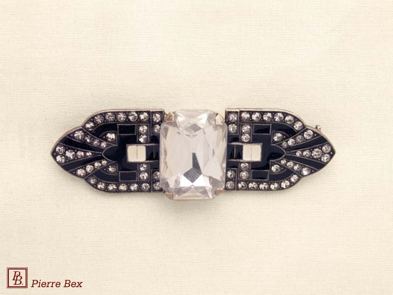 ![]() Art-Deco brooch 46676-03Sold OutMade by Pierre-Bex from silverplated copper, rhinestones and enamel, this brooch is 5 cm ( 2 inches ) width. Sold Out |