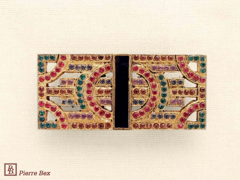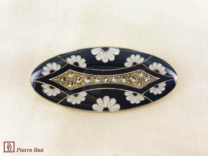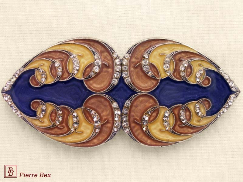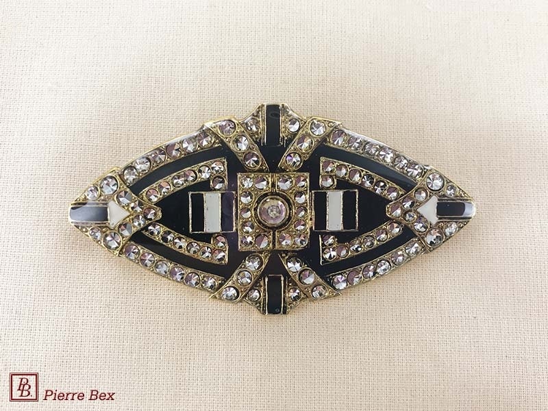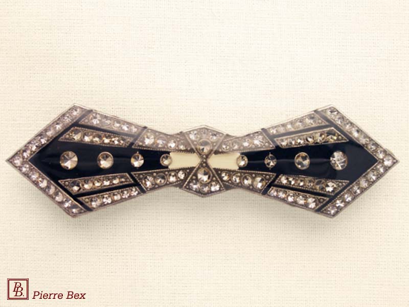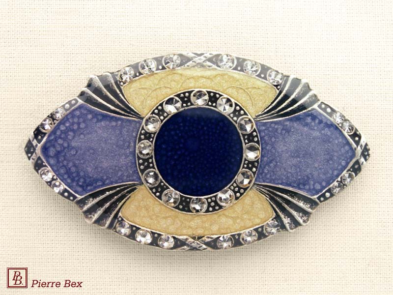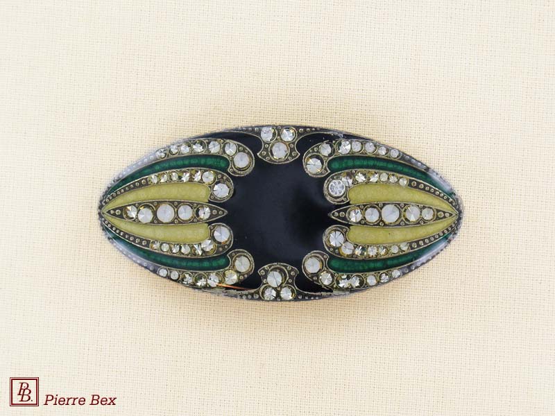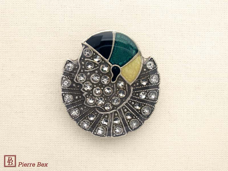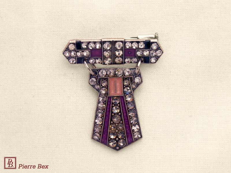 ![]() Art-Deco brooch 46676-03Sold OutMade by Pierre-Bex from silverplated copper, rhinestones and enamel, this brooch is 5 cm ( 2 inches ) width. Sold Out |