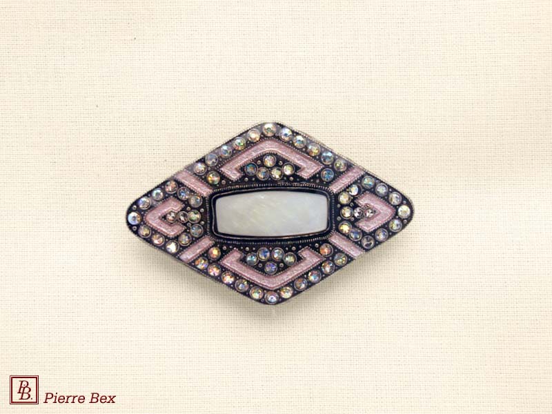 ![]() Art-Deco enameled brooch 49386-01Sold OutMade by Pierre-Bex from silverplated copper, enameled with rhinestones and mother-of-pearl, this brooch is 5 cm ( 2 inches ) width. Sold Out |
