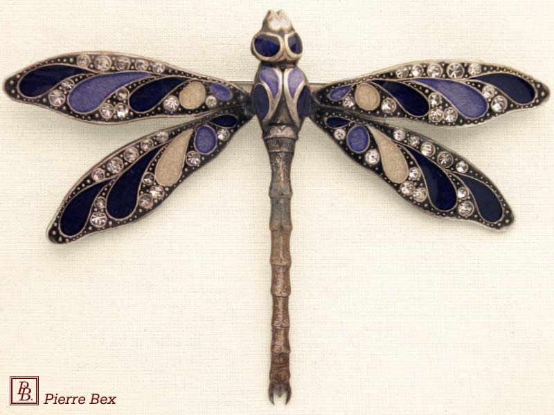 Made by Pierre-Bex from silverplated copper, rhinestones and enamel,