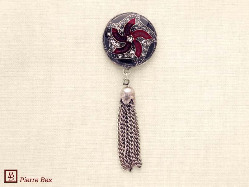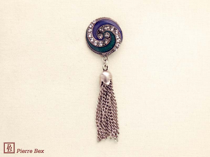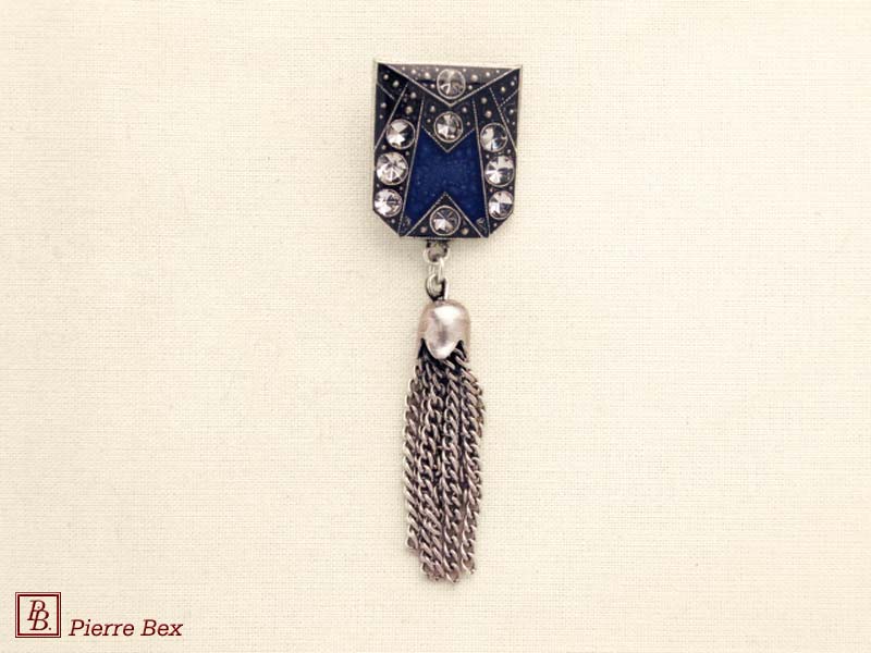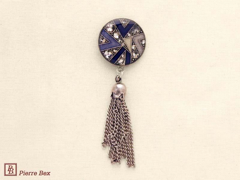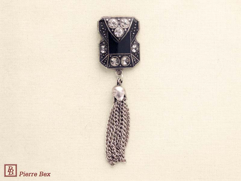 ![]() Art-Deco tag with pompon 49656-10Sold OutMade by Pierre-Bex from enameled silverplated copper with enamel and rhinestones, this tag brooch is 6 cm ( 2-½ inches ) height. Sold Out |