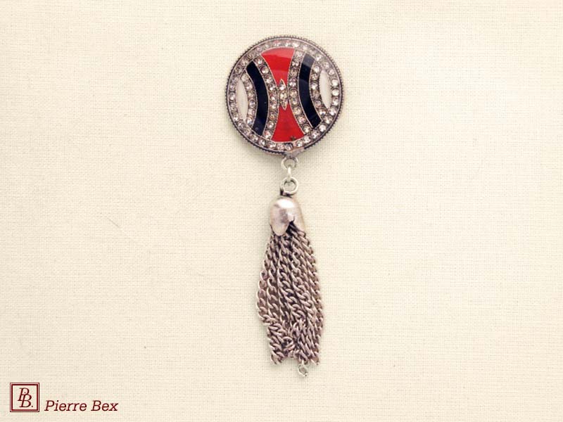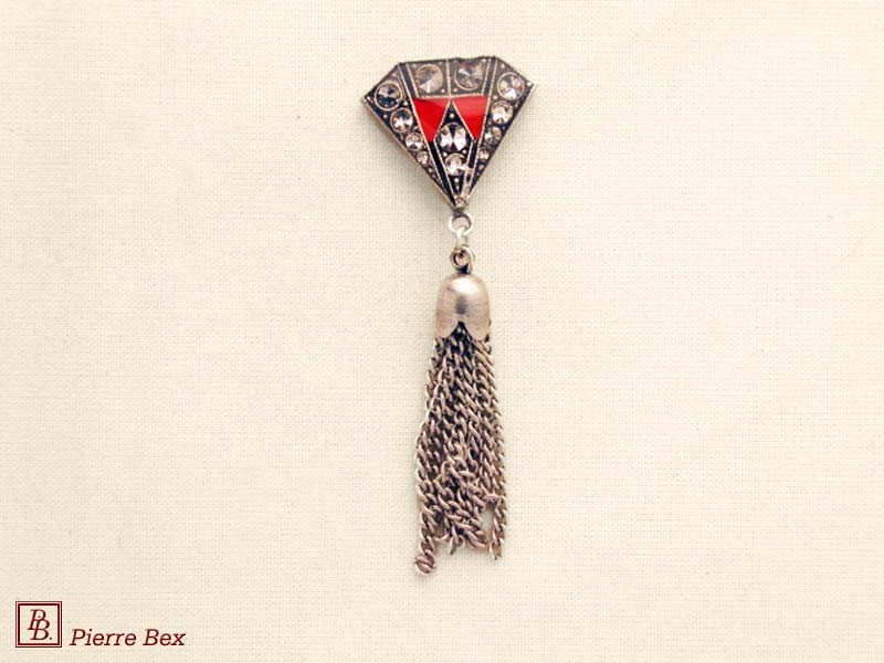 ![]() Art-Deco tag with pompon 49656-11Sold OutMade by Pierre-Bex from enameled silverplated copper with enamel and rhinestones, this tag brooch is 6 cm ( 2-½ inches ) height. Sold Out |