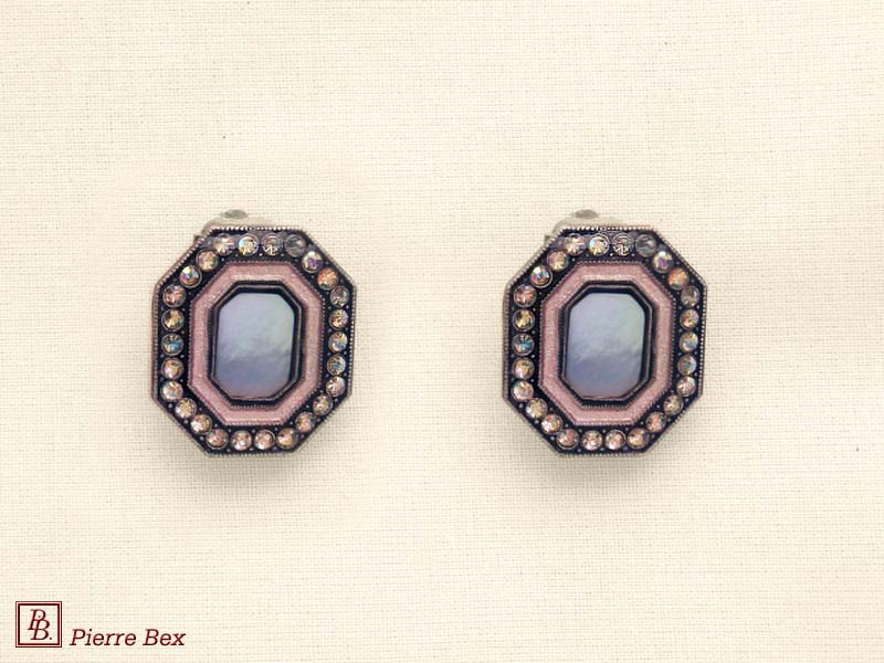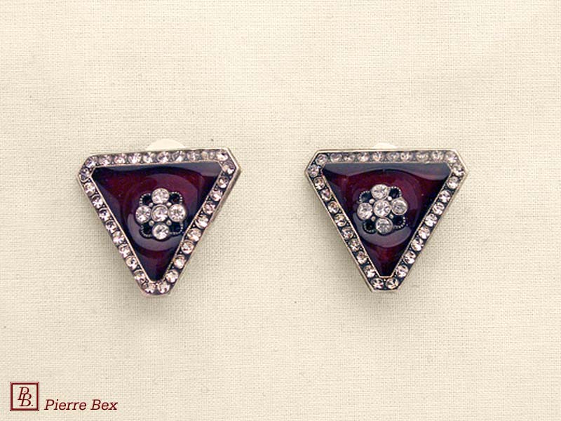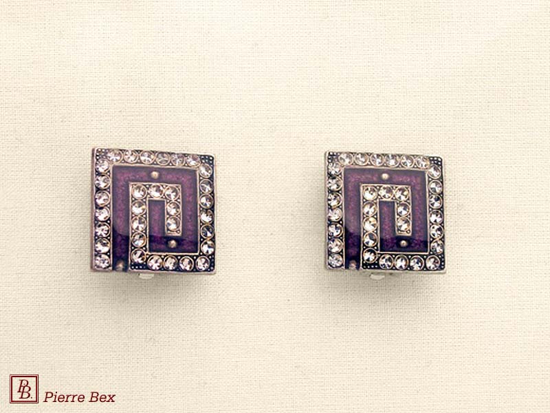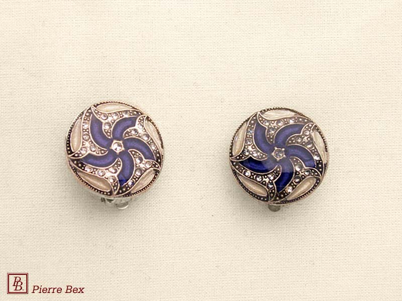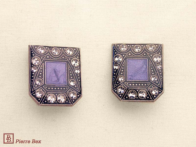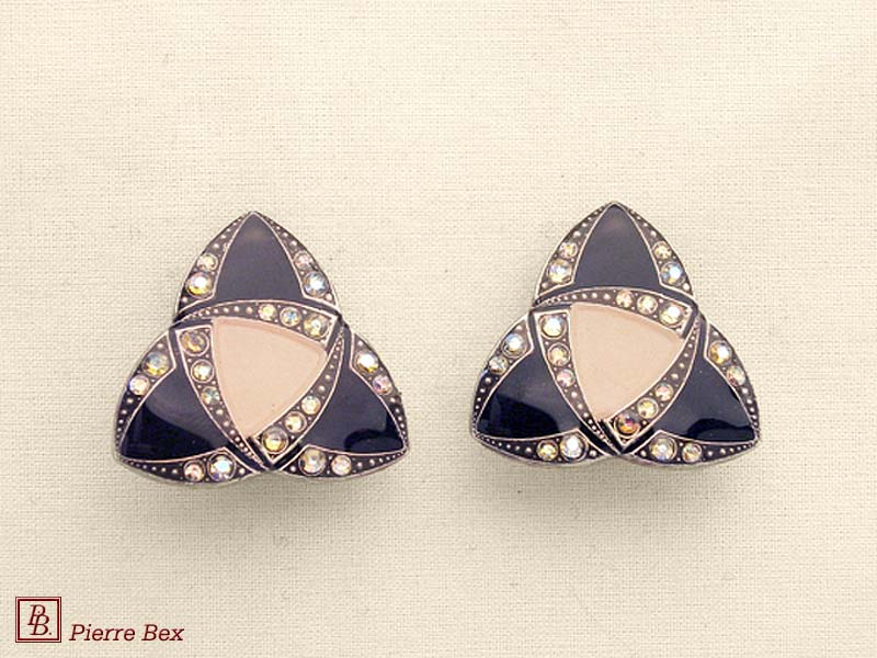 ![]() Art-Deco earclips 49355-12Sold OutMade by Pierre-Bex from silverplated copper, rhinestones and enamel, the length of these earclips is 5 cm ( 2 inches ). Sold Out |