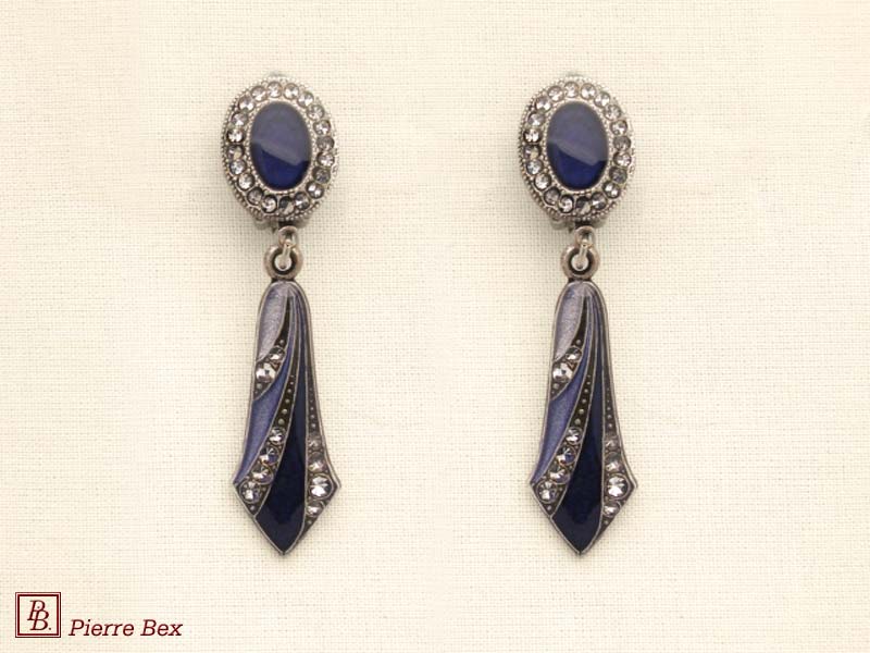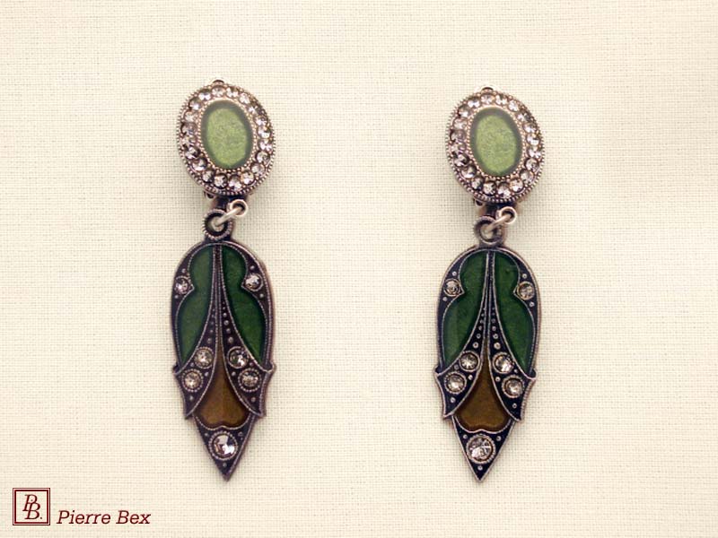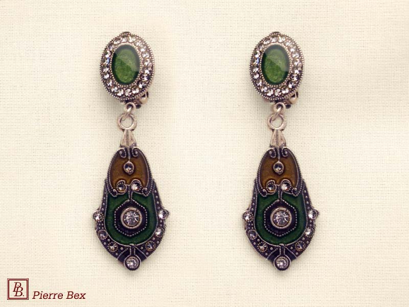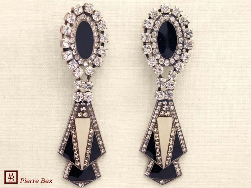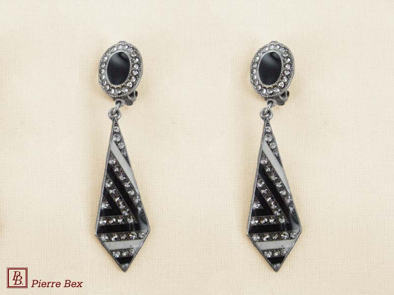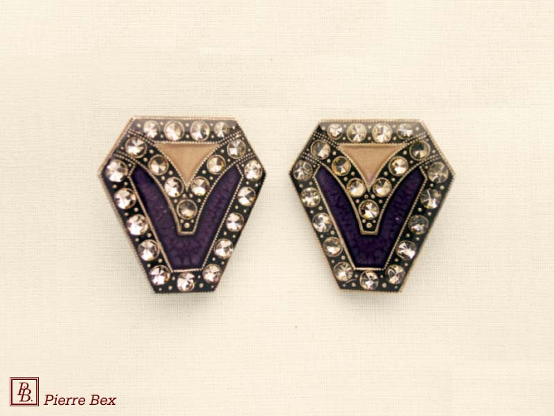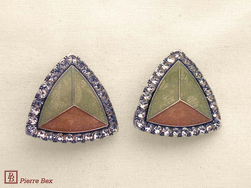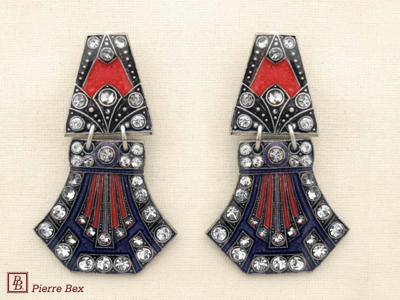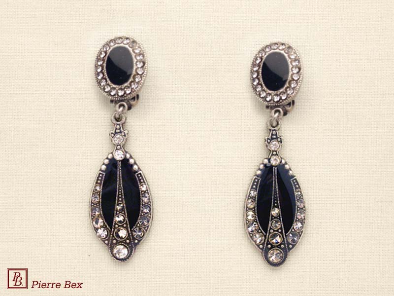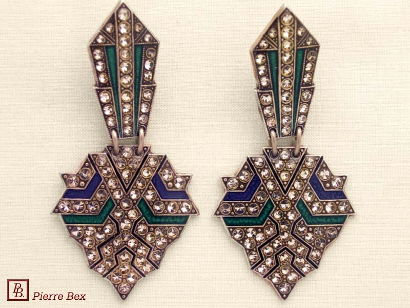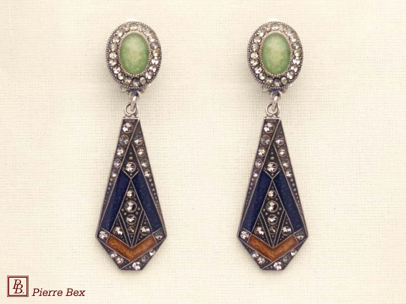 ![]() Art-Deco earclips 49355-20Sold OutMade by Pierre-Bex from silverplated copper, rhinestones and enamel, the length of these earclips is 5 cm ( 2 inches ). Sold Out |