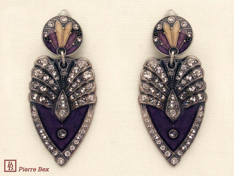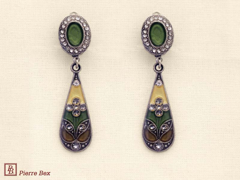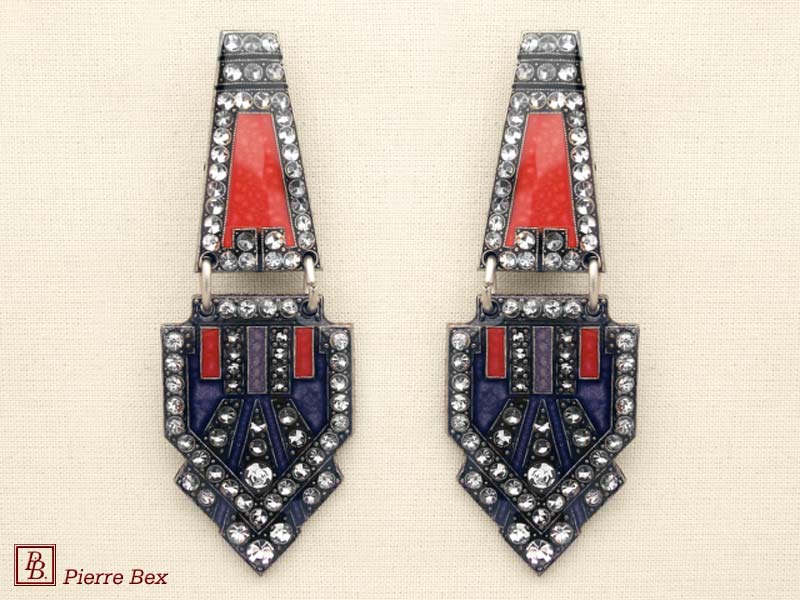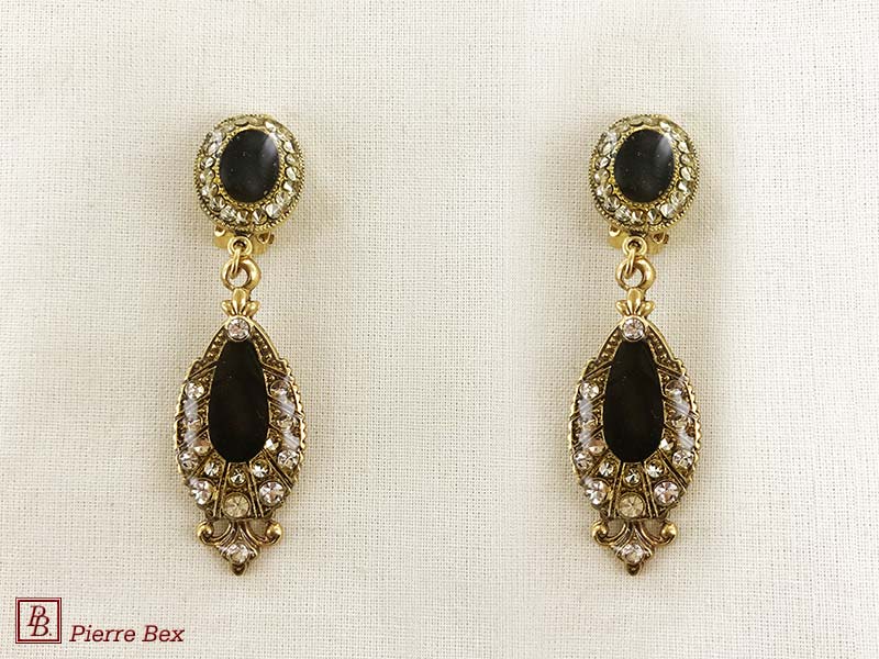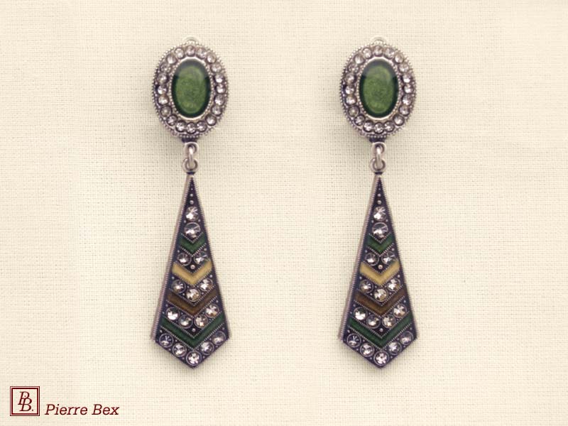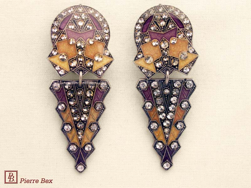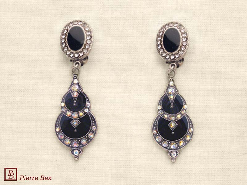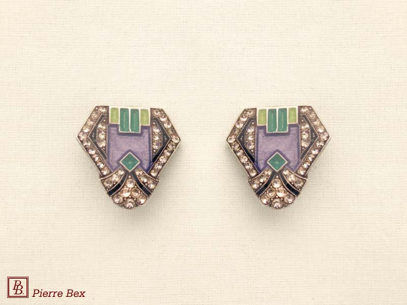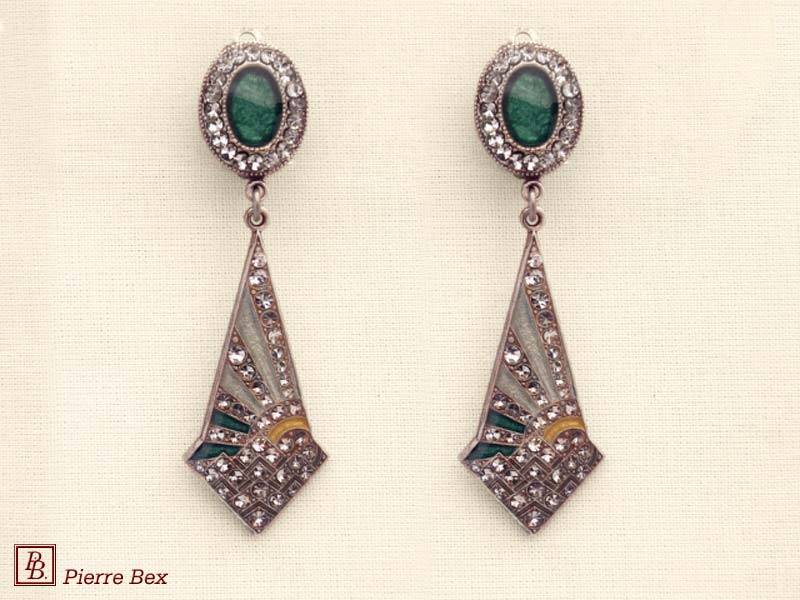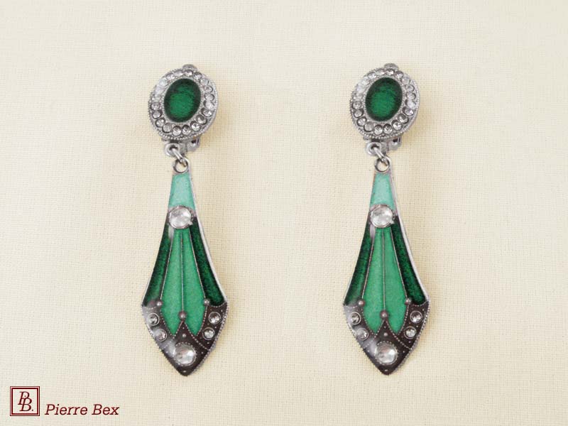![]() Art-Deco earclips 49355-20Sold OutMade by Pierre-Bex from silverplated copper, rhinestones and enamel, the length of these earclips is 5 cm ( 2 inches ). Sold Out |