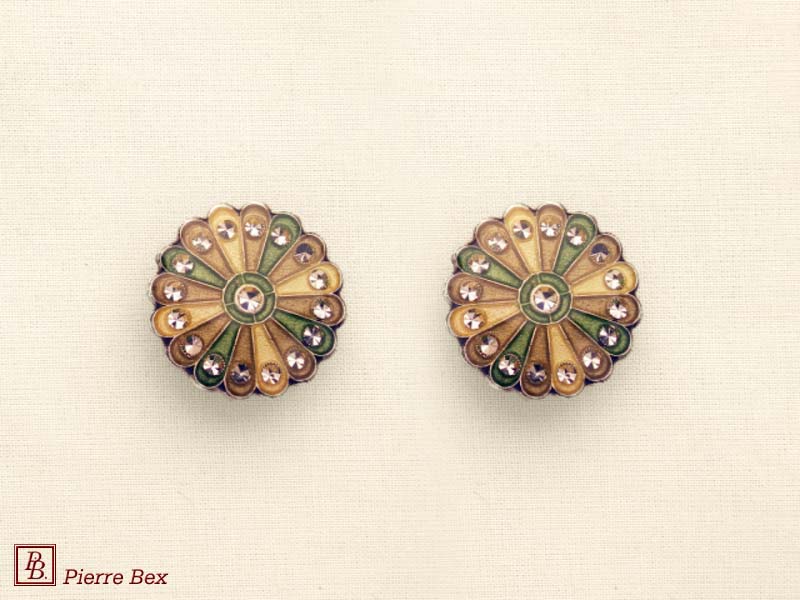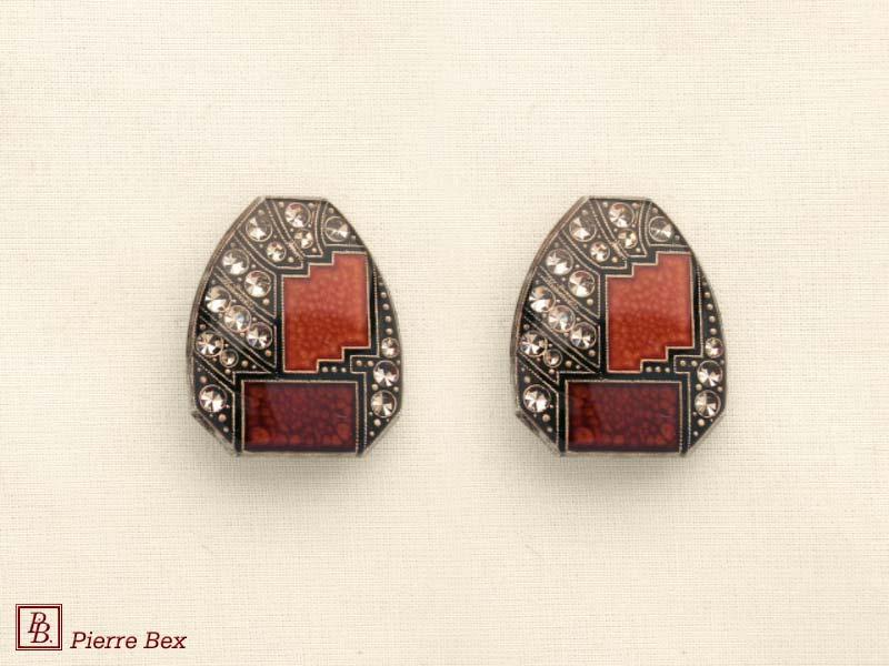 ![]() Art-Deco enameled earclips 49185-20Sold OutMade by Pierre-Bex from silverplated copper, enameled and rhinestones, the length of these earclips is 3 cm ( 1 inch ). Sold Out |