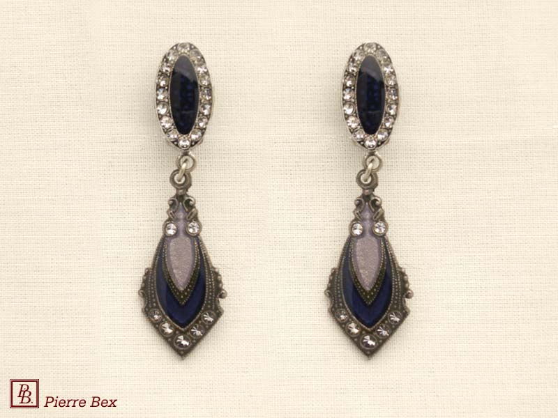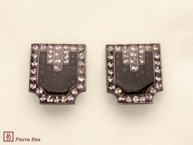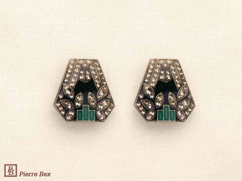 ![]() Art-Deco earclips 49355-14Sold OutMade by Pierre-Bex from silverplated copper, rhinestones and enamel, the length of these earclips is 5 cm ( 2 inches ). Sold Out |