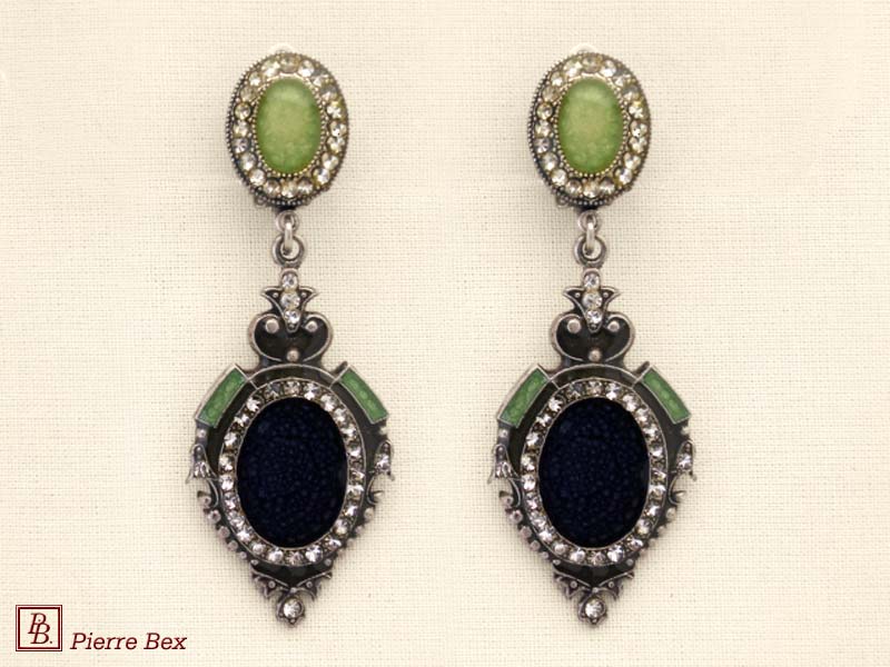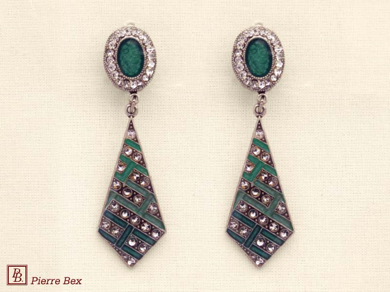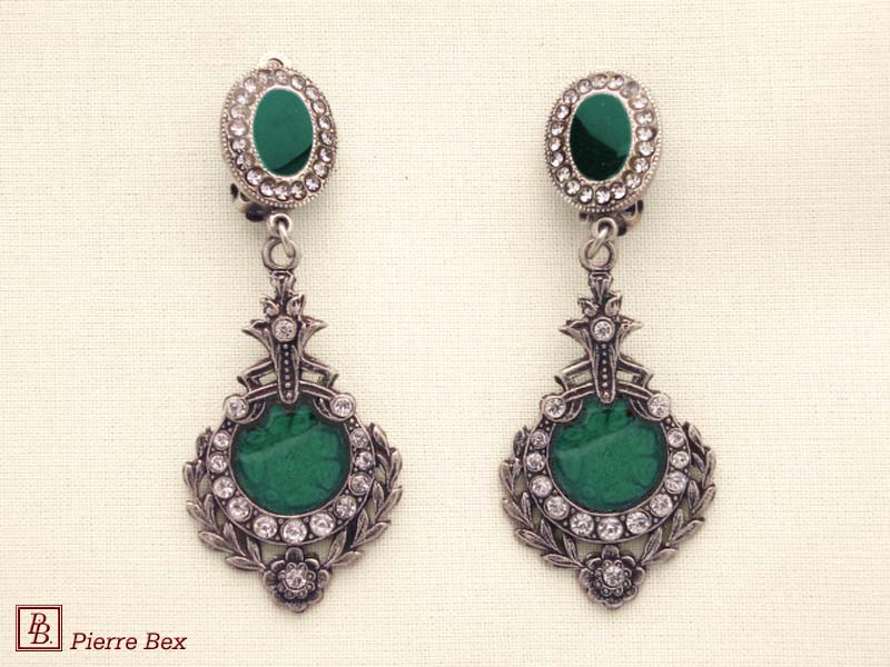 ![]() Art-Deco earclips 49355-02Sold OutMade by Pierre-Bex from silverplated copper, rhinestones and enamel, the length of these earclips is 5 cm ( 2 inches ). Sold Out |