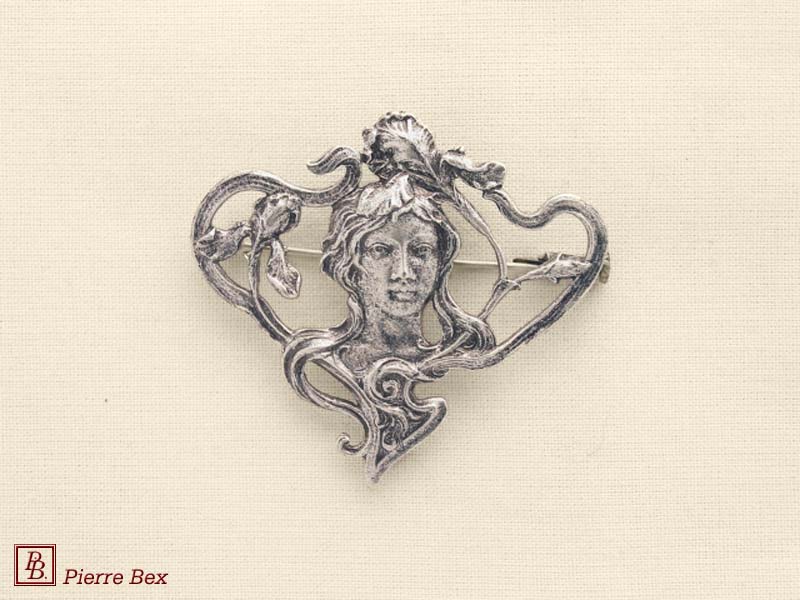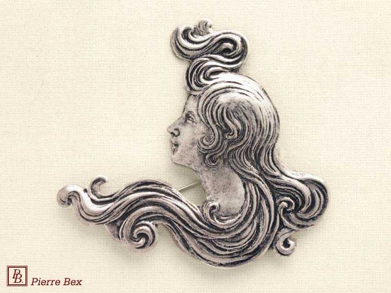 ![]() Art-Nouveau brooch 41166-39Sold OutMade by Pierre-Bex from silverplated copper, this brooch is 6 cm ( 2-½ inches ) width. Sold Out |