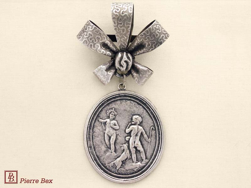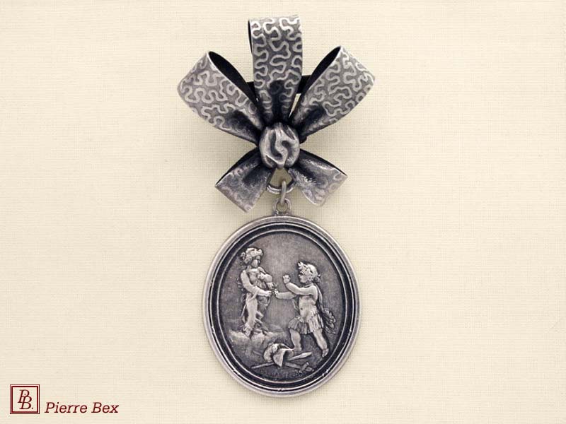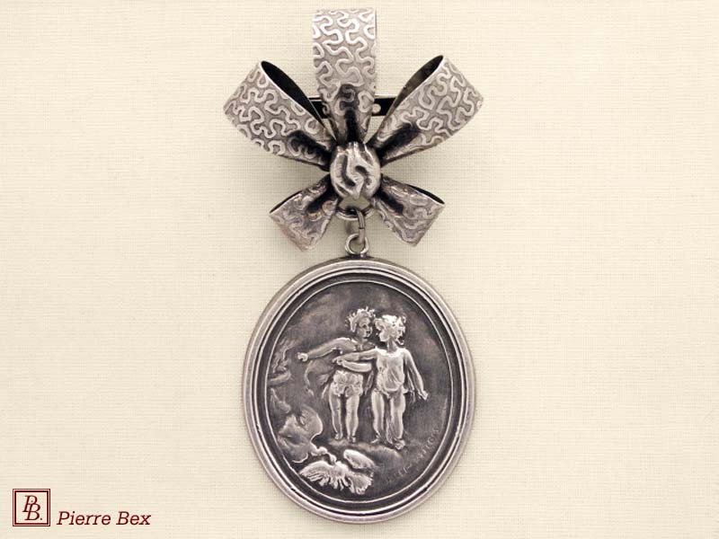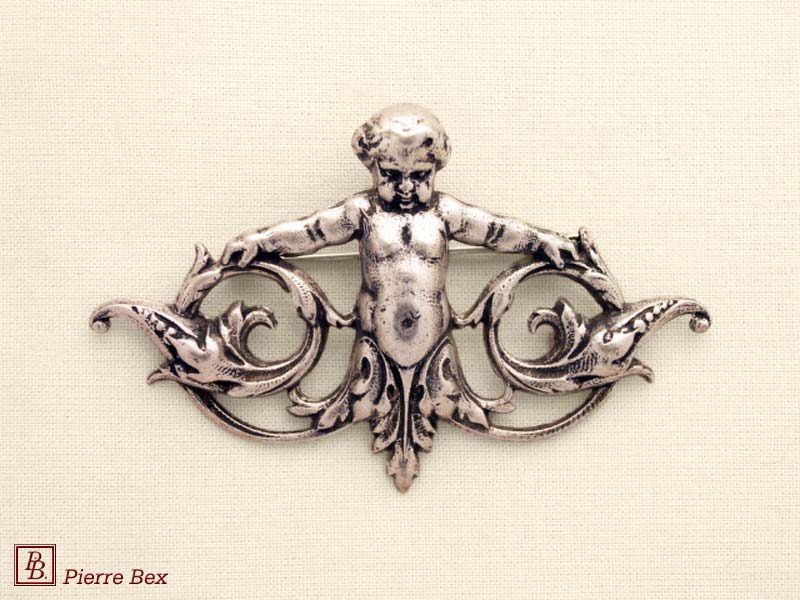 ![]() Art-Nouveau brooch cherub 41166-41Sold OutMade by Pierre-Bex from silverplated copper, this brooch is 7 cm ( 2-½ inches ) width. Sold Out |