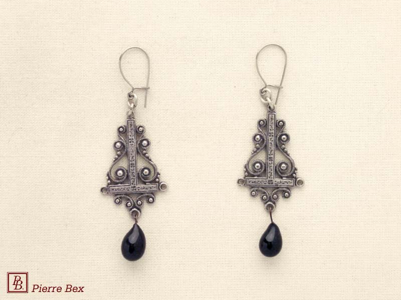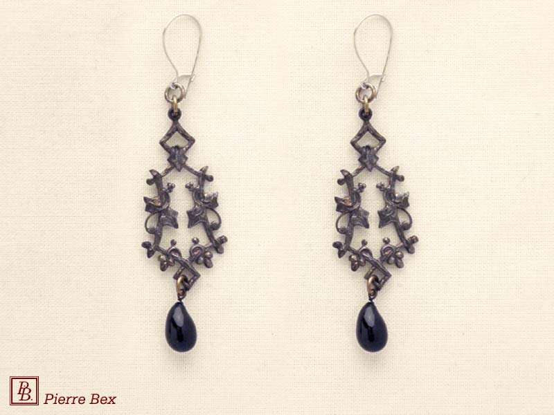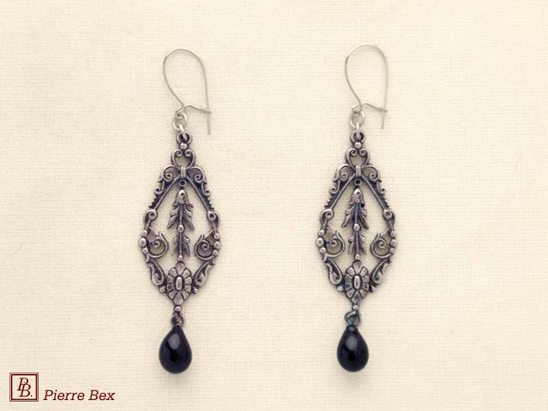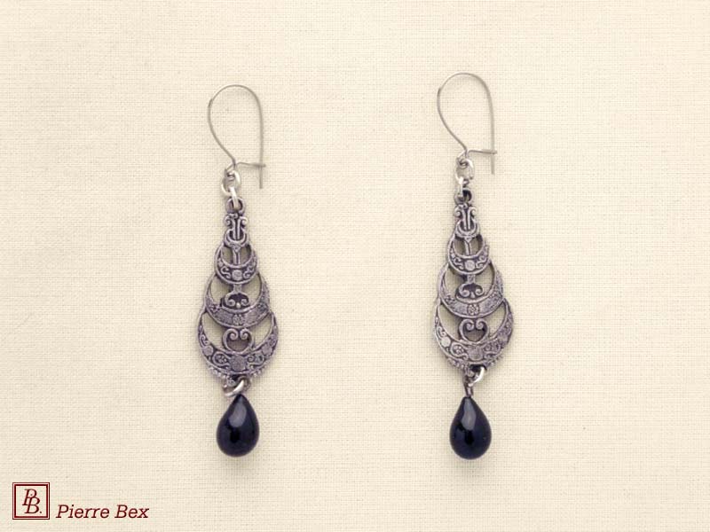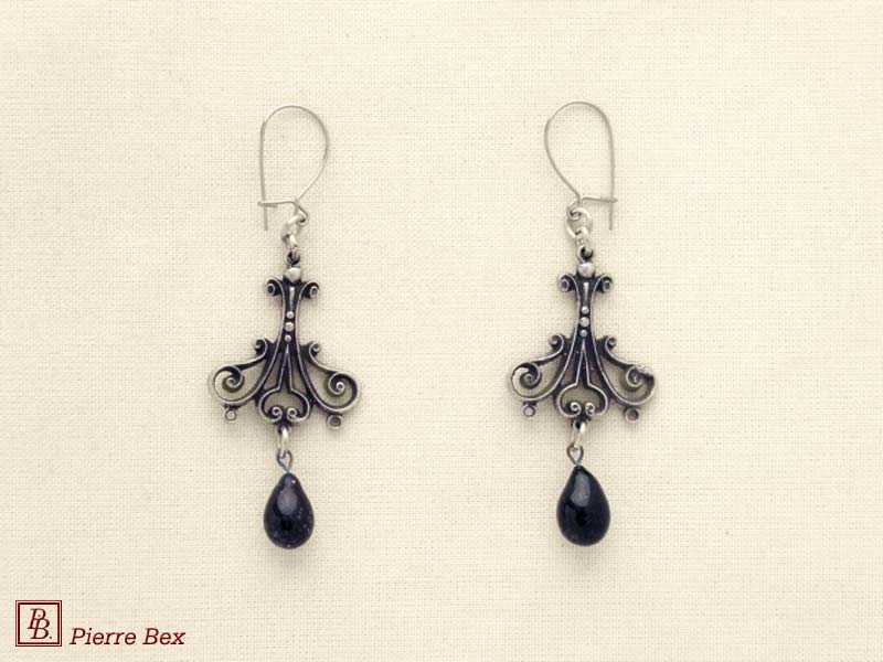 ![]() Art-Nouveau earrings 41515-08Sold OutMade by Pierre-Bex from silverplated copper with a black glass bead, the length of these earrings is 5.5 cm ( 2 inches ). Sold Out |