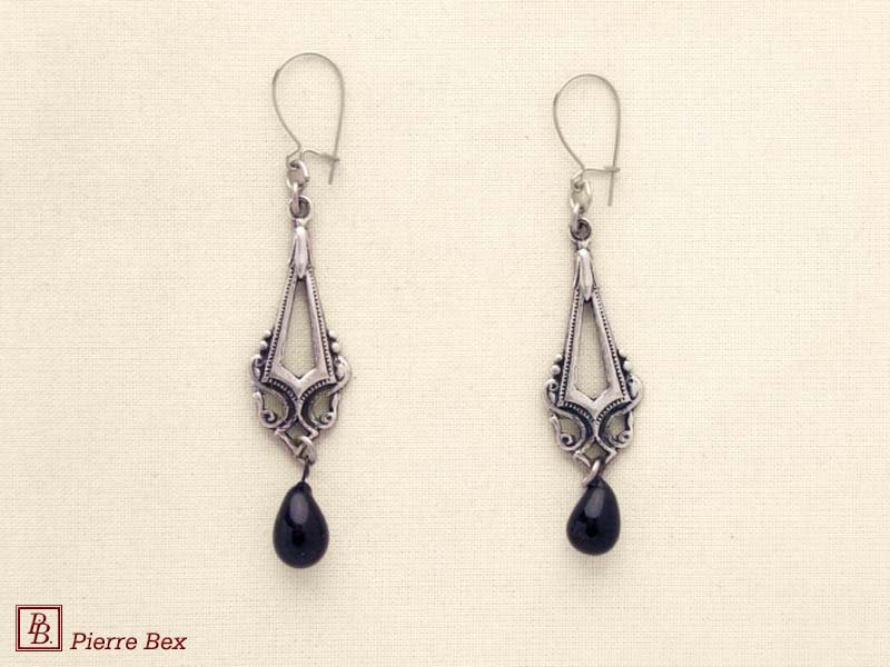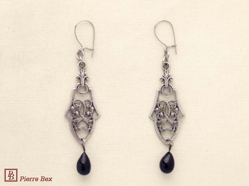 ![]() Art-Nouveau earrings 41515-15USD 20.00![]() Made by Pierre-Bex from silverplated copper with a black glass bead, the length of these earrings is 5.5 cm ( 2 inches ). USD 20.00 |