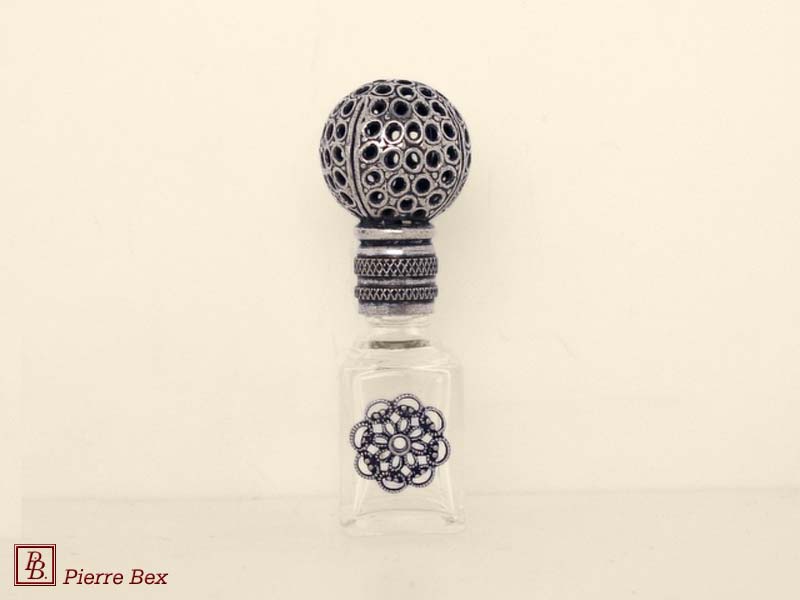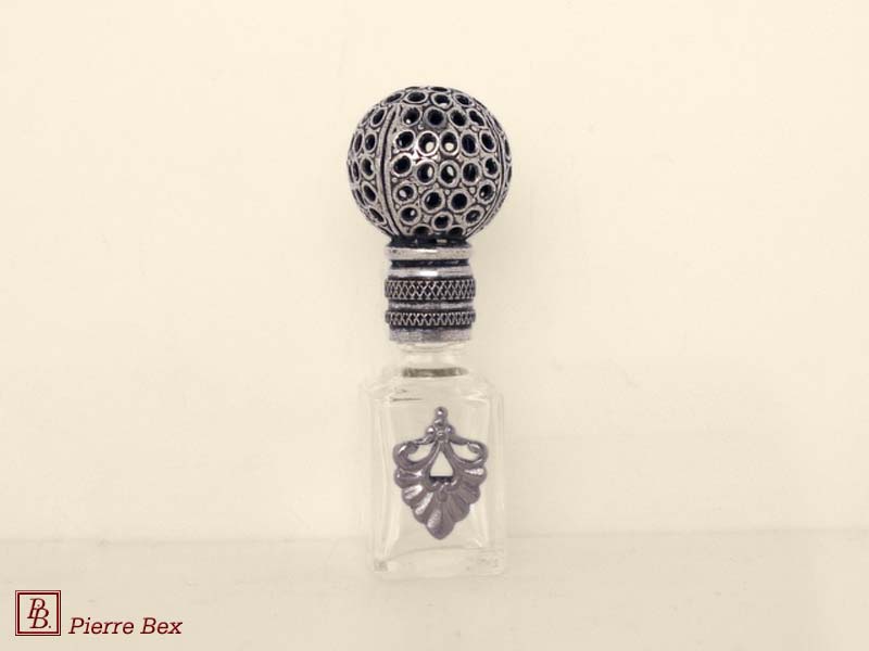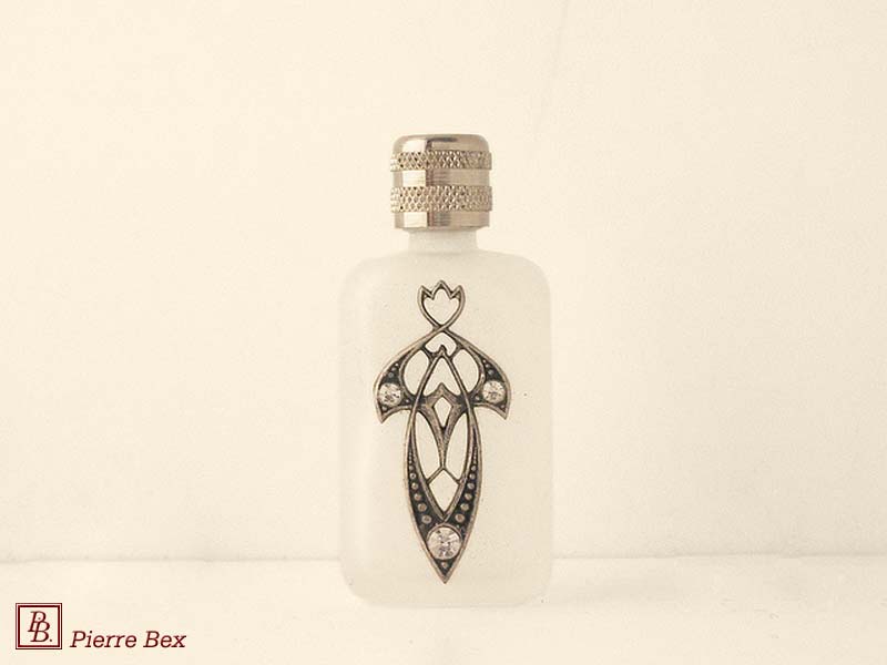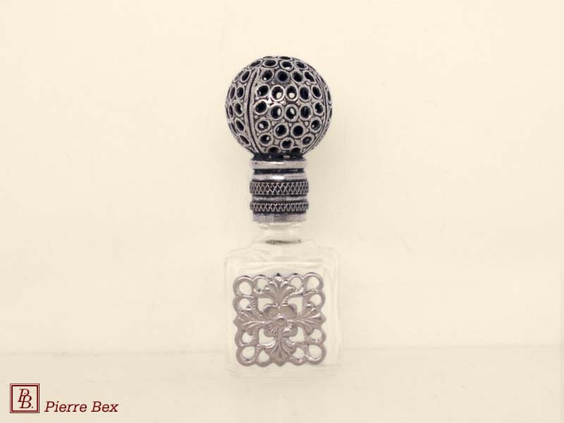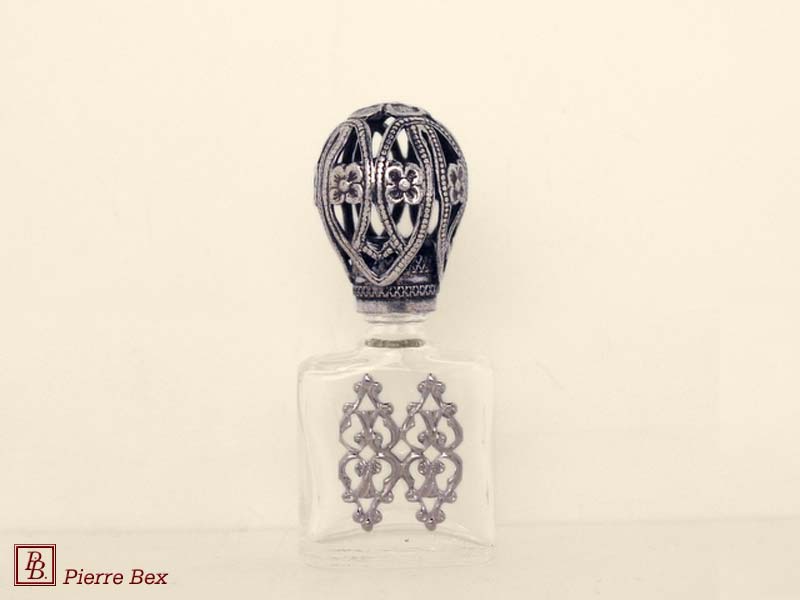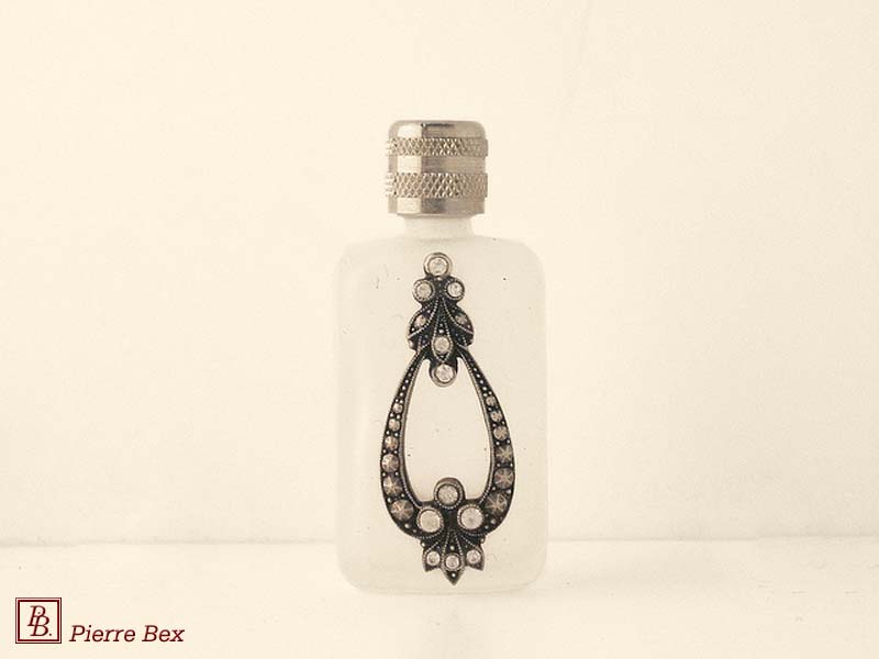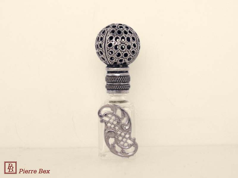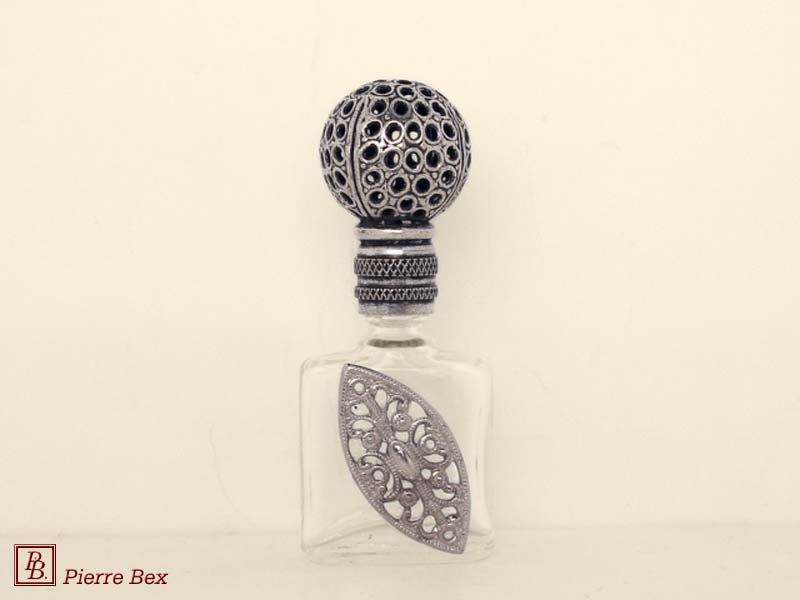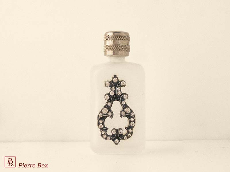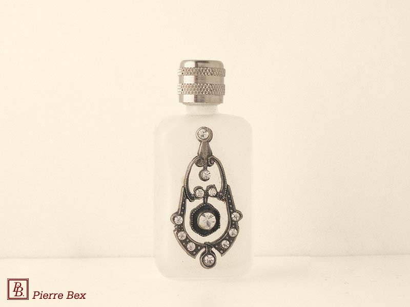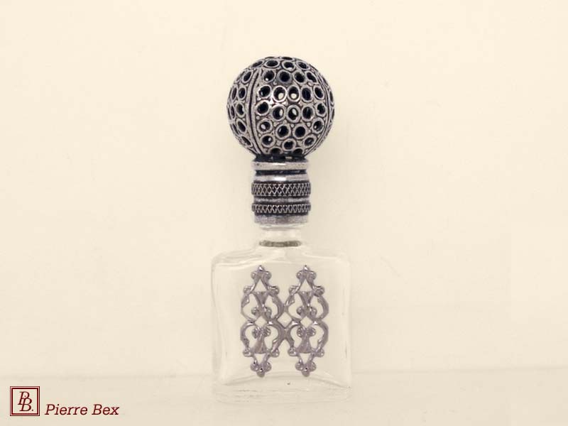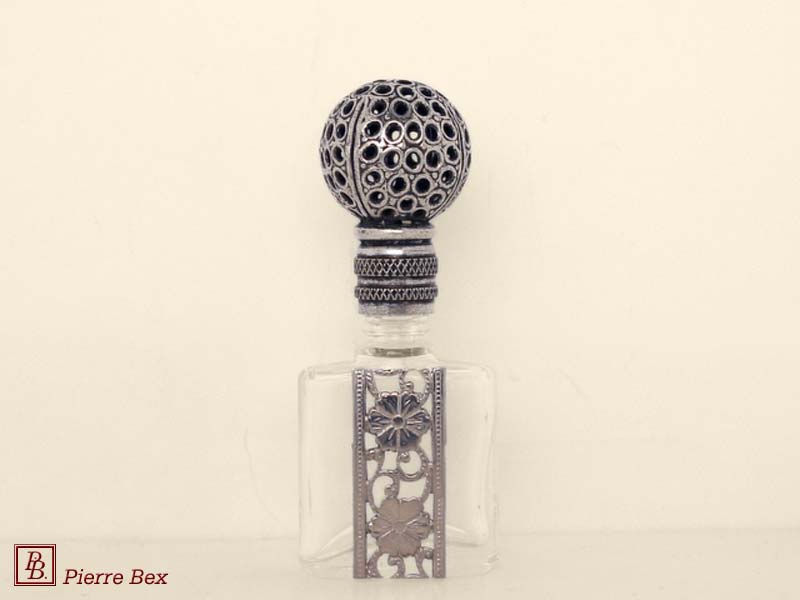 ![]() Art-Deco glass perfume bottle 46179-03Sold OutMade by Pierre-Bex from glass and silverplated copper with crystal rhinestones, this bottle is 5.5 cm ( 2 inches ) height. Sold Out |