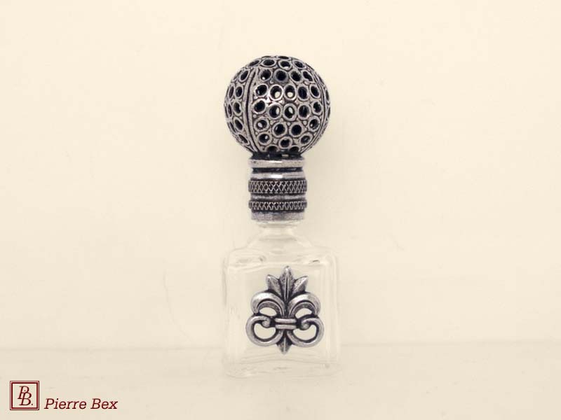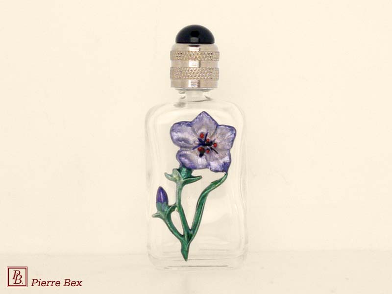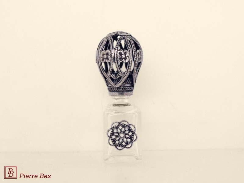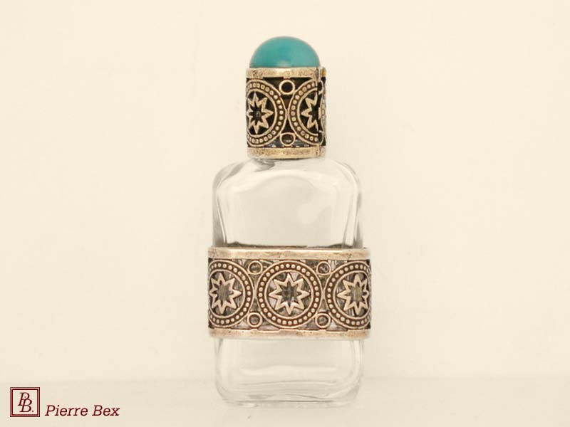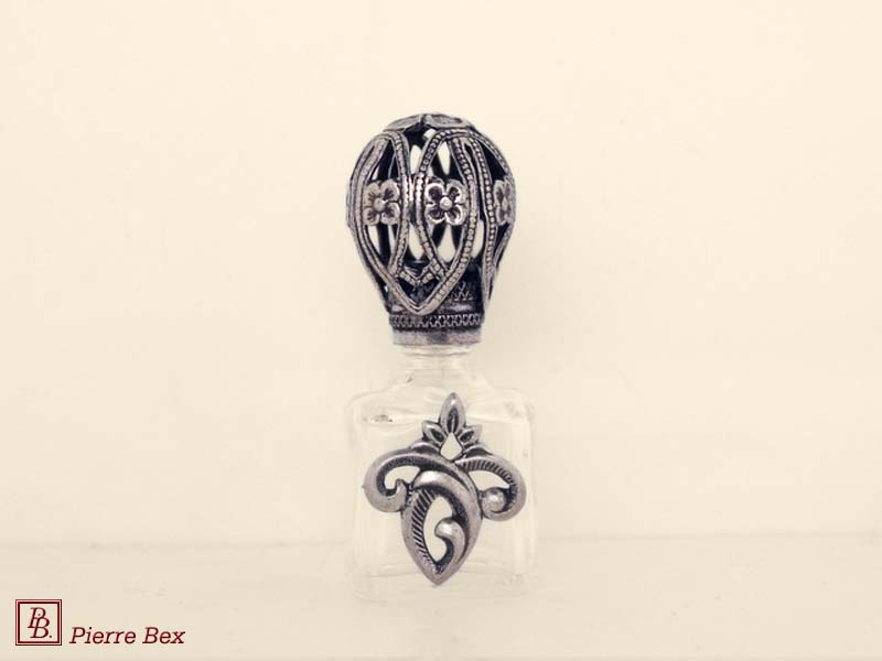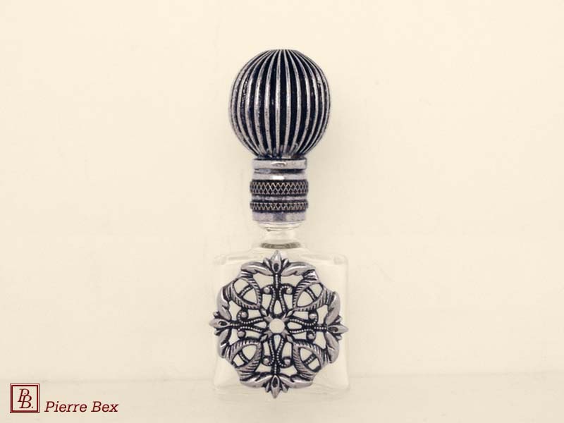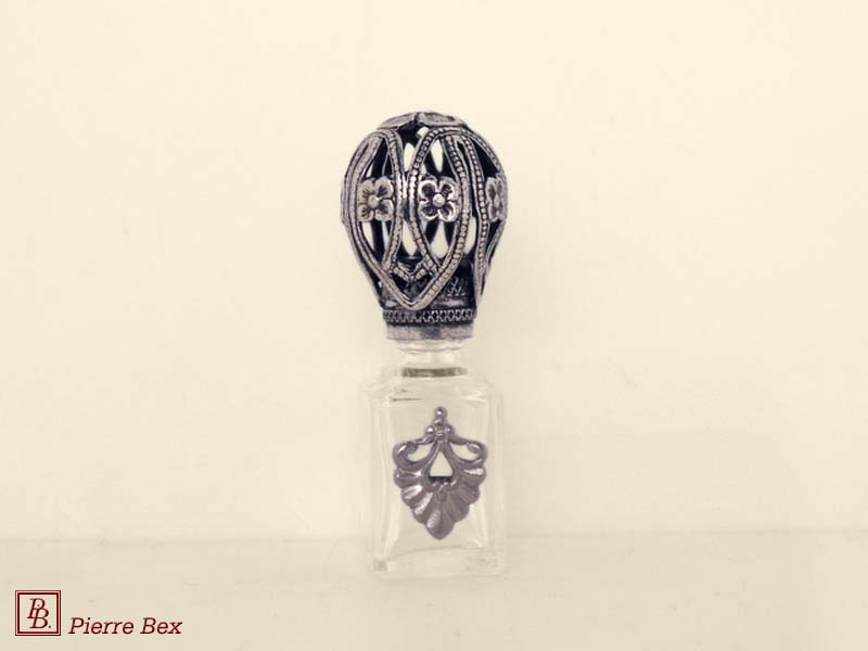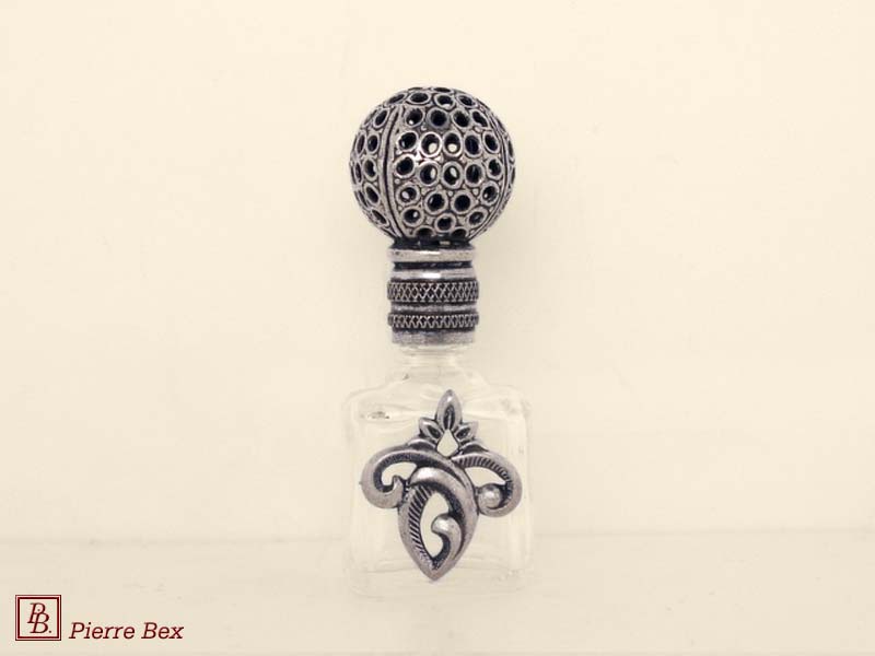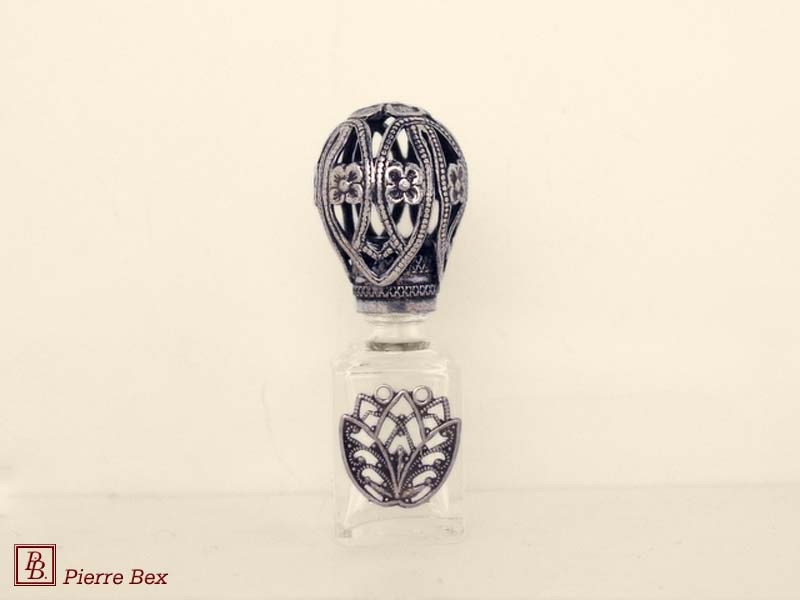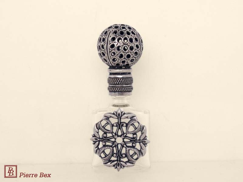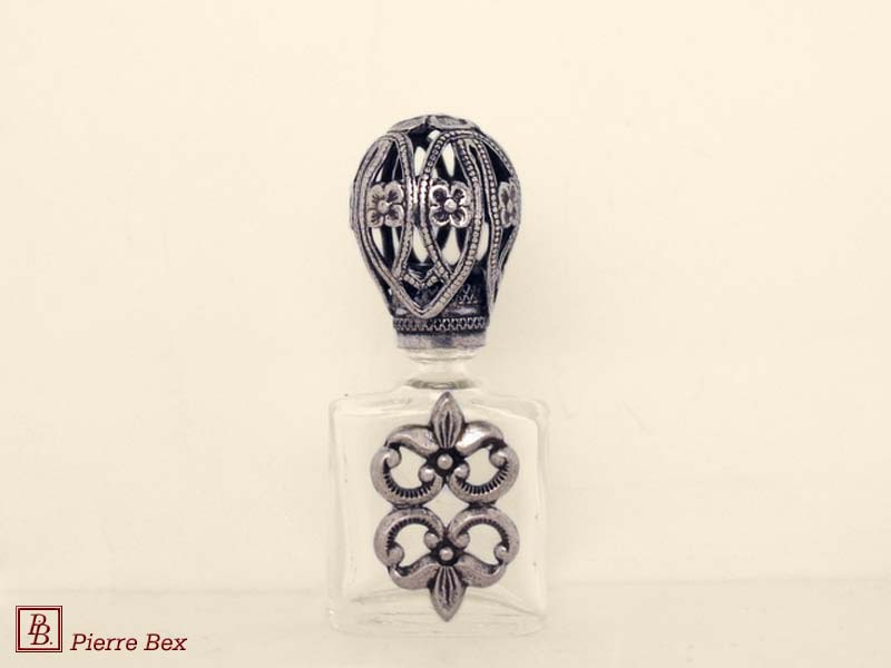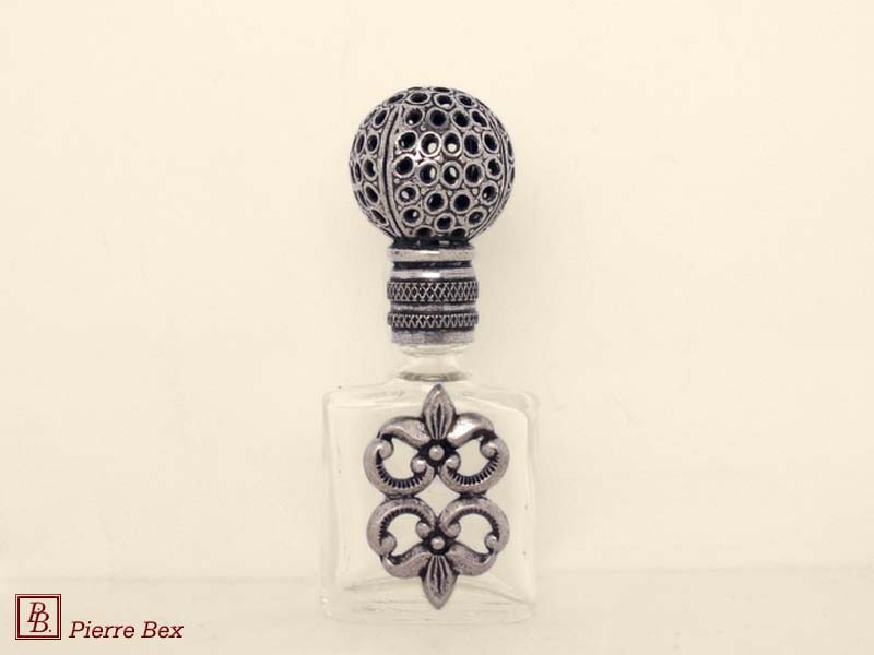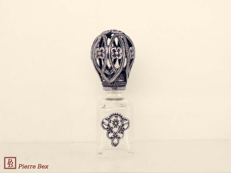 ![]() Art-Deco glass perfume bottle 46179-03Sold OutMade by Pierre-Bex from glass and silverplated copper with crystal rhinestones, this bottle is 5.5 cm ( 2 inches ) height. Sold Out |