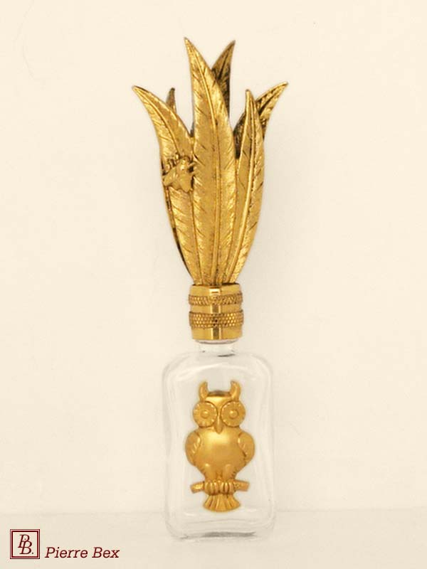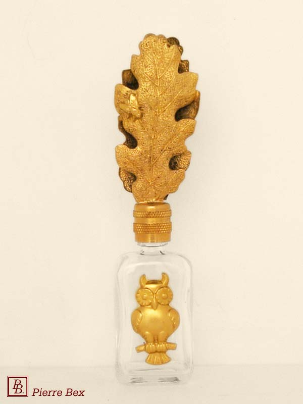 ![]() Art-Deco glass perfume bottle 42089-41USD 25.00![]() Made by Pierre-Bex from glass and goldplated copper, this bottle with a leave and a owl is 10 cm ( 4 inches ) height. USD 25.00 |