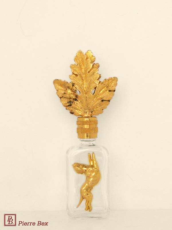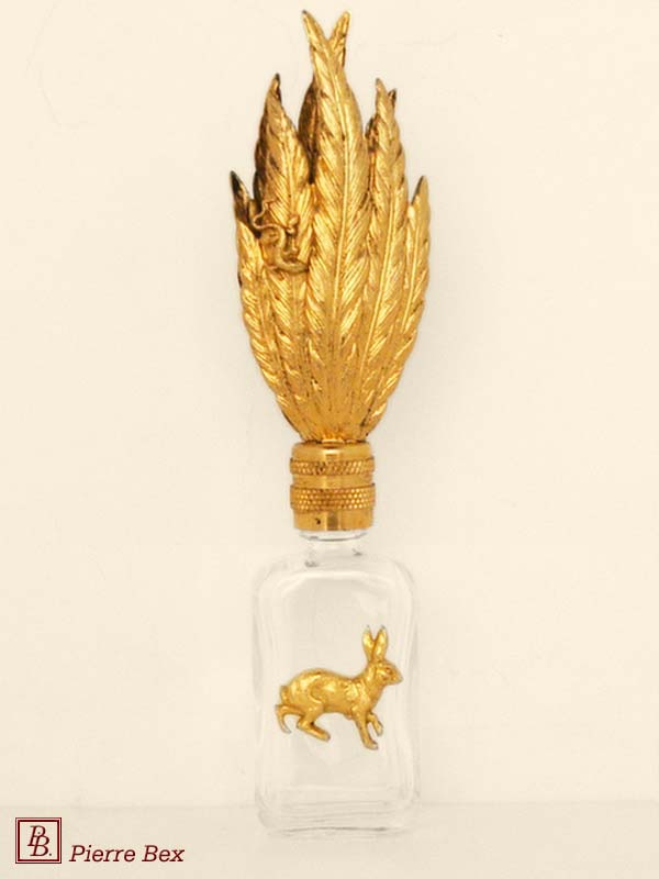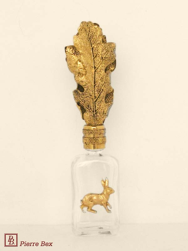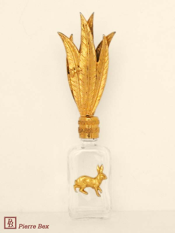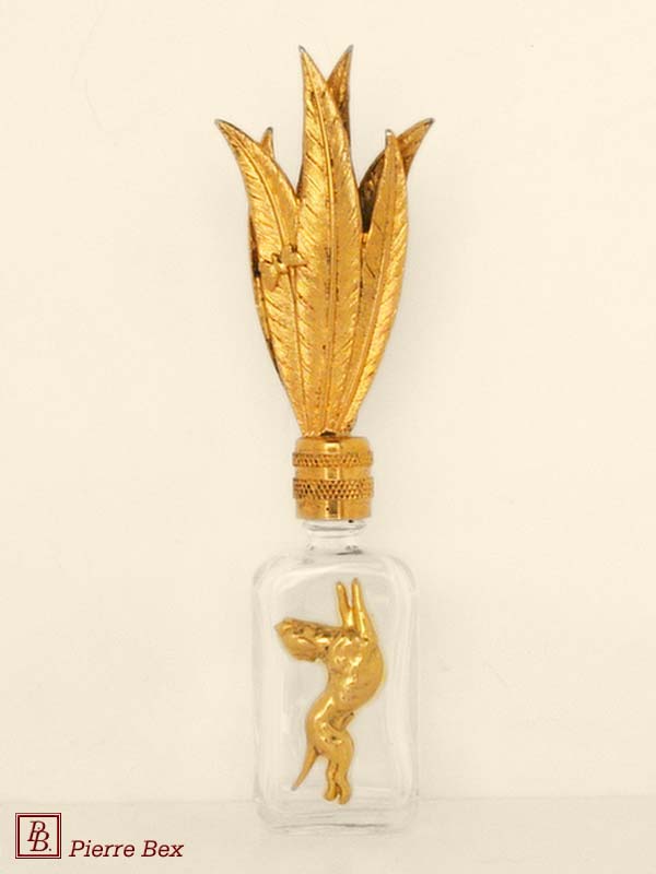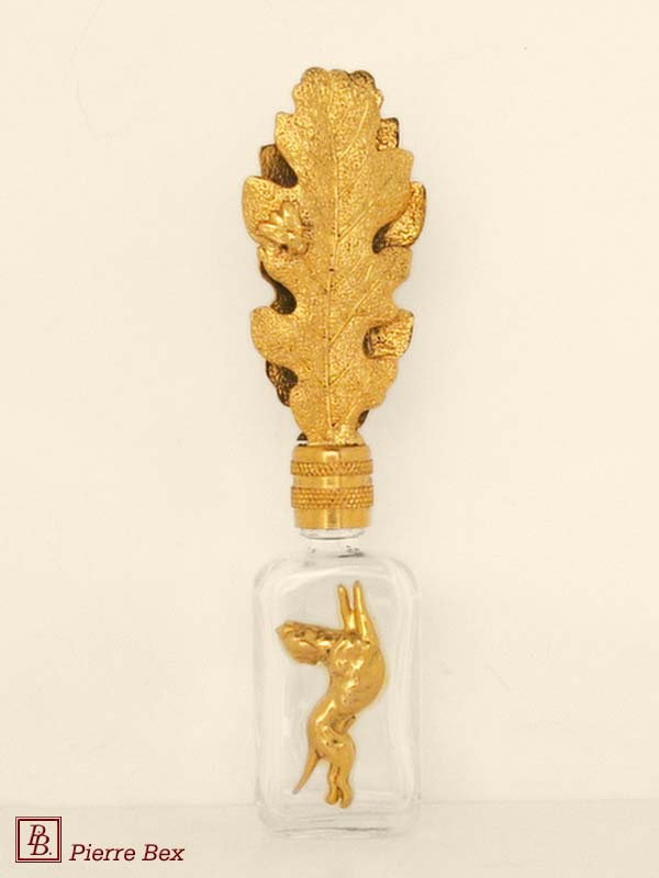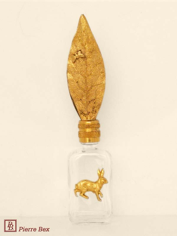 ![]() Art-Deco glass perfume bottle 42089-15USD 25.00![]() Made by Pierre-Bex from glass and goldplated copper, this bottle with a leave and a rabbit is 10 cm ( 4 inches ) height. USD 25.00 |