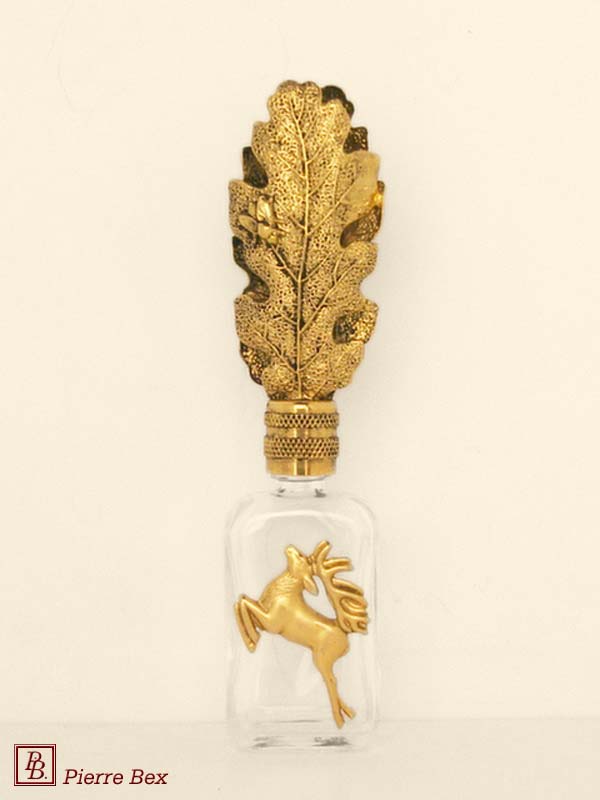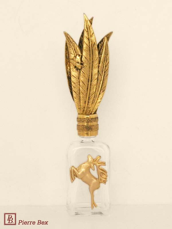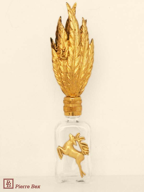 ![]() Art-Deco glass perfume bottle 42089-44USD 25.00![]() Made by Pierre-Bex from glass and goldplated copper, this bottle with a leave and a deer is 10 cm ( 4 inches ) height. USD 25.00 |