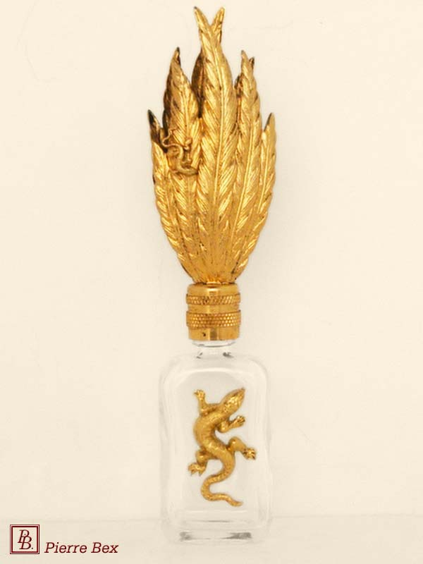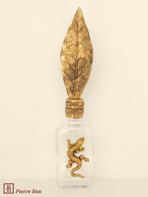 ![]() Art-Deco glass perfume bottle 42089-43USD 25.00![]() Made by Pierre-Bex from glass and goldplated copper, this bottle with a leave and a lizard is 10 cm ( 4 inches ) height. USD 25.00 |