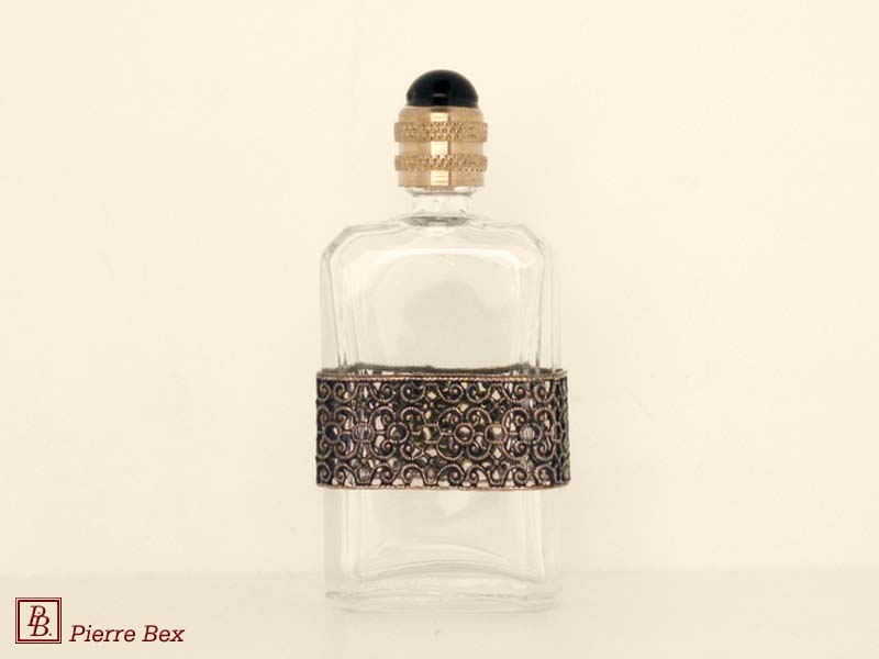 ![]() Art-Deco glass perfume bottle 46179-05Sold OutMade by Pierre-Bex from glass and silverplated copper with crystal rhinestones, this bottle is 5.5 cm ( 2 inches ) height. Sold Out |