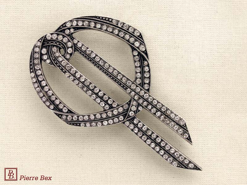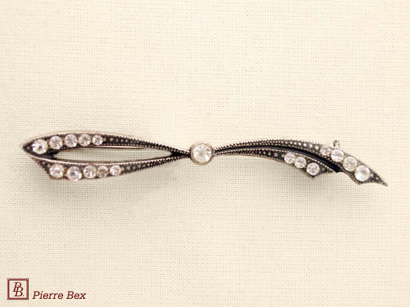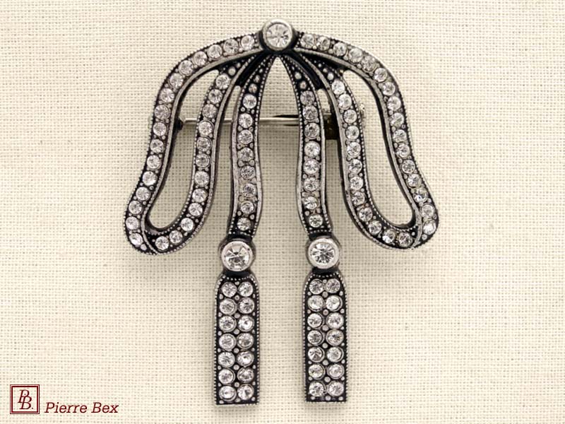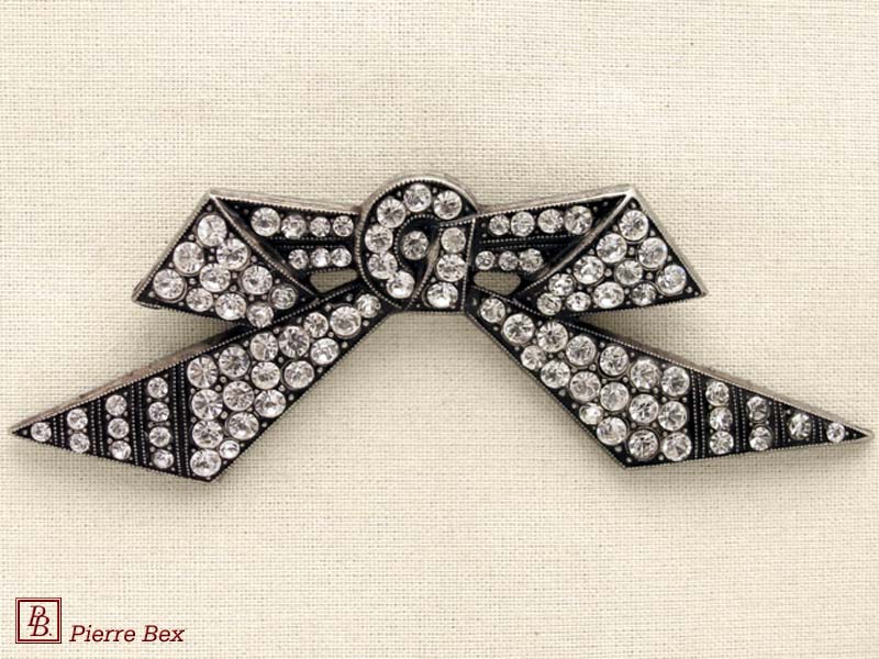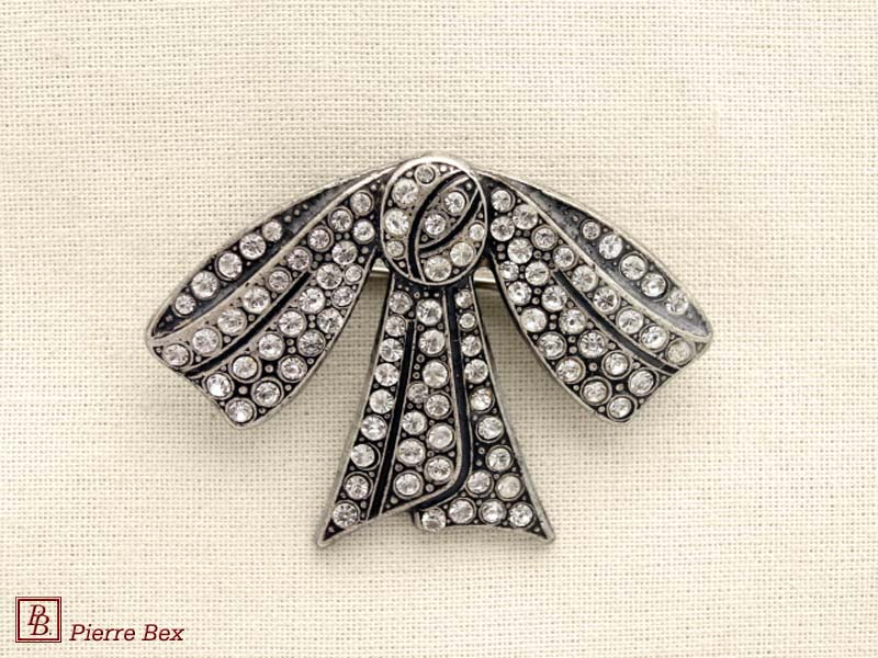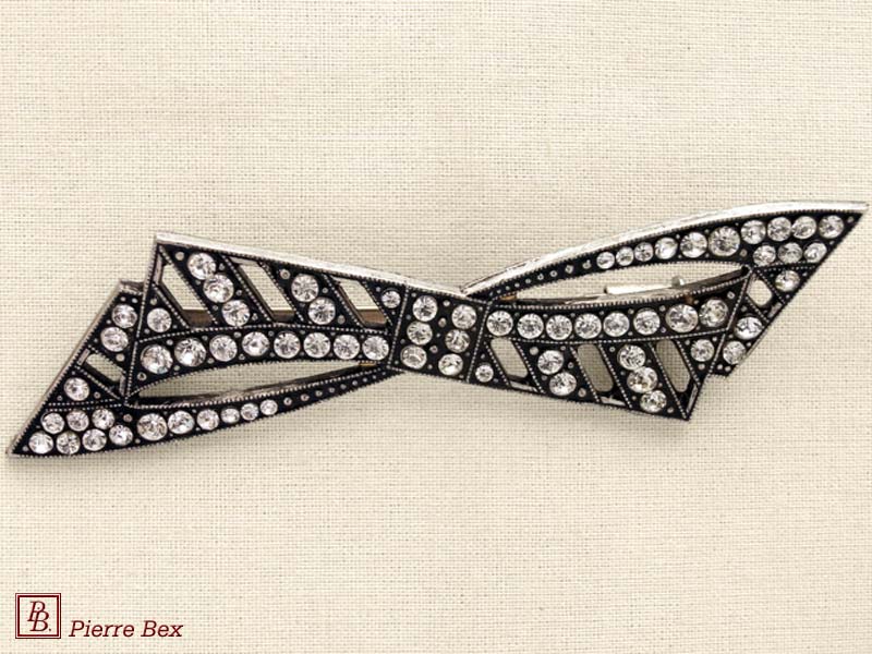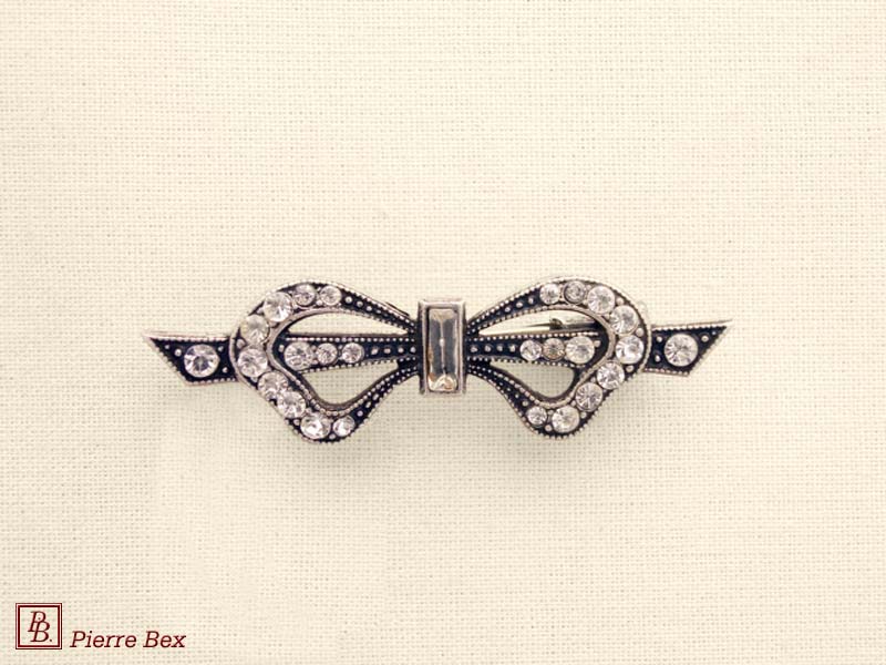 ![]() Art-Deco large brooch bow 45836-02Sold OutMade by Pierre-Bex from silverplated copper and crystal rhinestones, this brooch is 4 cm ( 1-½ inch ) width. Sold Out |