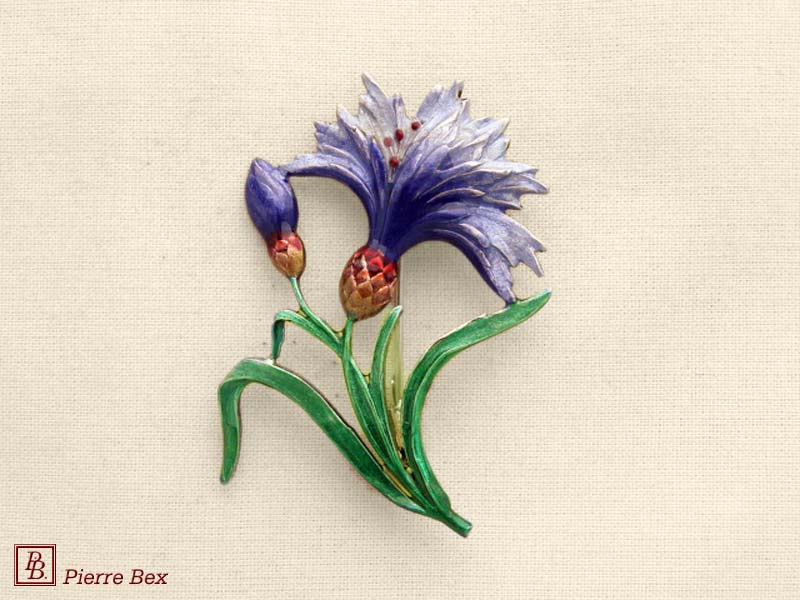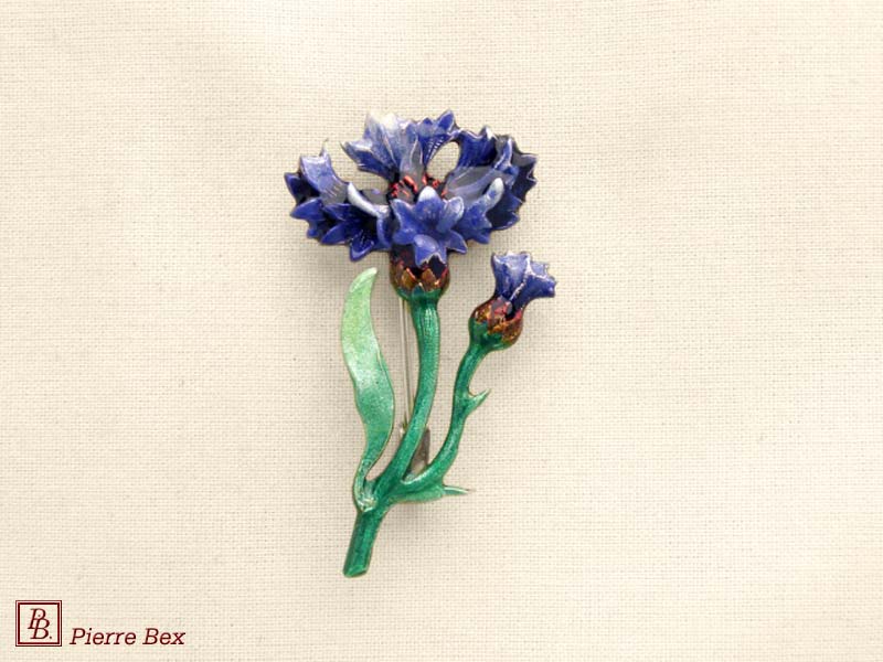 ![]() Art-Nouveau enameled brooch cornflower 48256-10Sold OutMade by Pierre-Bex from enameled silverplated copper, this brooch is 3.5 cm ( 1-½ inch ) width. Sold Out |