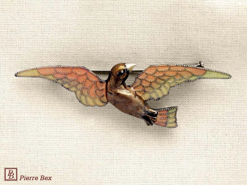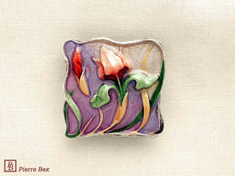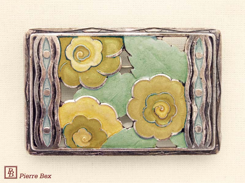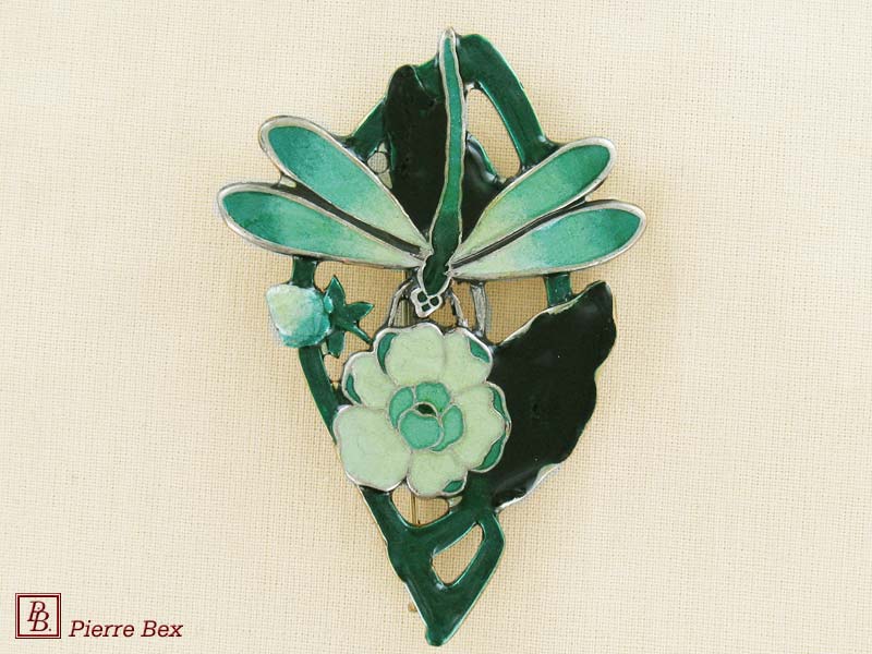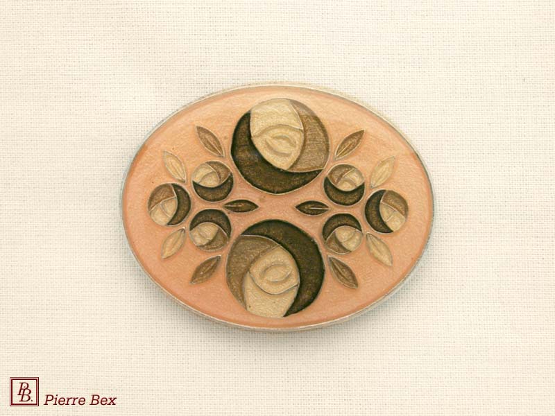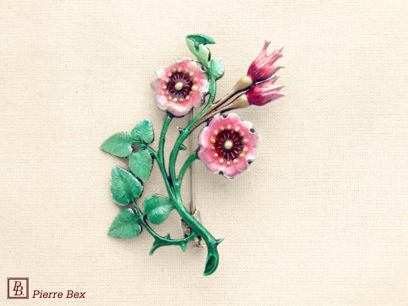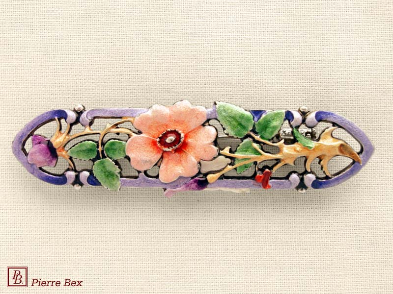![]() Art-Nouveau enameled brooch dog rose 48226-07Sold OutMade by Pierre-Bex from enameled silverplated copper, this brooch is 5 cm ( 2 inches ) width. Sold Out |