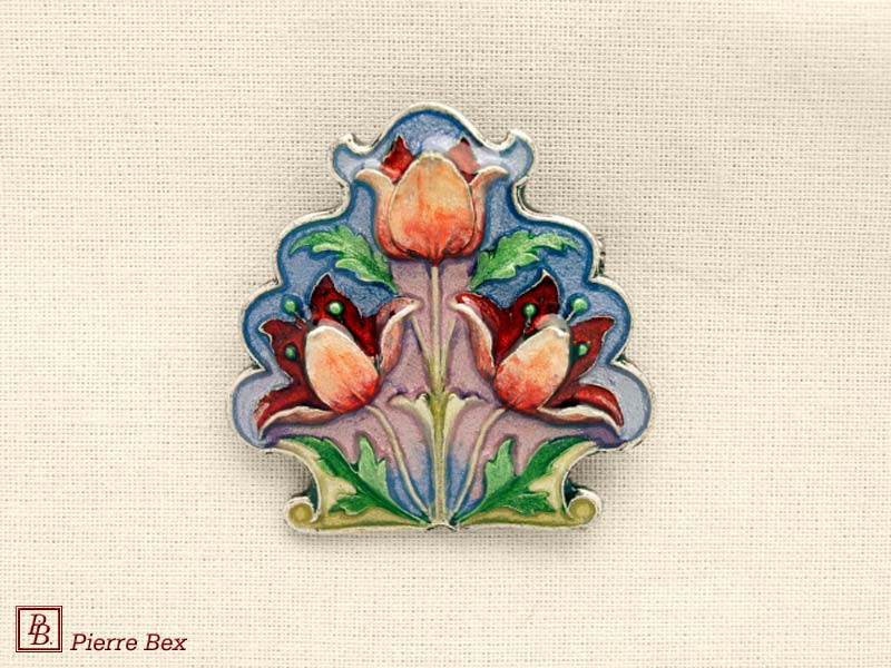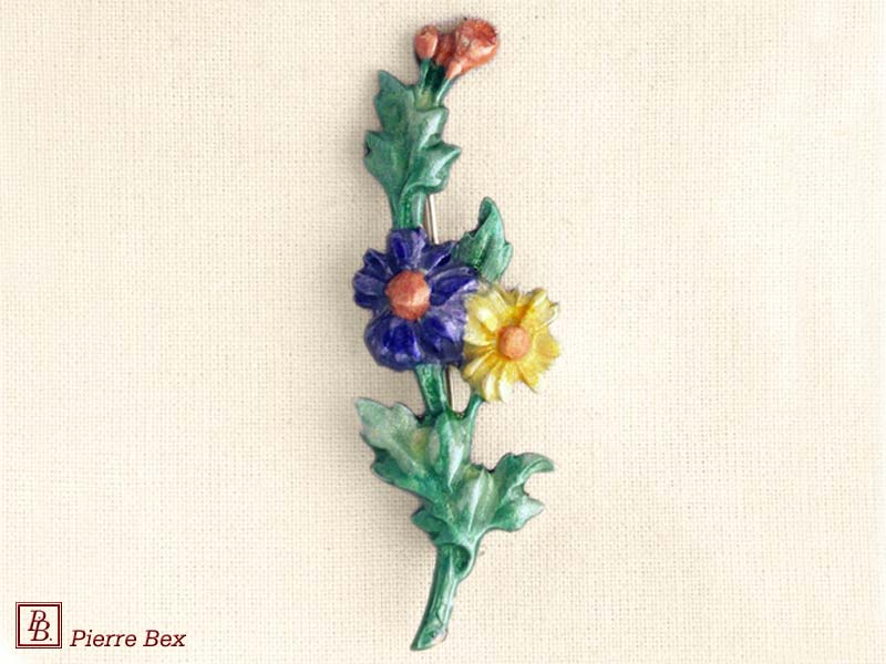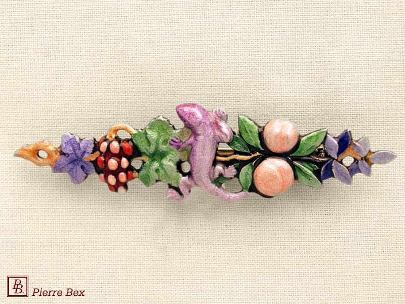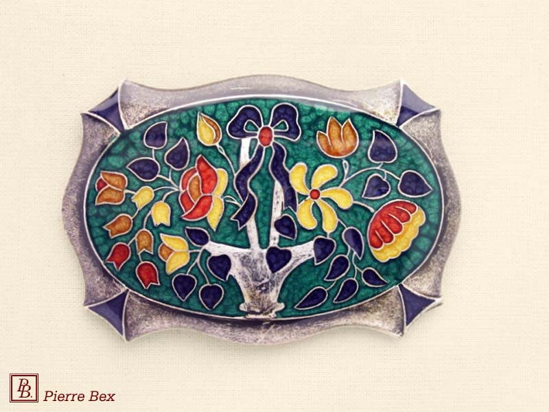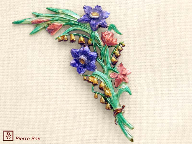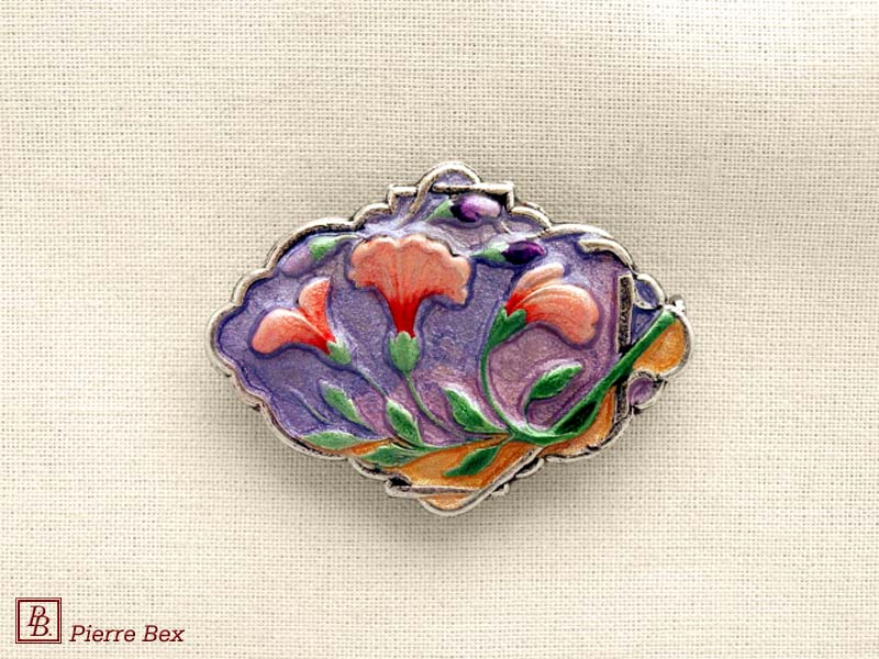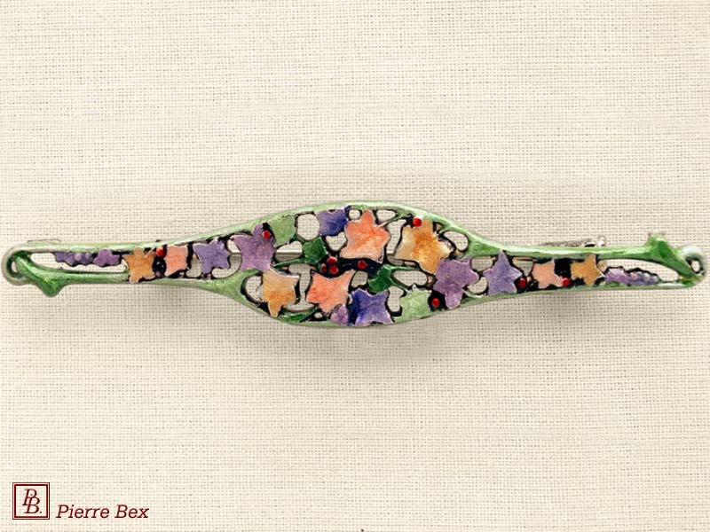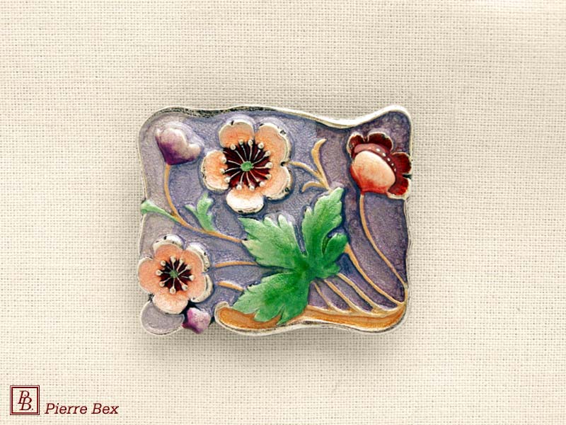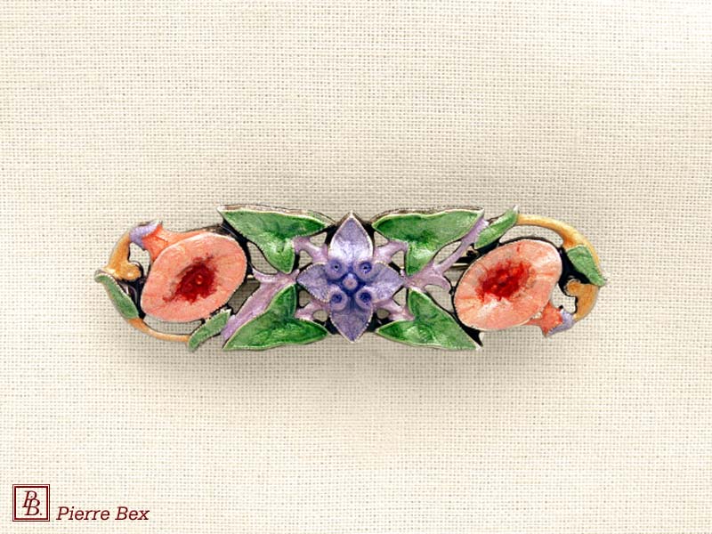![]() Art-Nouveau enameled brooch wild posy 48226-12Sold OutMade by Pierre-Bex from enameled silverplated copper, this brooch is 7.5 cm ( 3 inches ) width. Sold Out |