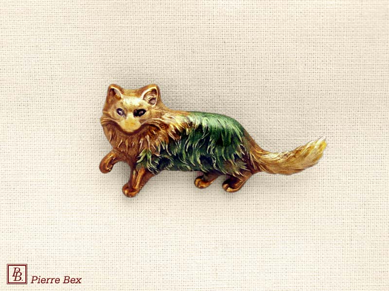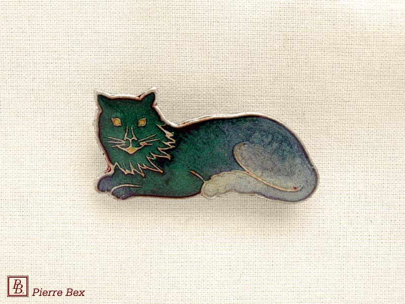 ![]() Art-Deco enameled brooch cat 48516-02USD 25.00![]() Made by Pierre-Bex from enameled silverplated copper, this brooch is 4.5 cm ( 1-½ inch ) width. USD 25.00 |