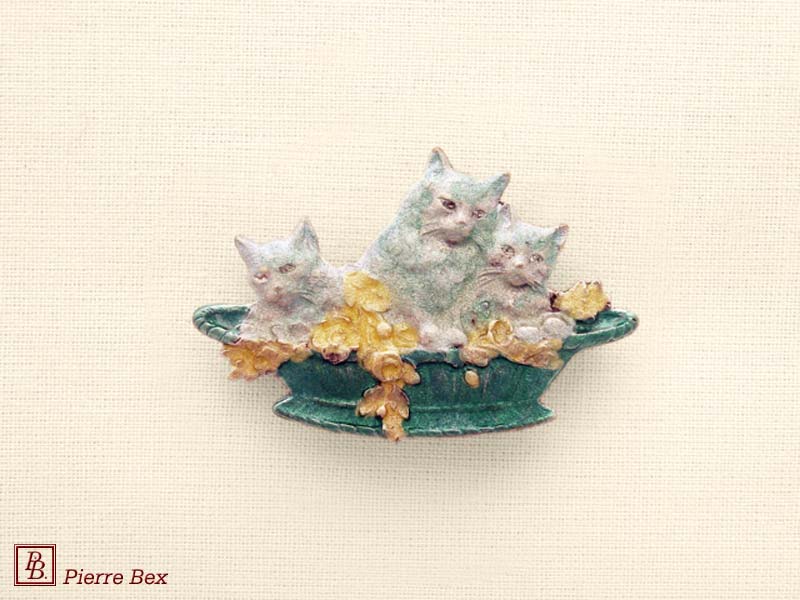 ![]() Art-Deco enameled brooch basket of kittens 48516-06USD 25.00![]() Made by Pierre-Bex from enameled silverplated copper, this brooch is 4 cm ( 1-½ ) width. USD 25.00 |