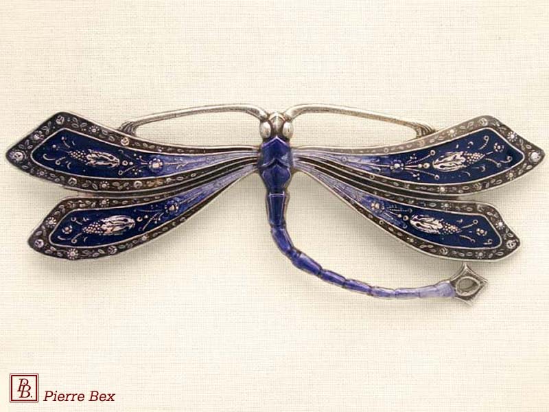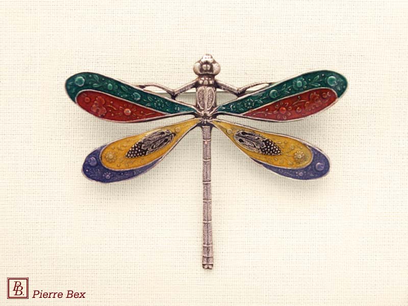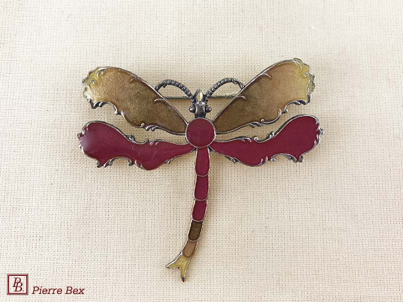 ![]() Art-Deco enameled brooch dragonfly 48516-14Sold OutMade by Pierre-Bex from enameled silverplated copper, this brooch is 5 cm ( 2 inches ) width. Sold Out |