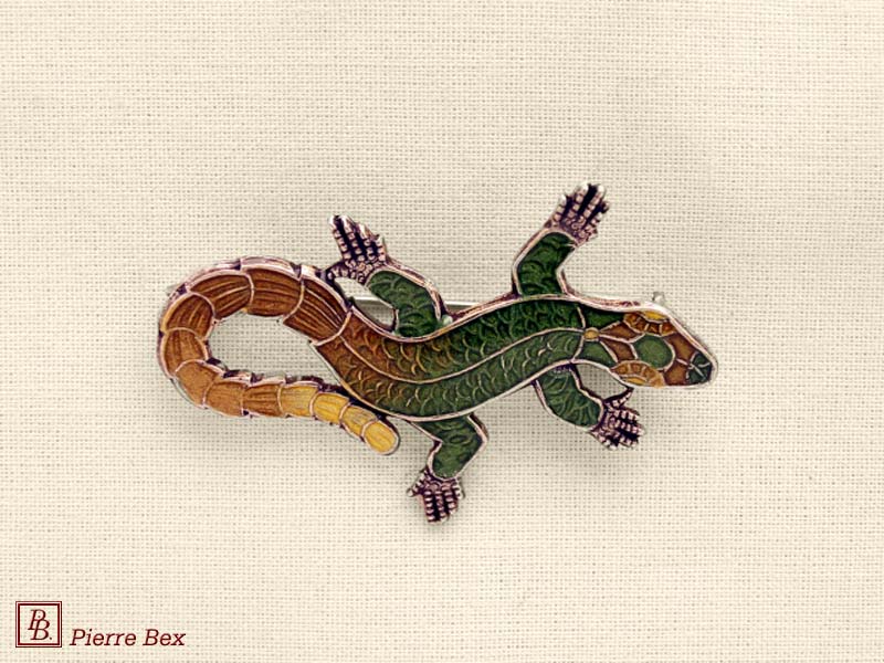 ![]() Art-Deco enameled brooch lizard 48516-18USD 25.00![]() Made by Pierre-Bex from enameled silverplated copper, this brooch is 4.5 cm ( 1-½ inch ) width. USD 25.00 |