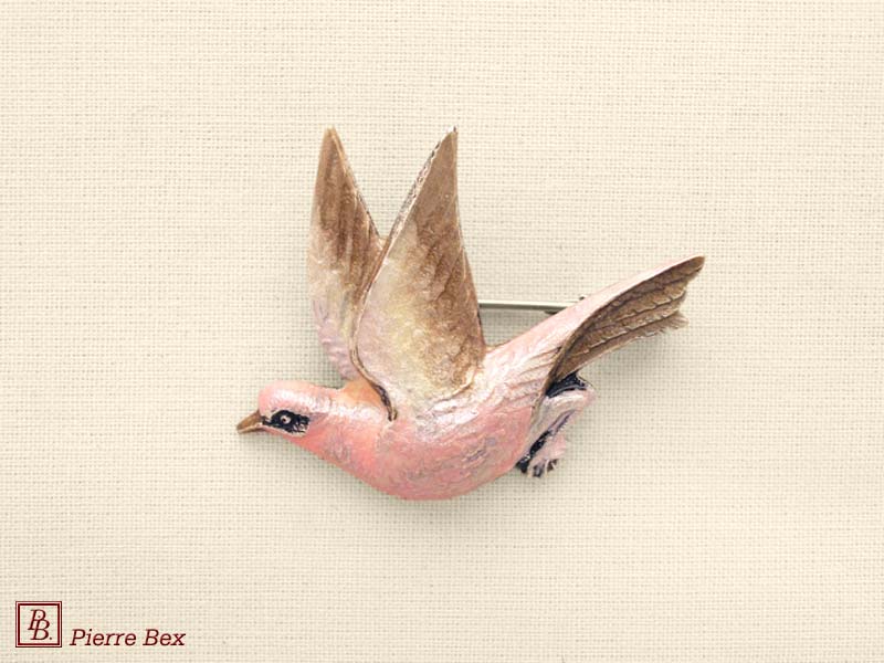![]() Art-Deco enameled brooch bird 48516-36USD 25.00![]() Made by Pierre-Bex from enameled silverplated copper, this brooch is 3.5 cm ( 1-½ inch ) width. USD 25.00 |