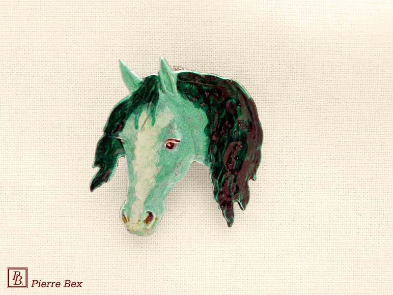![]() Art-Deco enameled brooch horse 48516-24USD 25.00![]() Made by Pierre-Bex from enameled silverplated copper, this brooch is 3.5 cm ( 1-½ inch ) width. USD 25.00 |